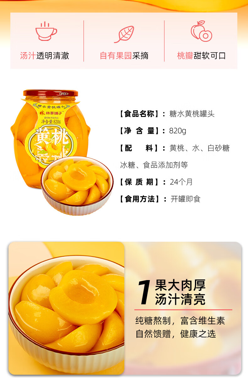 林家铺子【特价大日期】800g820g黄桃山楂什锦桔子椰果草莓水果罐头 【保质期至26年4月】820草莓*2罐