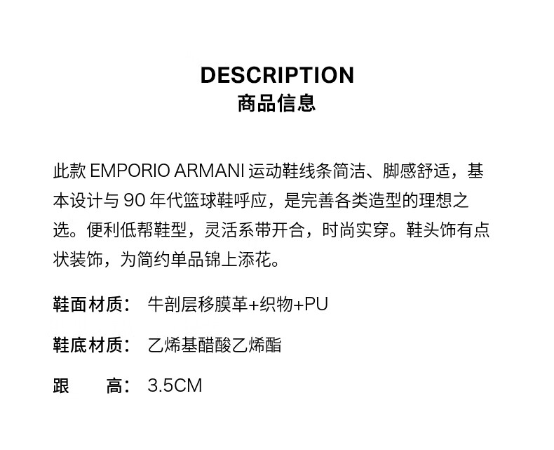 EMPORIO ARMANI/阿玛尼官方旗舰【新年礼物】男户外运动休闲小白板鞋秋冬 00002-黑色 43