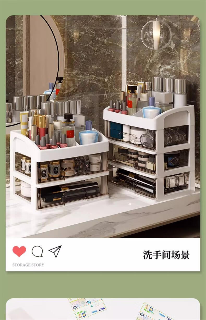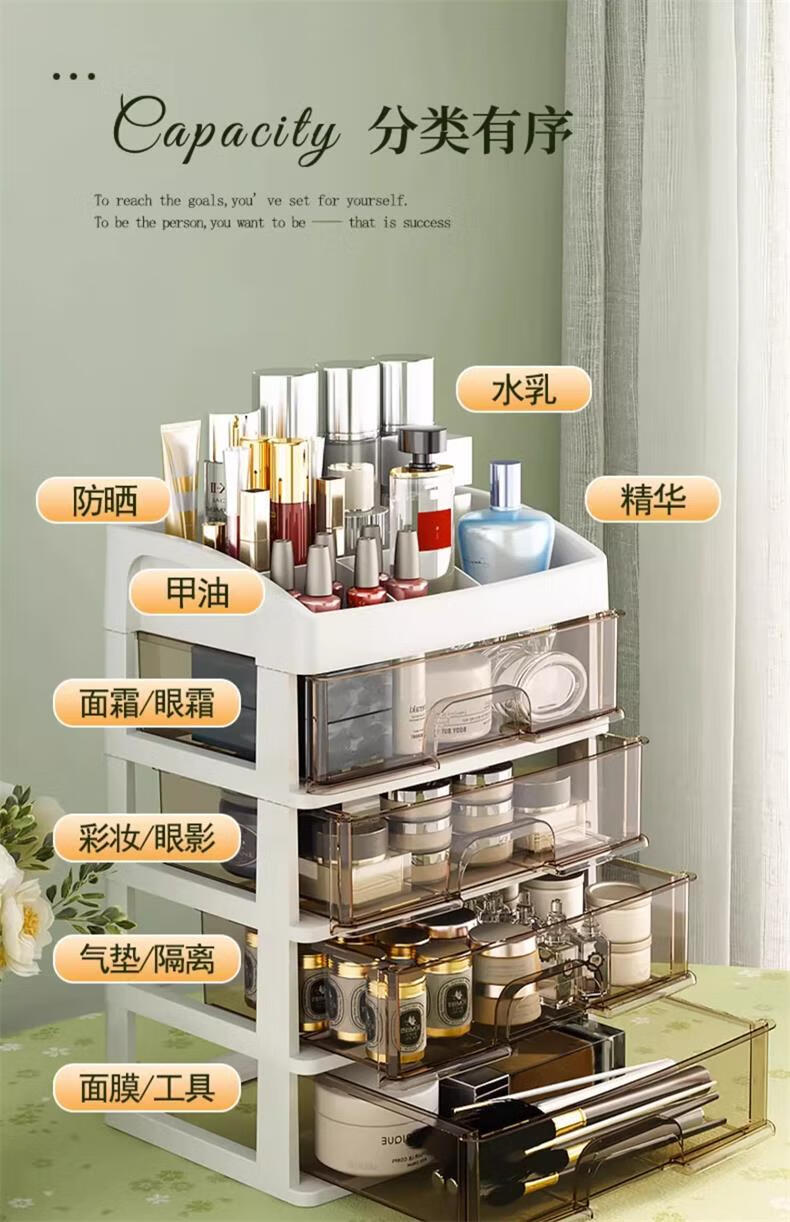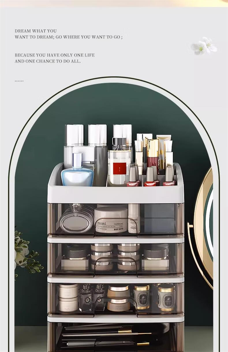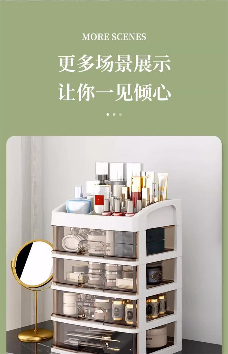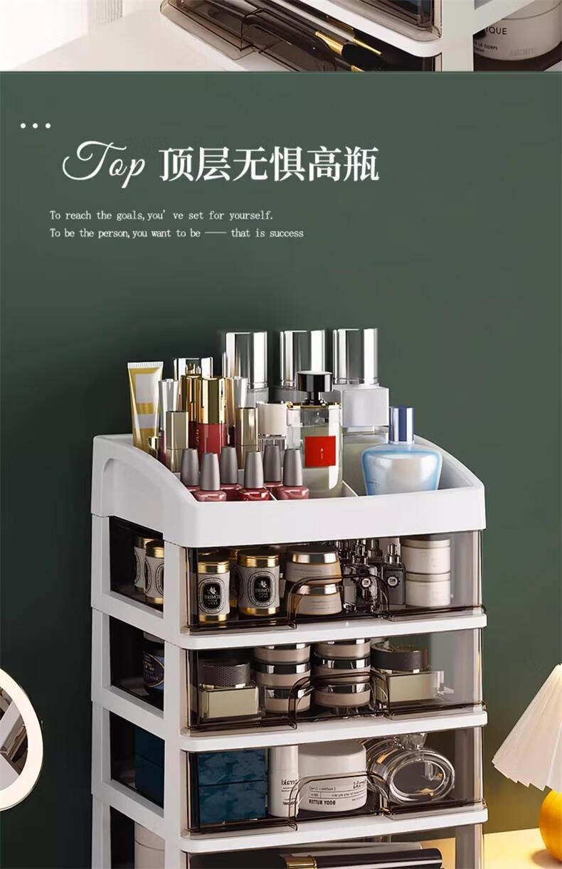 馨婺家化妆品收纳盒桌面高级感抽屉式防尘卫生间洗手台梳妆台口红置物架 5层-透咖白【豪华实用款】
