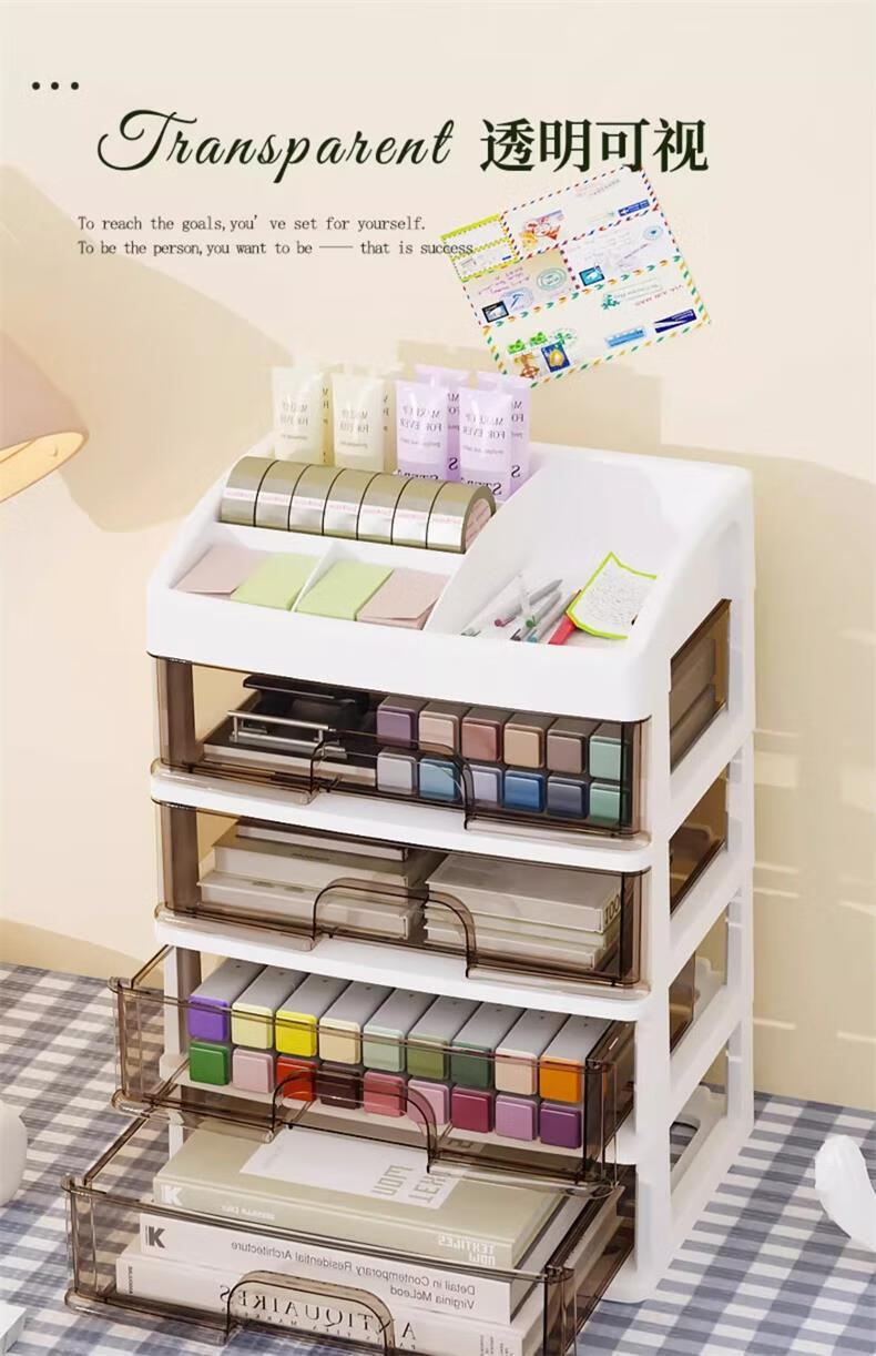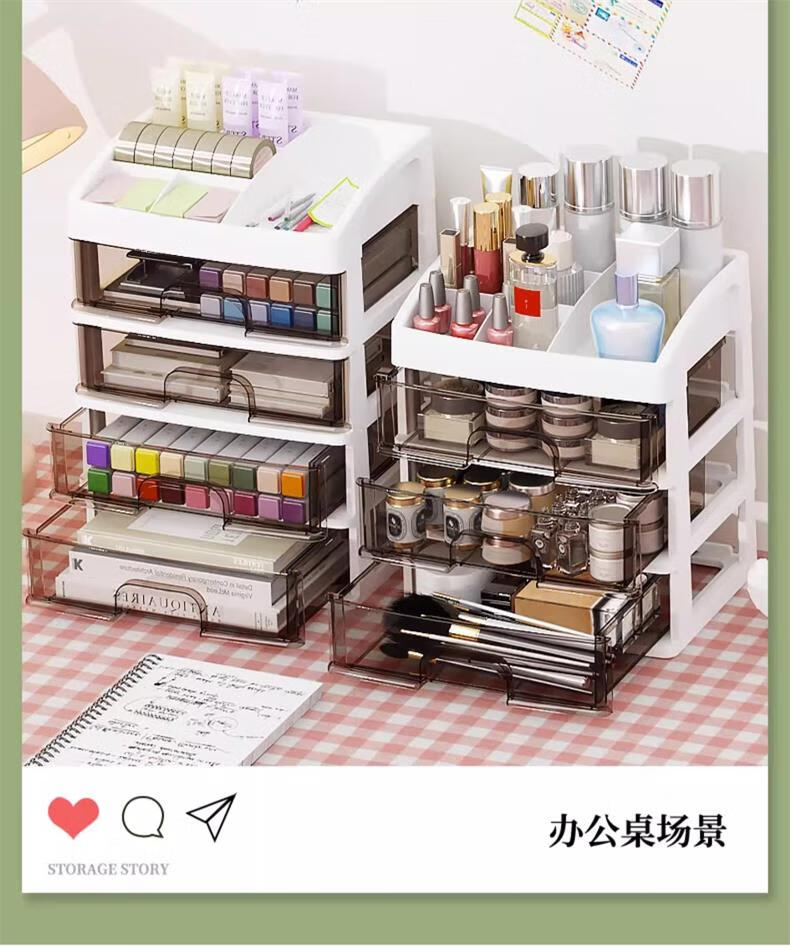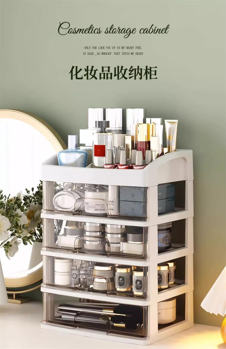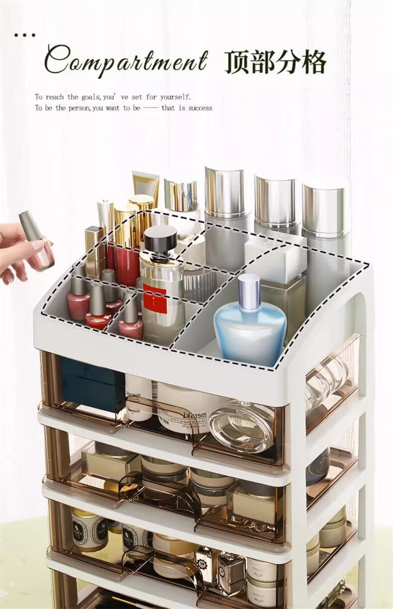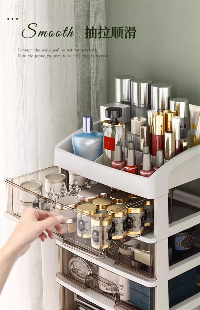 馨婺家化妆品收纳盒桌面高级感抽屉式防尘卫生间洗手台梳妆台口红置物架 5层-透咖白【豪华实用款】