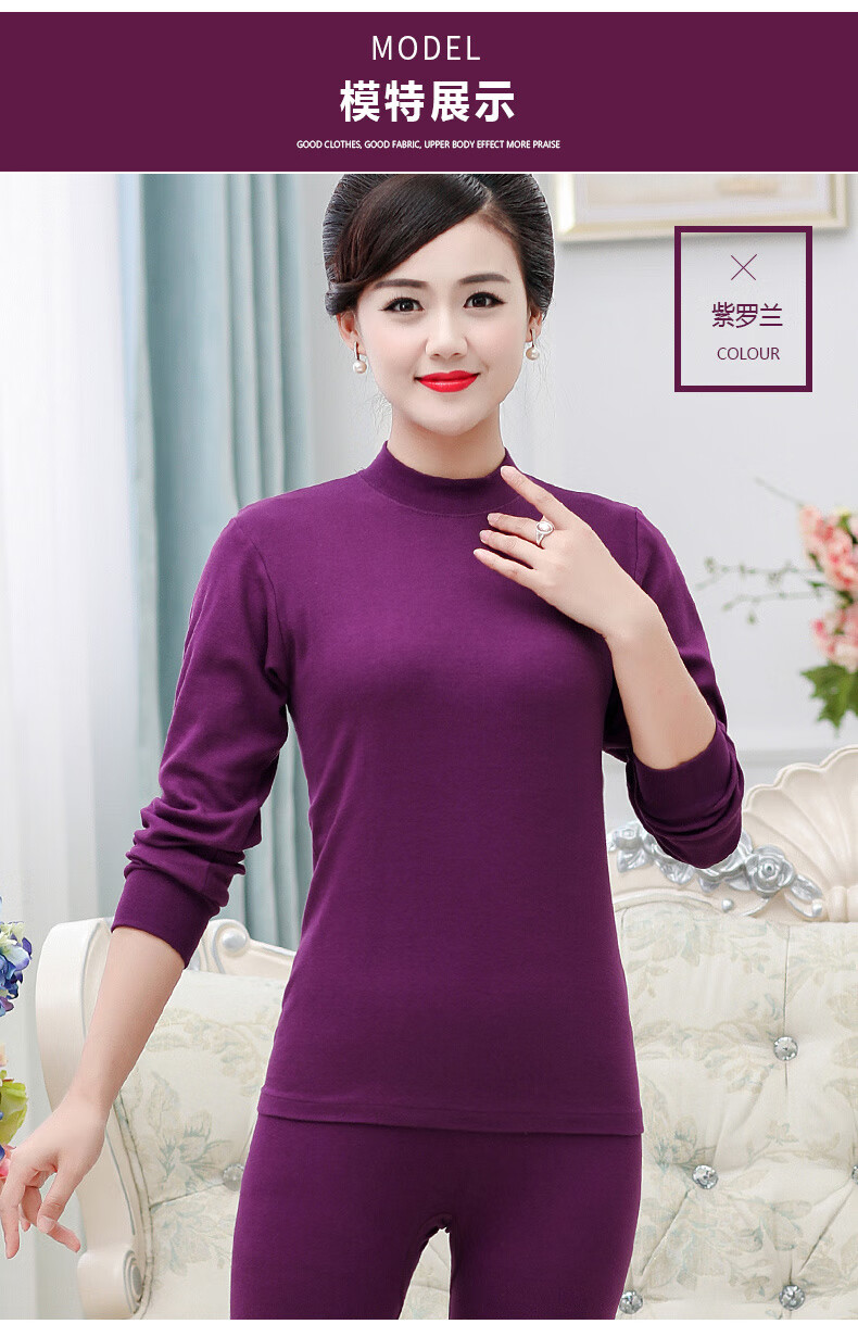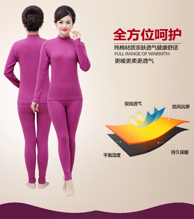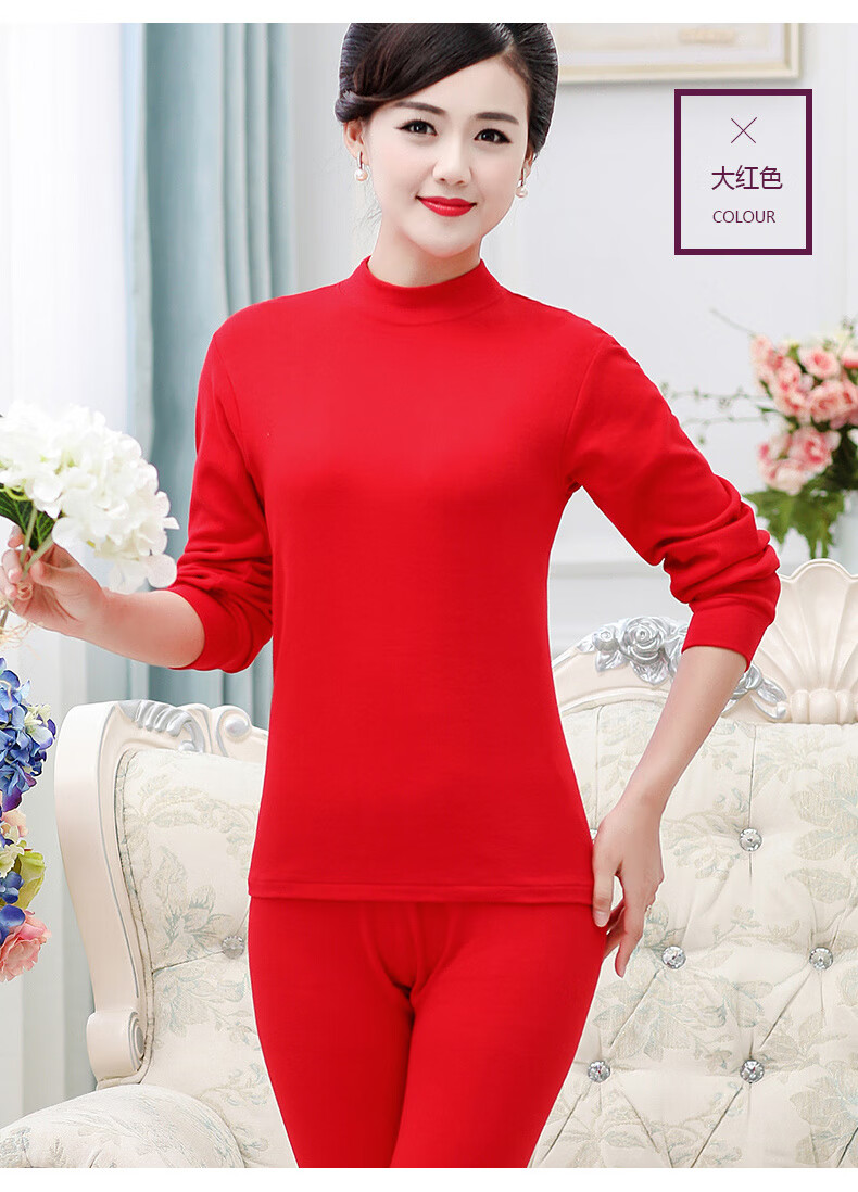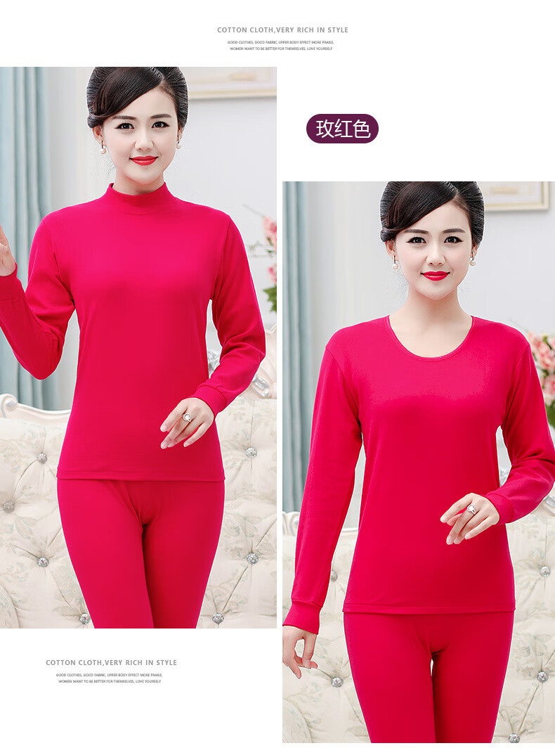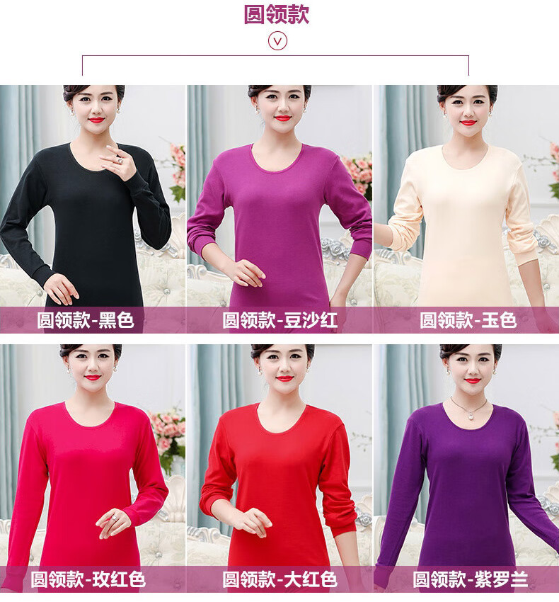 红豆纯棉秋衣秋裤套装女士棉毛套妈妈内衣中老年人加肥加大码秋冬保暖 中领-玉色(单件上衣) 3XL /185(165-180斤)