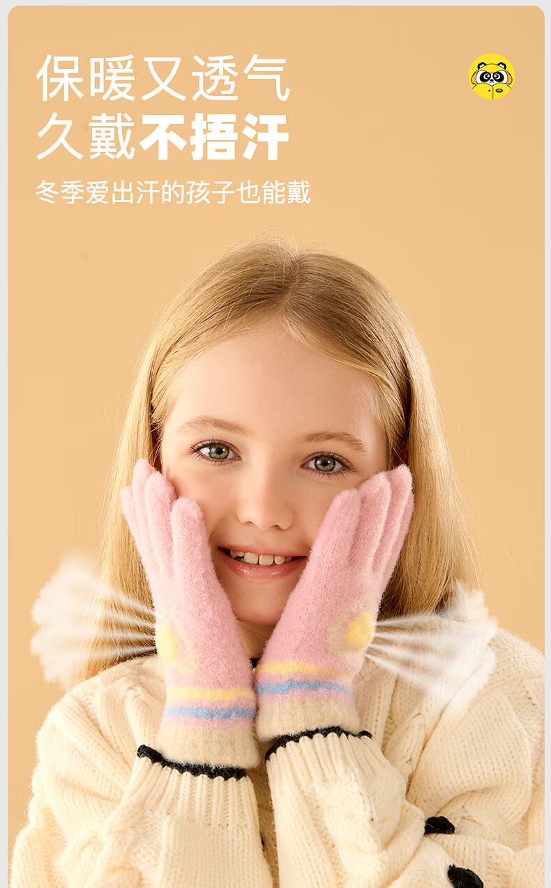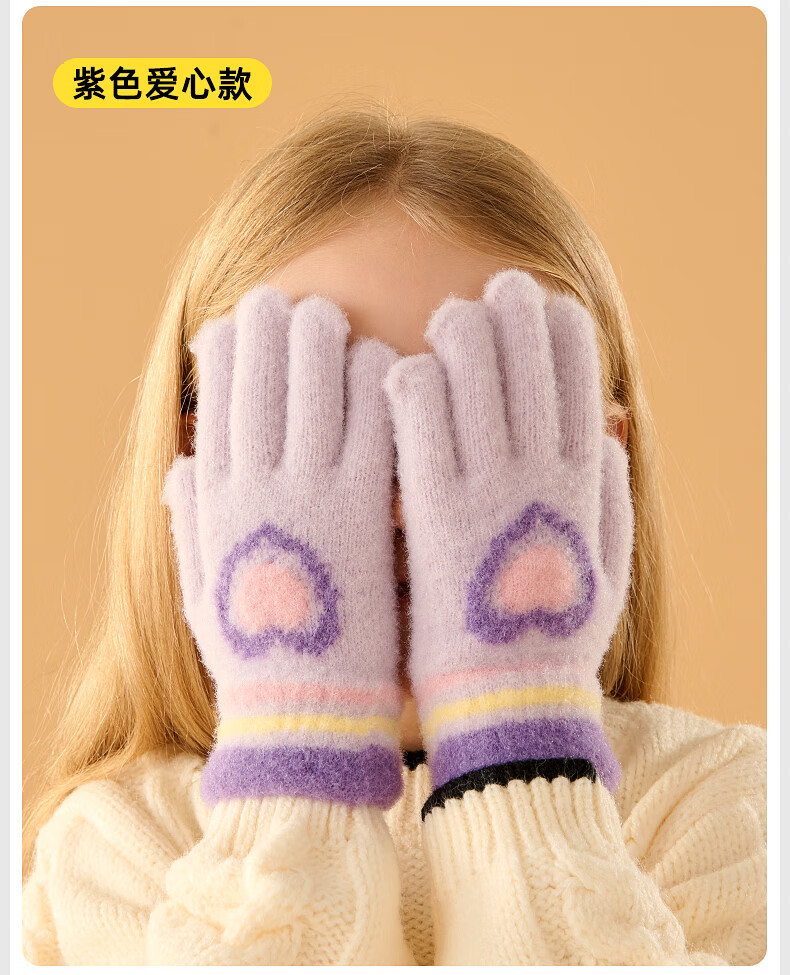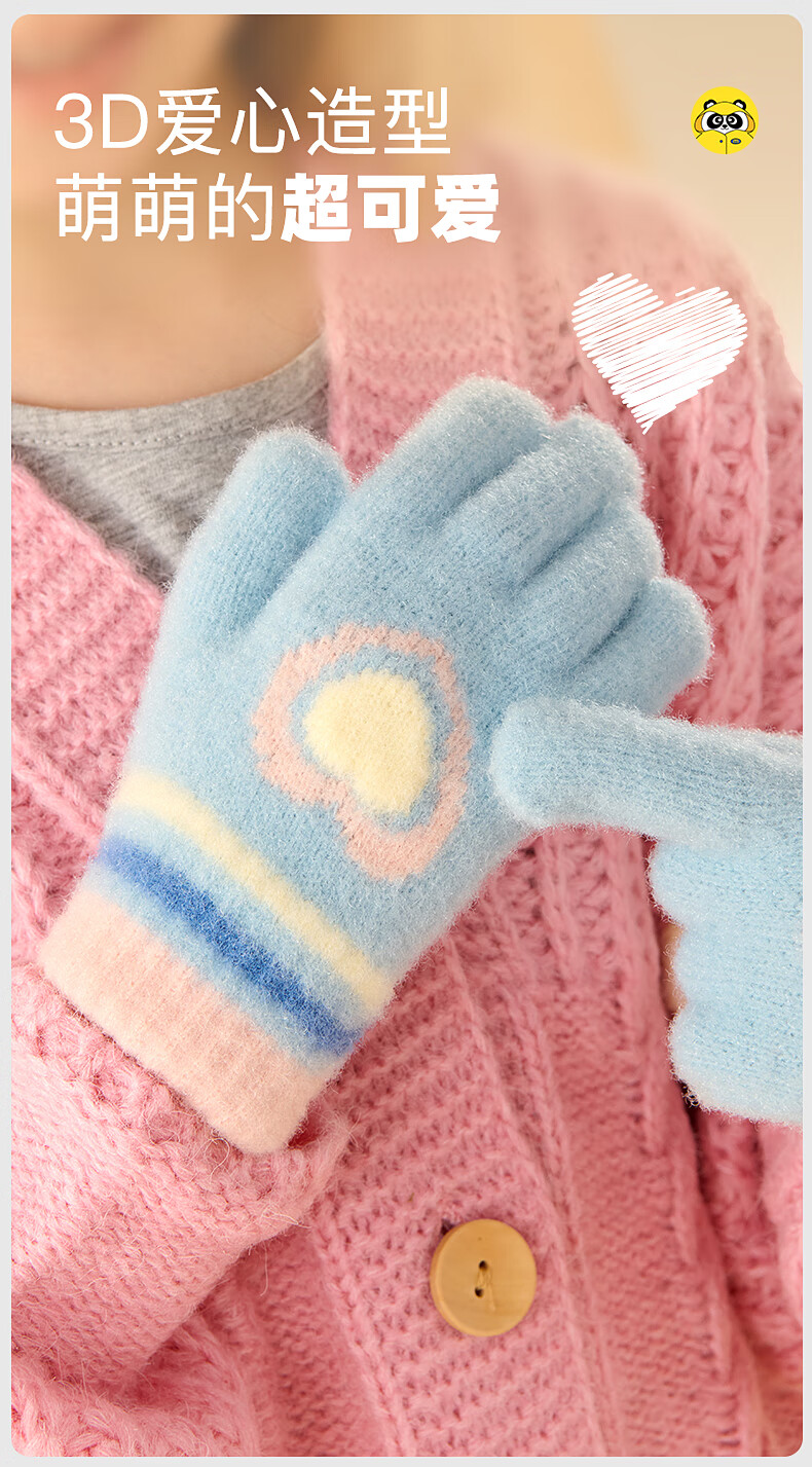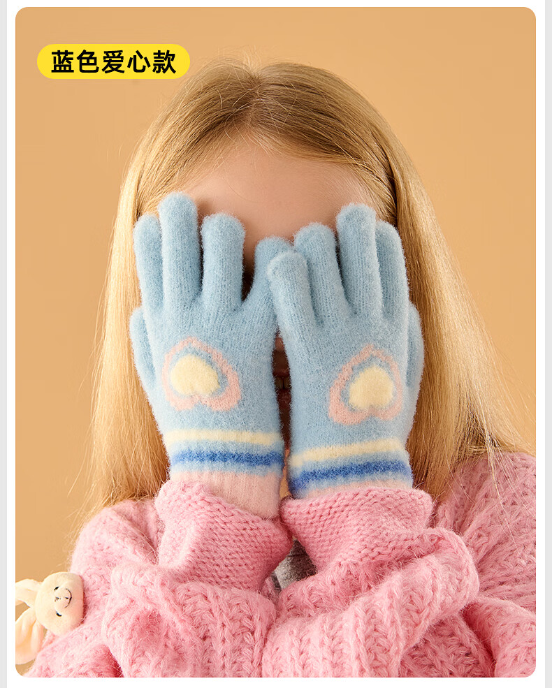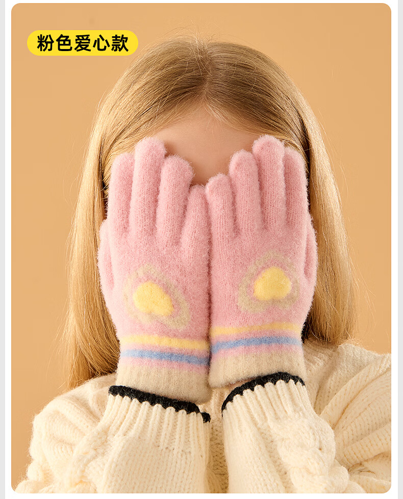 牧萌儿童手套秋冬季男女童保暖全指手套宝宝小学生女孩针织手套 粉色