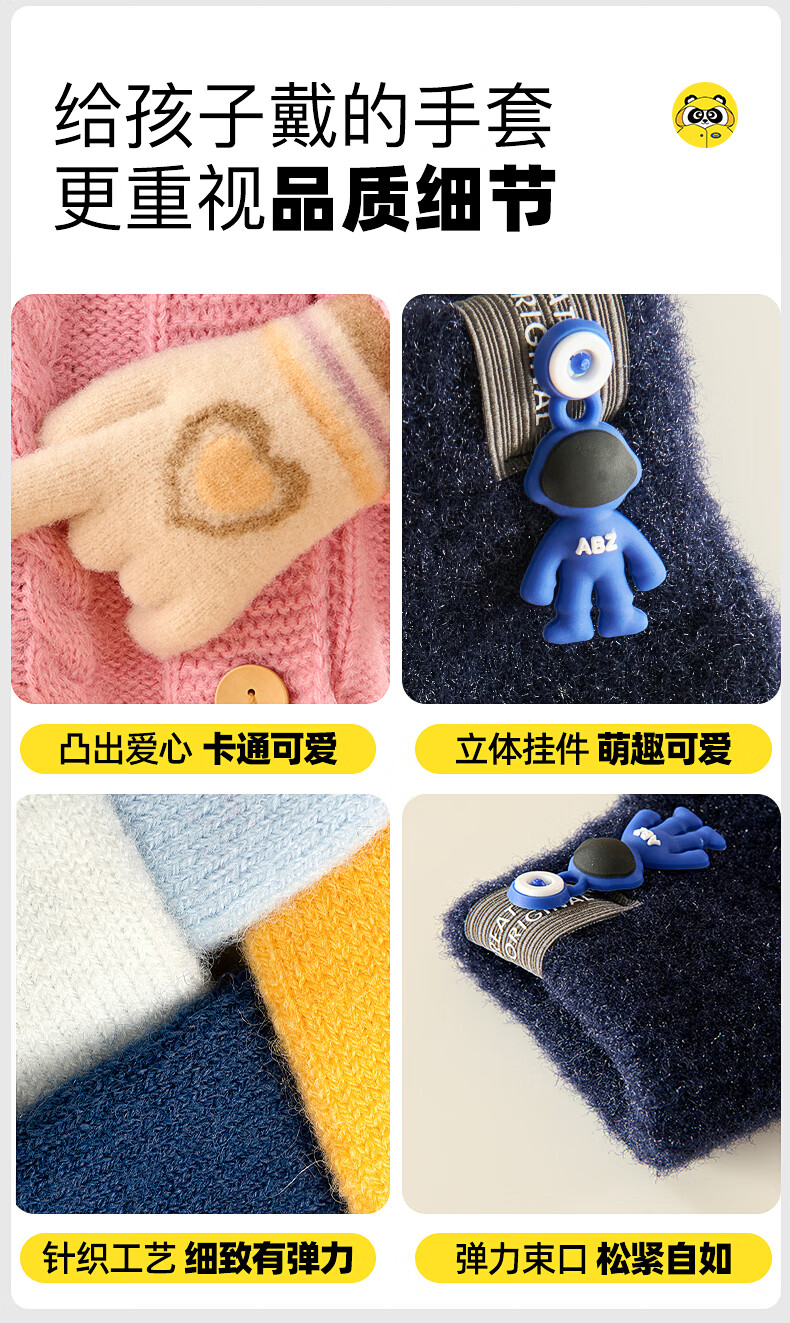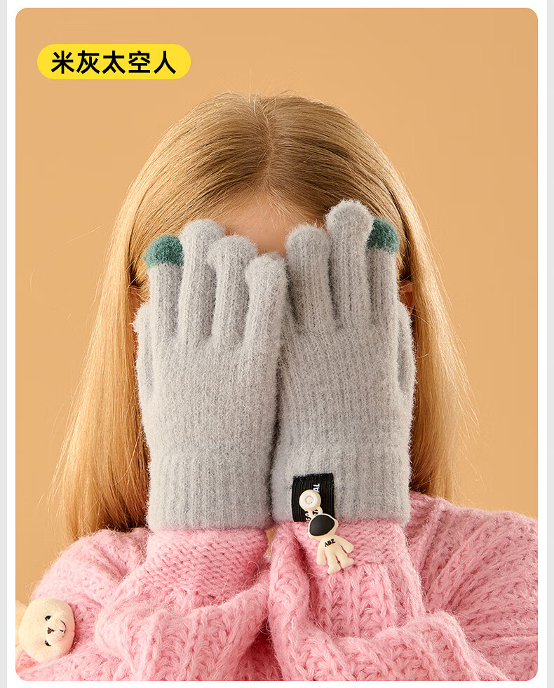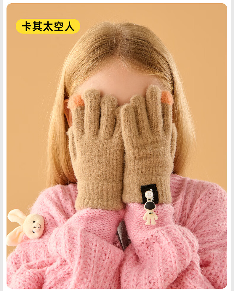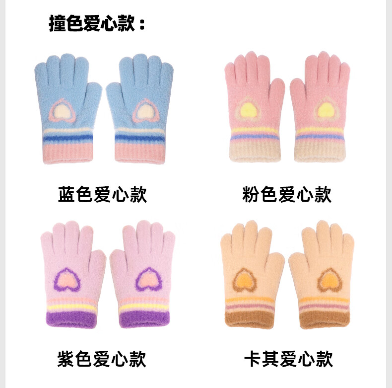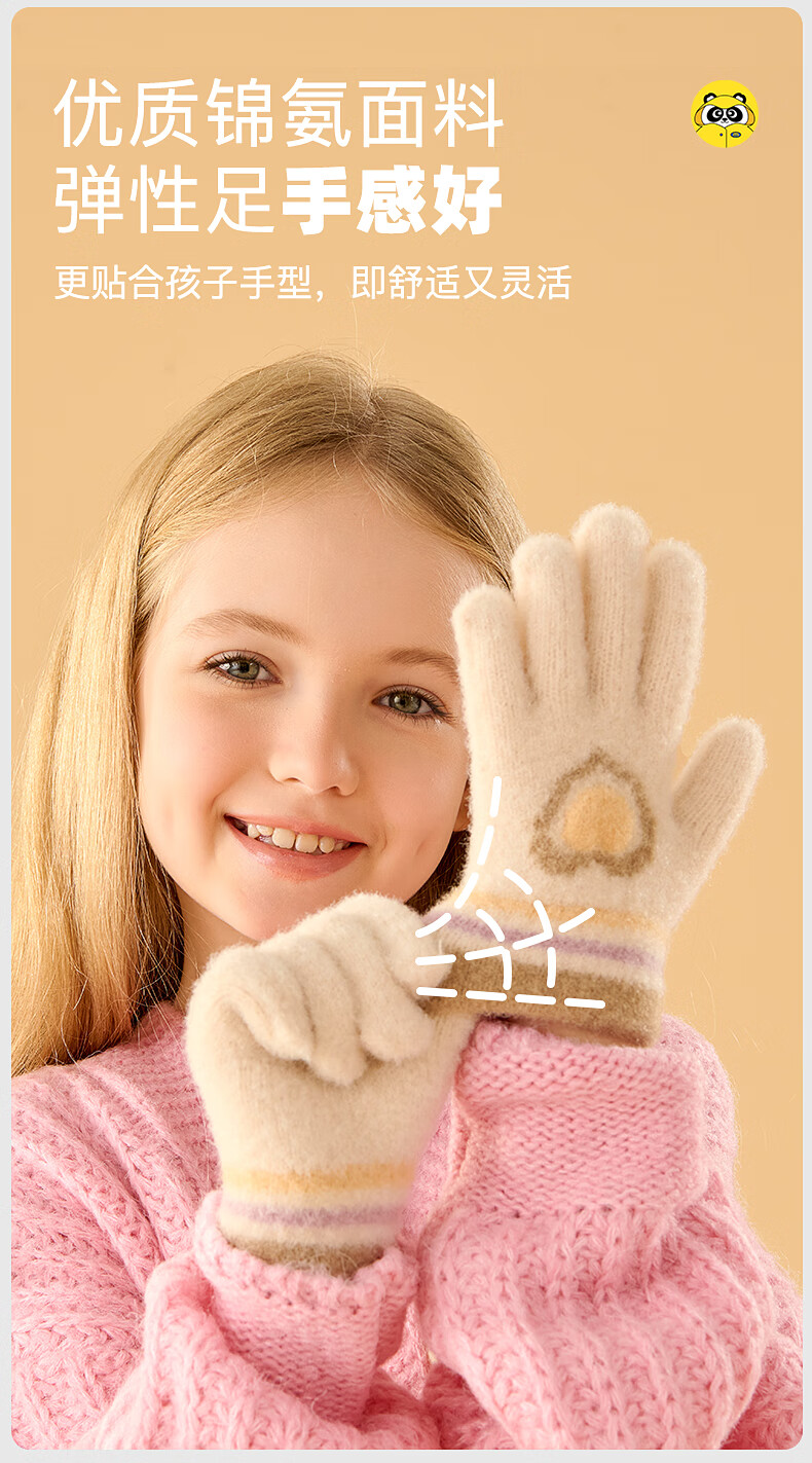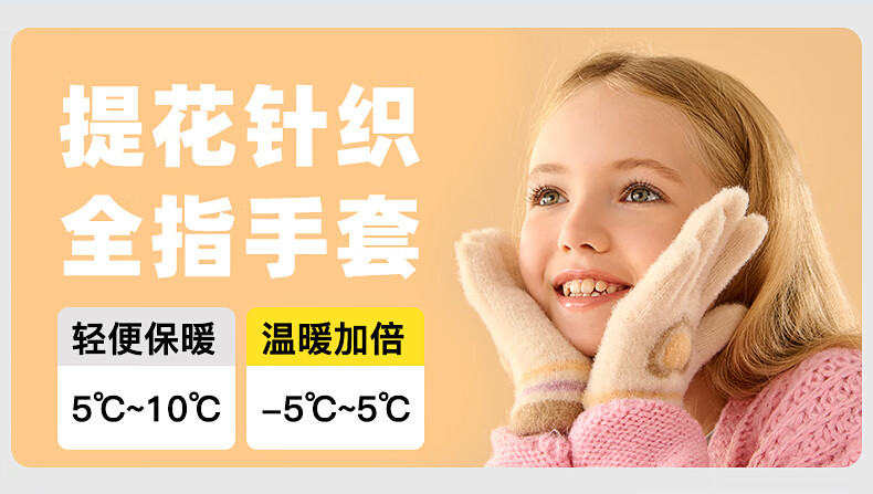 牧萌儿童手套秋冬季男女童保暖全指手套宝宝小学生女孩针织手套 粉色