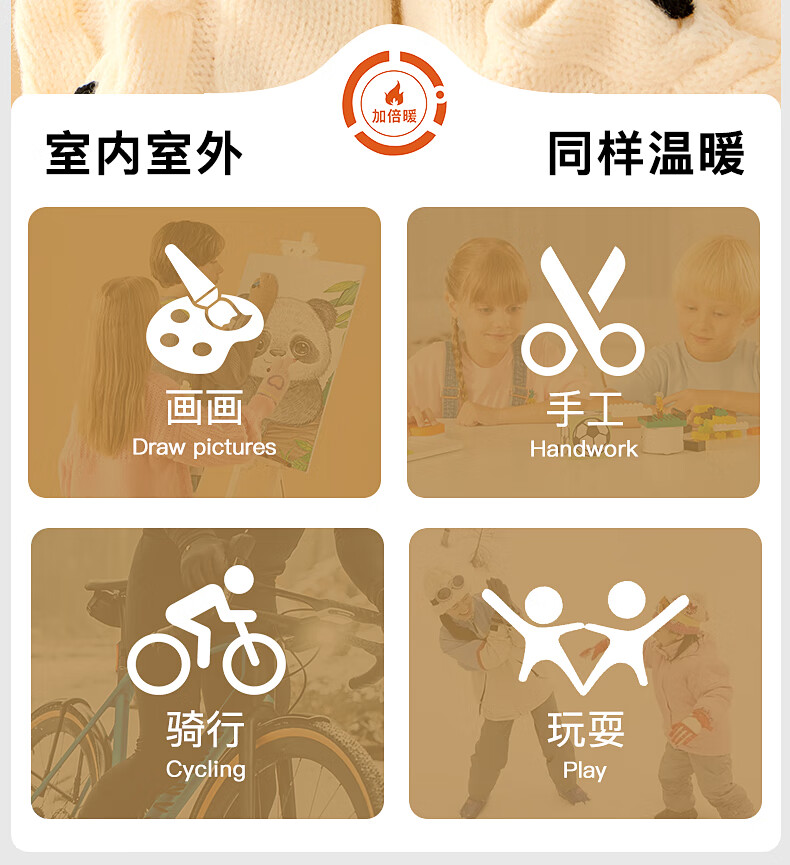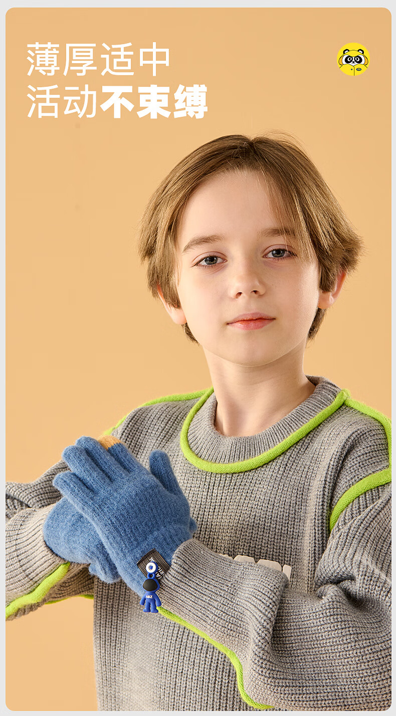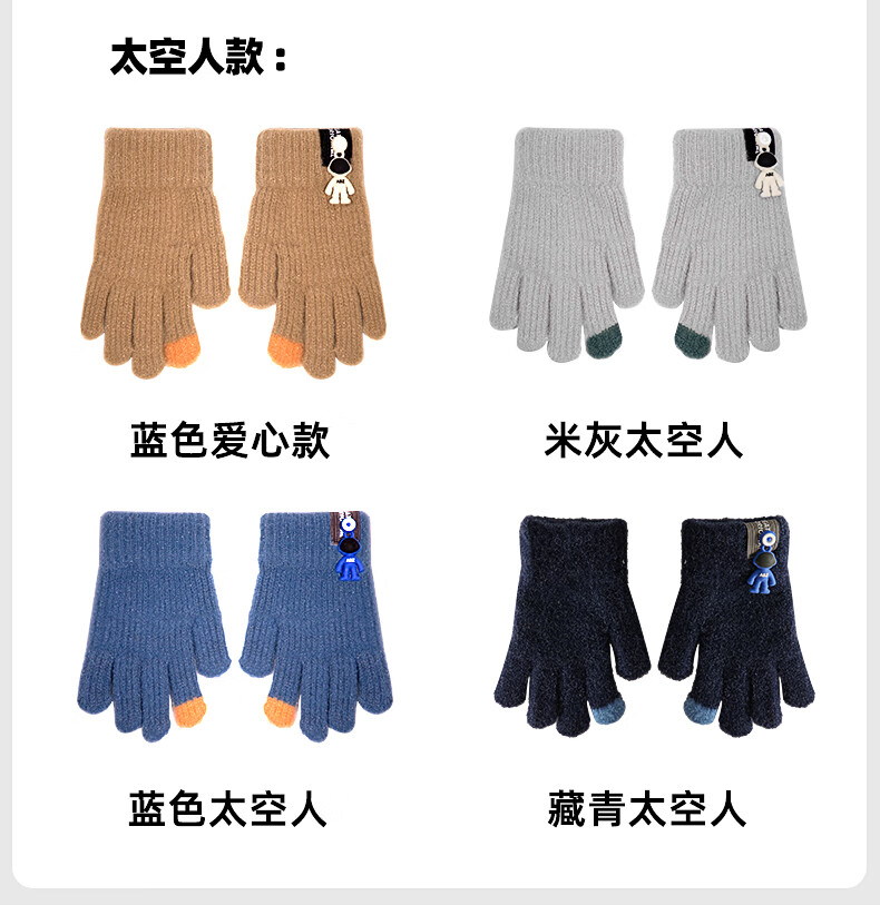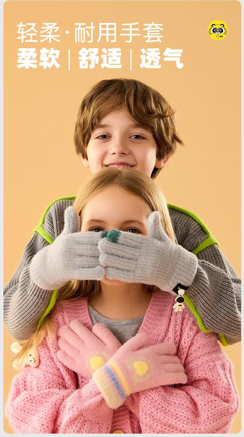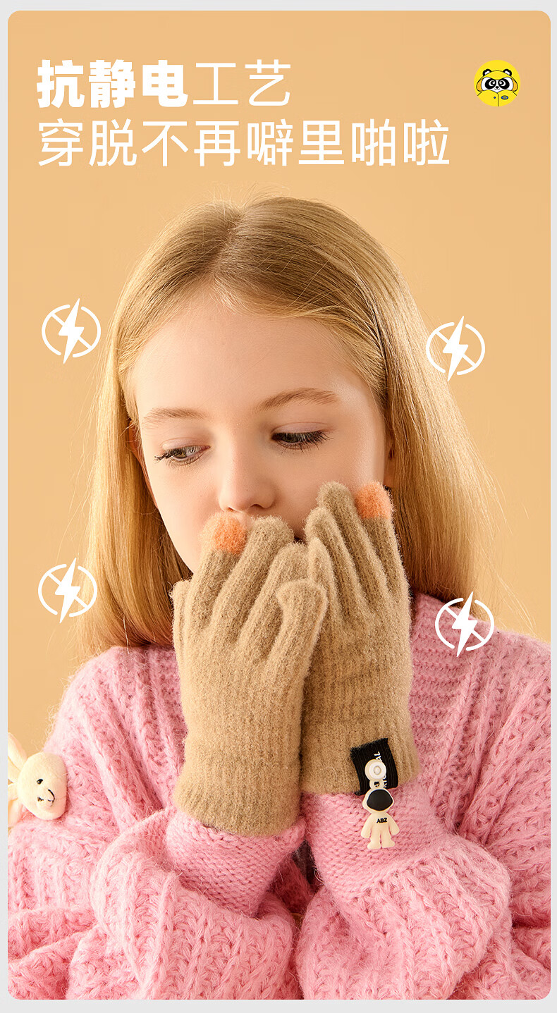牧萌儿童手套秋冬季男女童保暖全指手套宝宝小学生女孩针织手套 粉色