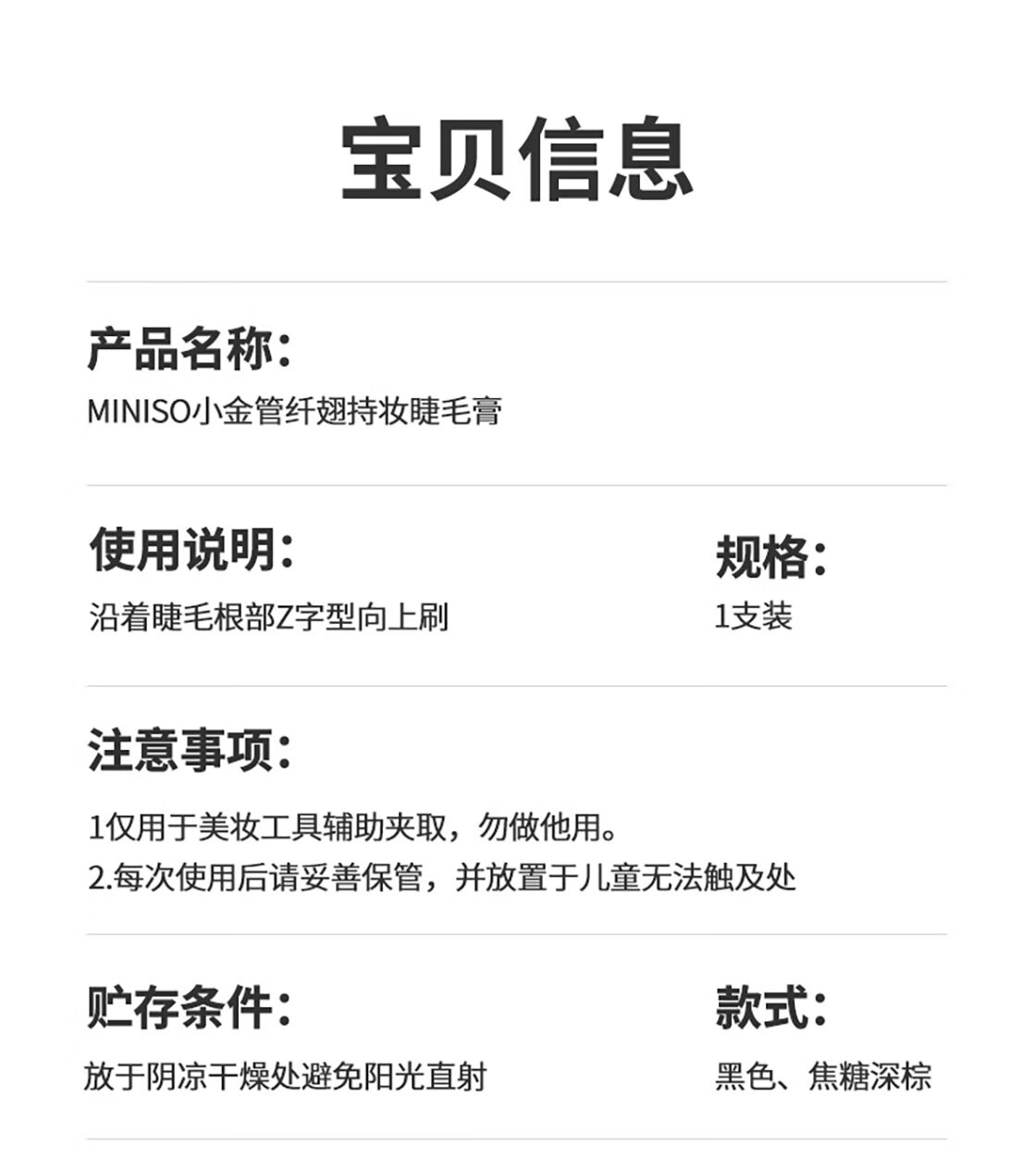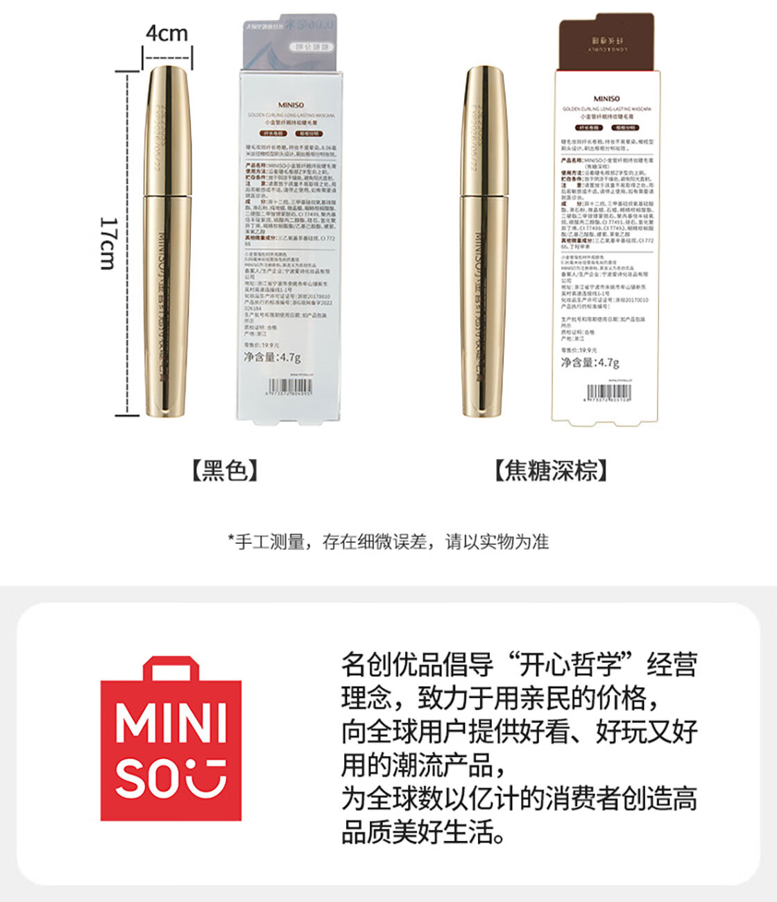 名创优品(MINISO)小金管纤翘持妆睫毛膏卷翘定型防水防汗不晕染礼物女