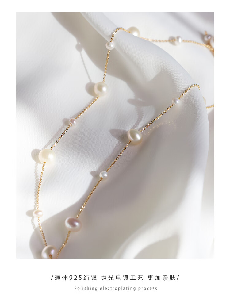 珍珠项链满天星淡水女时尚款2025冬季毛衣链长款 天|然淡水珍珠53厘米(金色)假一