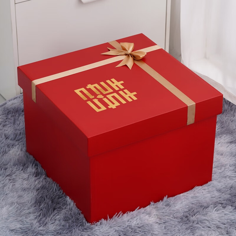 山头林村红色结婚礼物盒超大号礼品盒空盒新婚衣服鞋子包装盒订婚求婚礼盒 喜字胶贴金色丝带 25*25*25cm 礼盒都送提绳