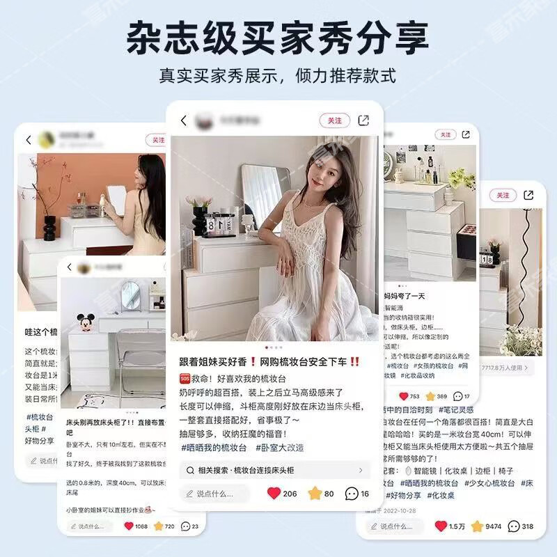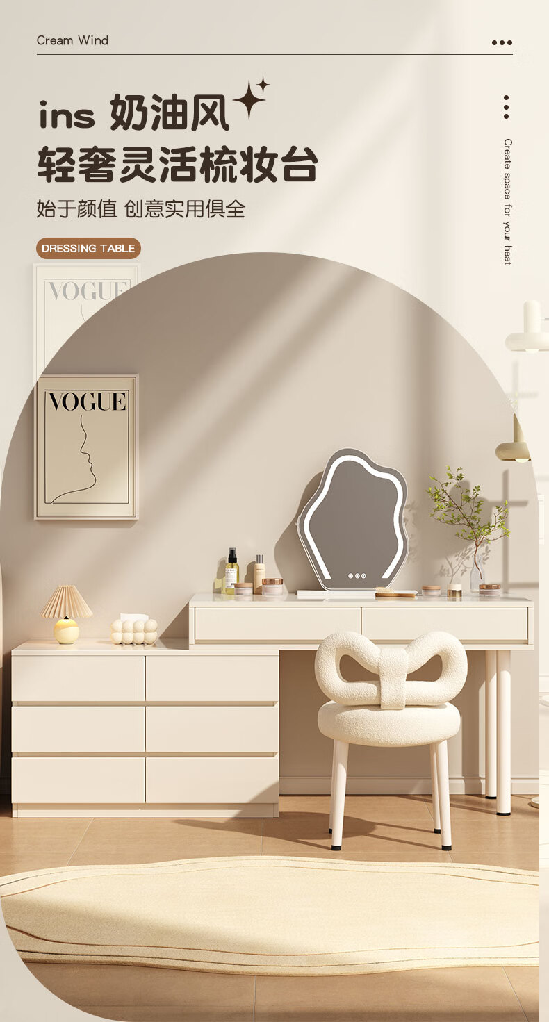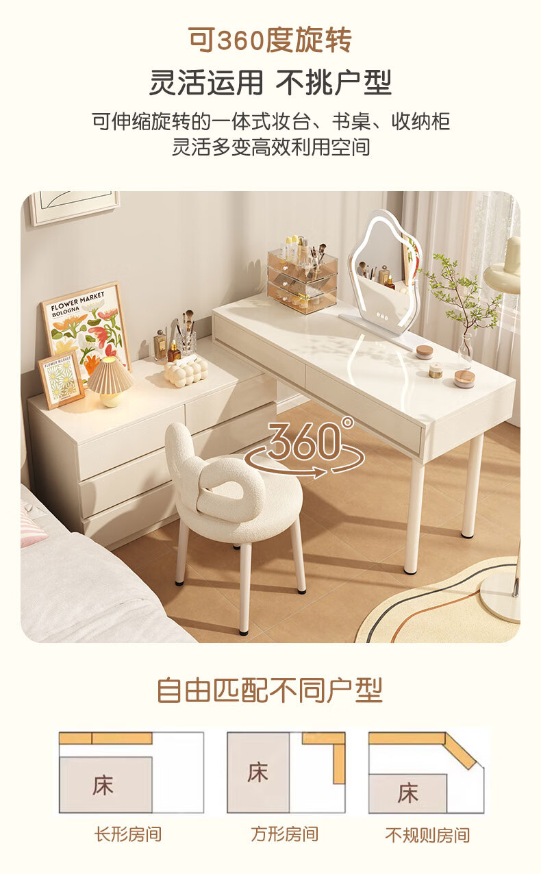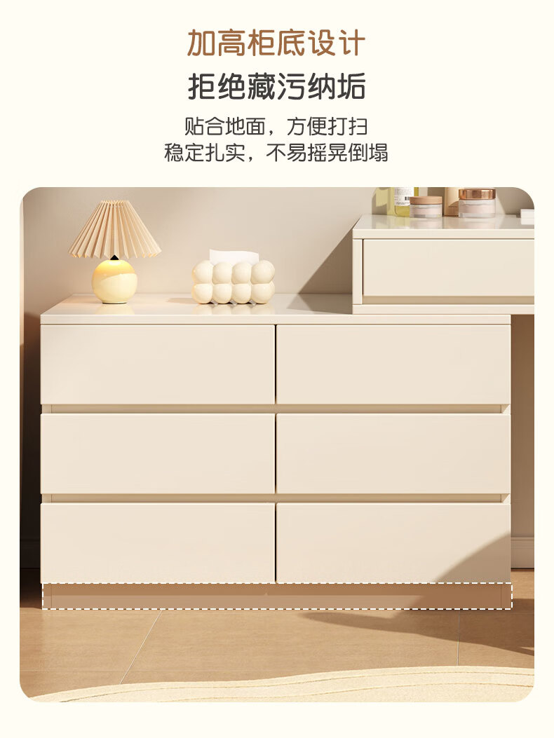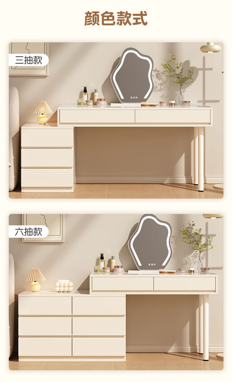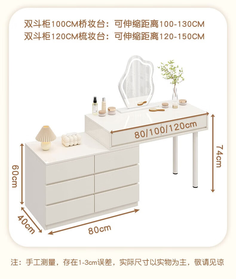 富禾实木梳妆台床头化妆桌斗柜一体可伸缩卧室小户型奶油风化妆台桌子 补贴【三抽边柜+云朵镜】80cm桌 【15mm实木板芯】自行组装