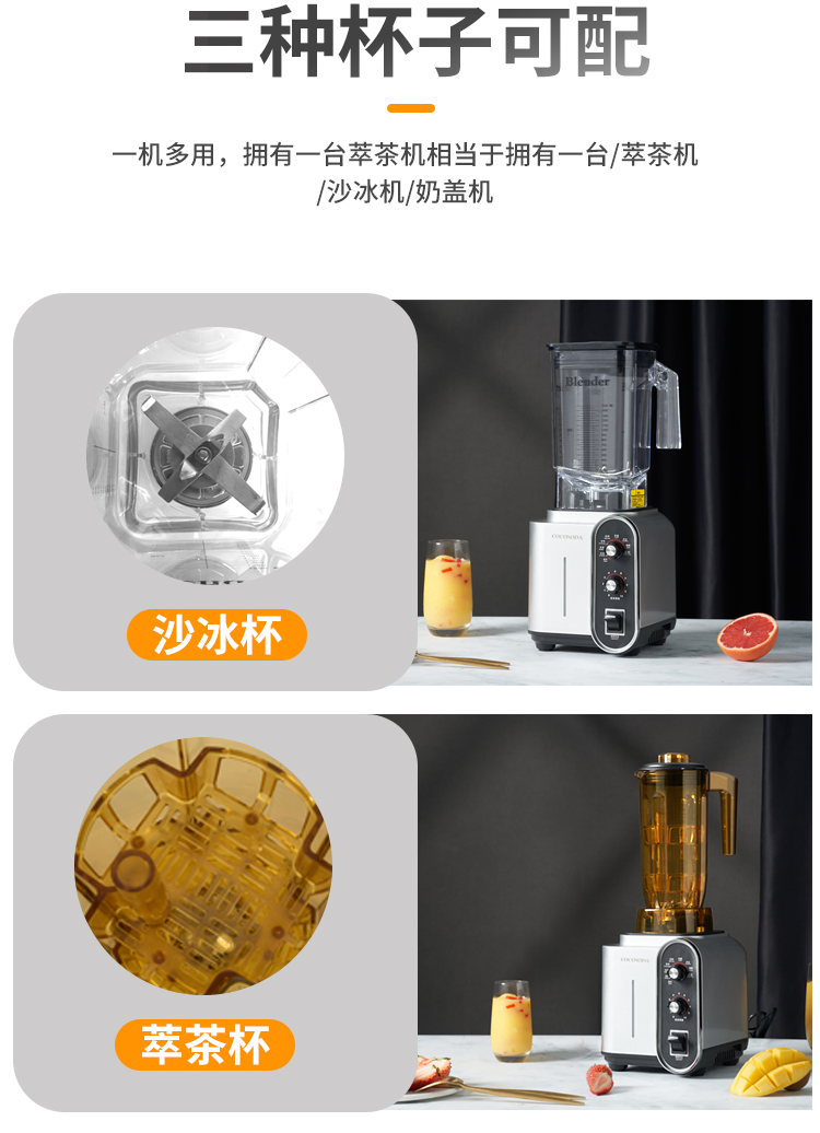 COCOSODA萃茶机奶茶店商用奶昔奶盖机奶泡机沙冰机粹茶机冰沙机碎冰刨冰果汁机多功能大容量大马力 一机一杯(沙冰杯)