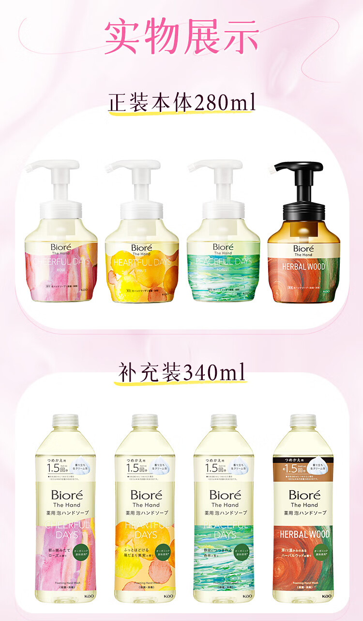 花王(KAO)洗手液280ml 进口香氛泡泡护手抑菌杀菌便携家用儿童洗手液泡沫型