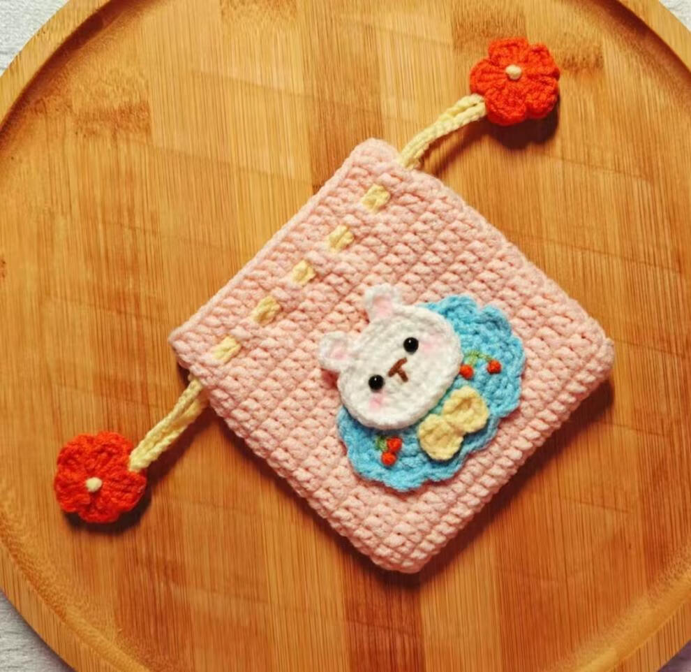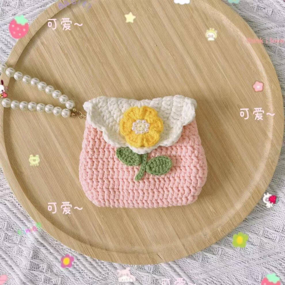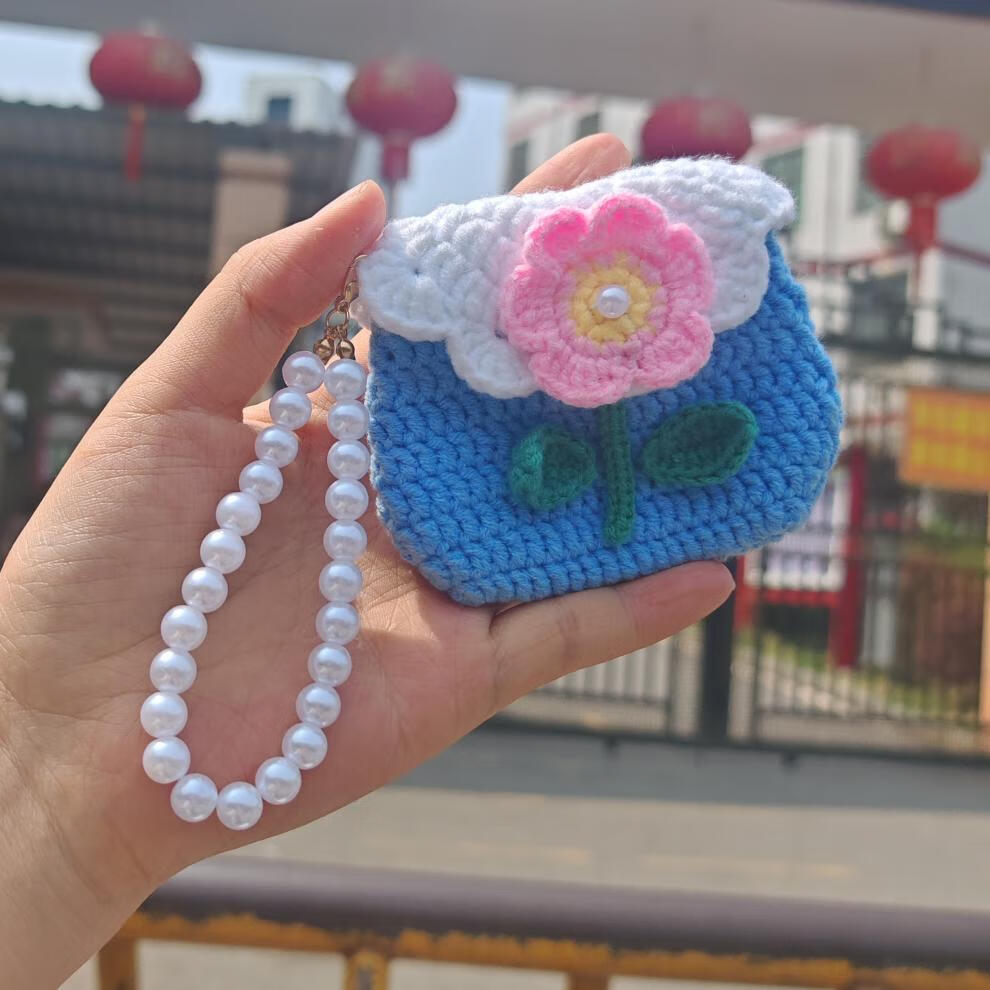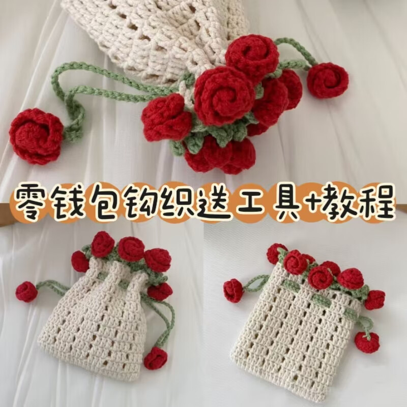赛乐透勾线手工编织玫瑰花朵束口包耳机包毛线diy勾线材料包自制零钱包 瑰花零钱包材料包送+工具
