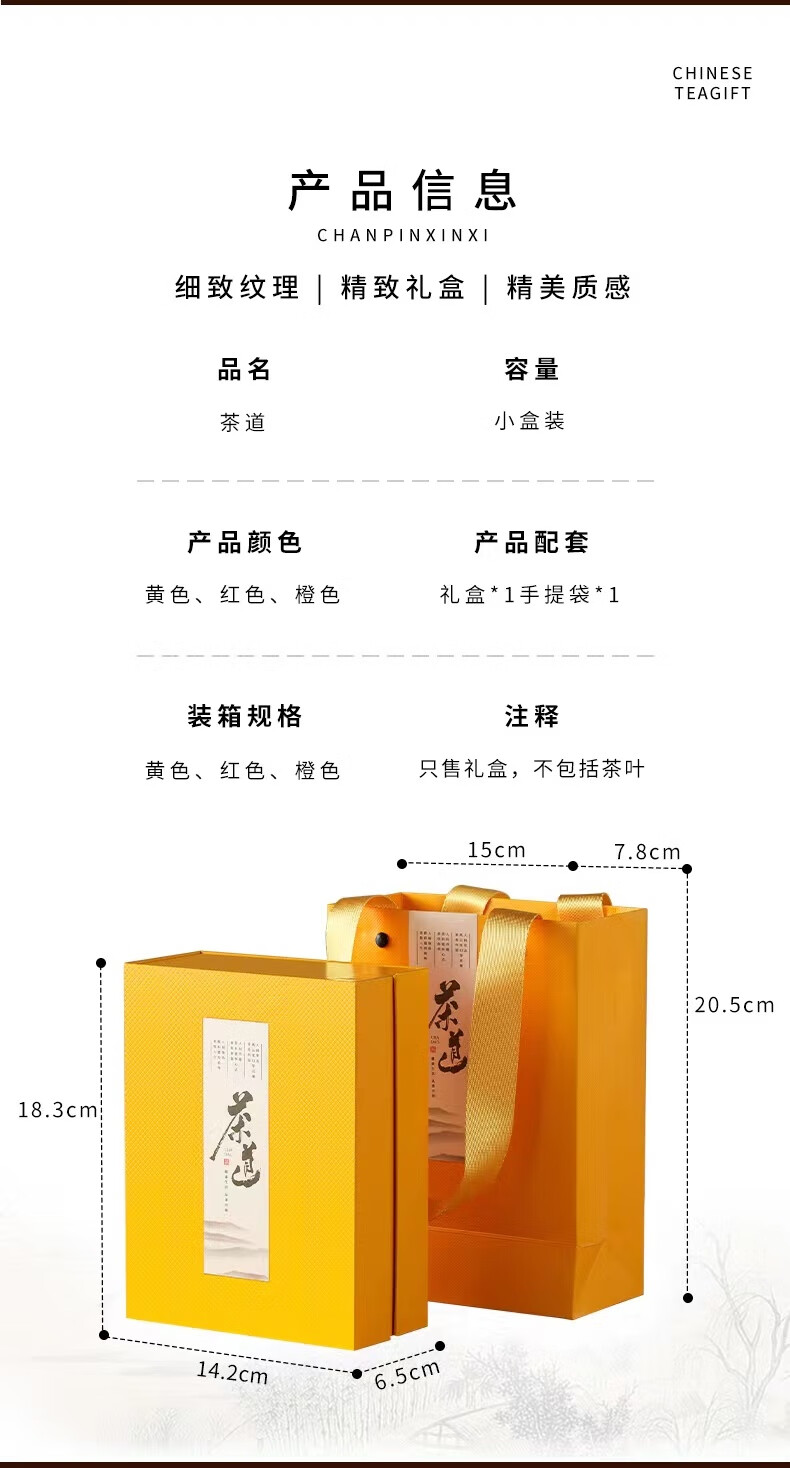 维诺亚茶叶礼盒包装盒批发空盒精致包装礼通用茶礼盒空盒茶叶罐岩茶肉桂 茶道小盒(单盒)帝黄色