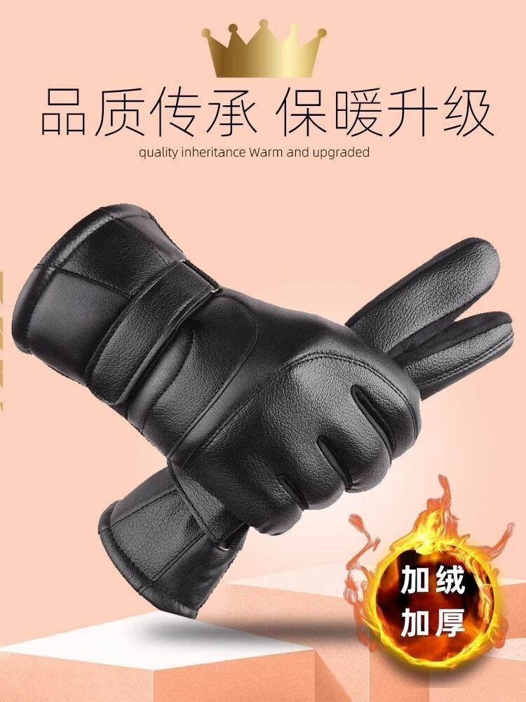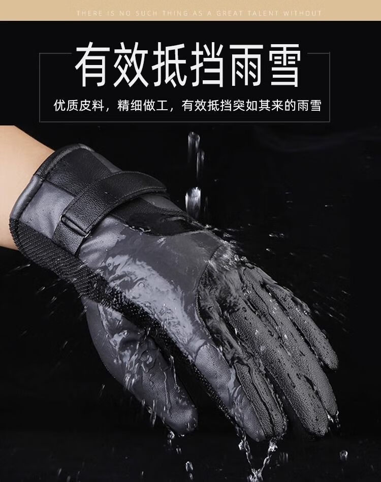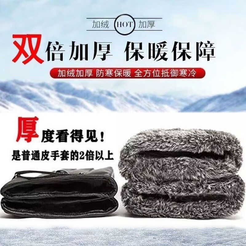 骑行保暖手套皮手套男士冬加绒加厚骑车防风防水触屏摩托车棉冬季 加厚骑行手套-1双