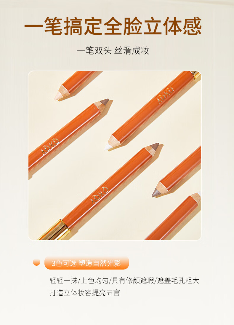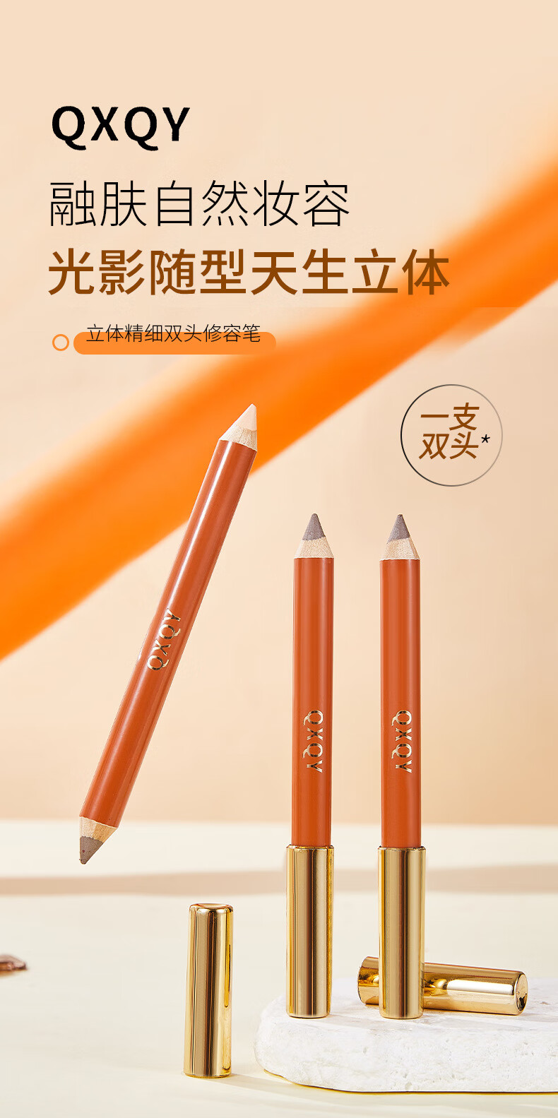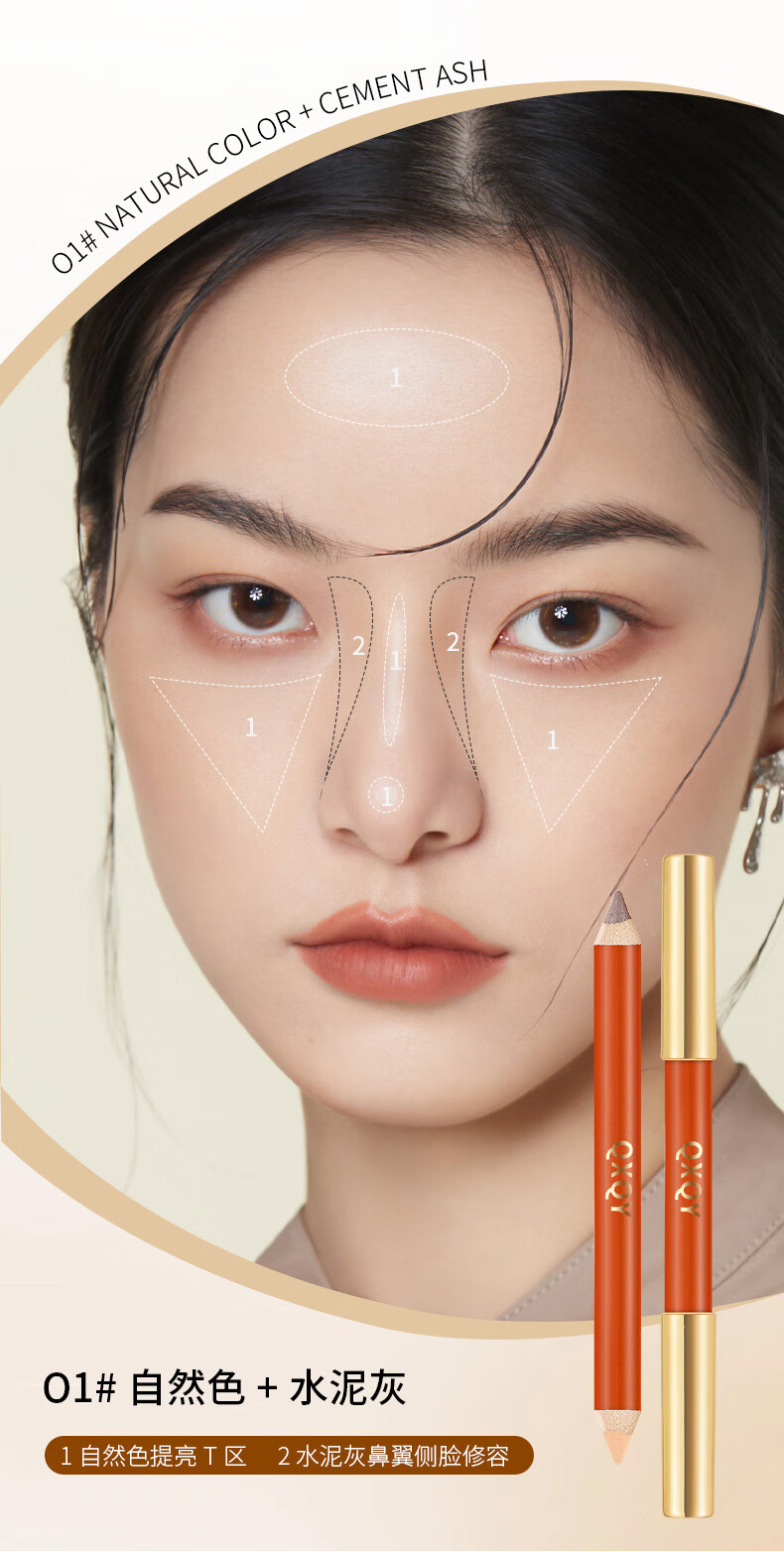 双头修容笔鼻侧影人中遮瑕阴影哑光脸部提亮高光修容棒一体两用 01#自然色+水泥灰