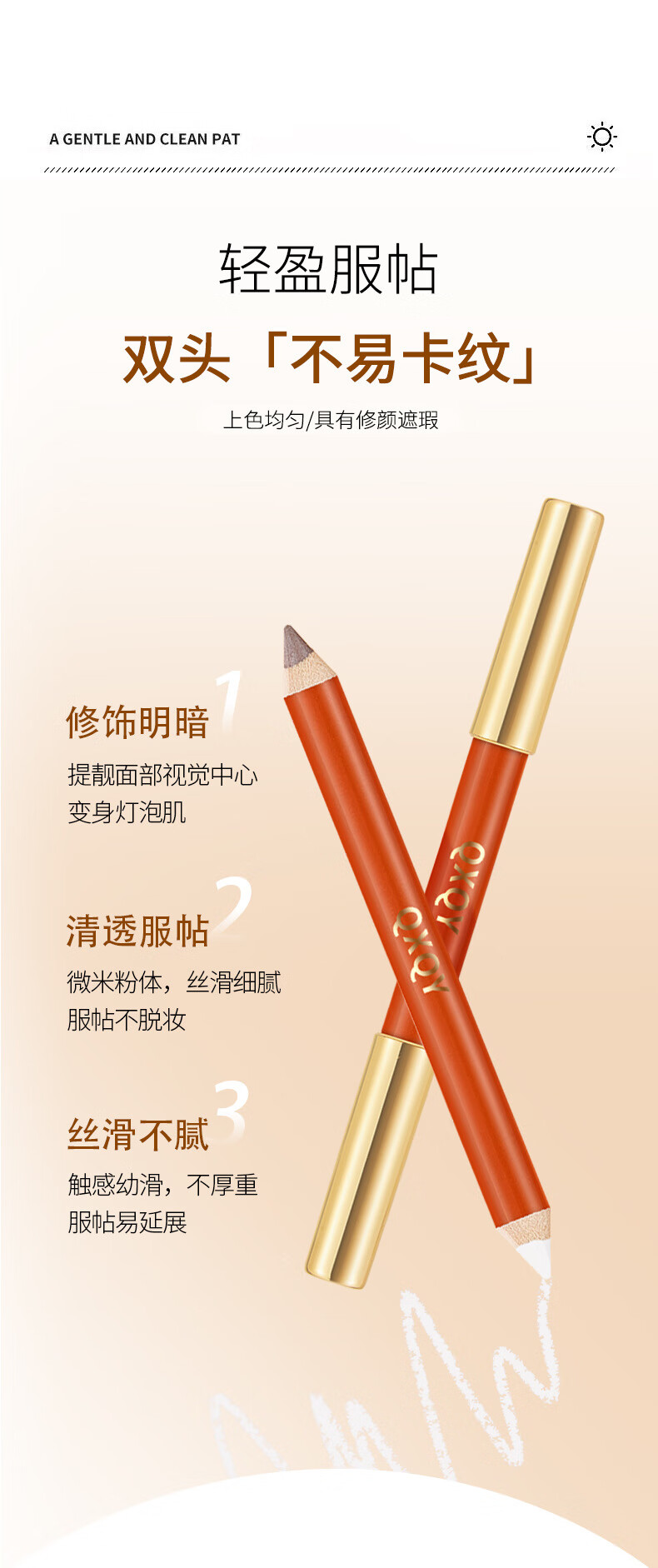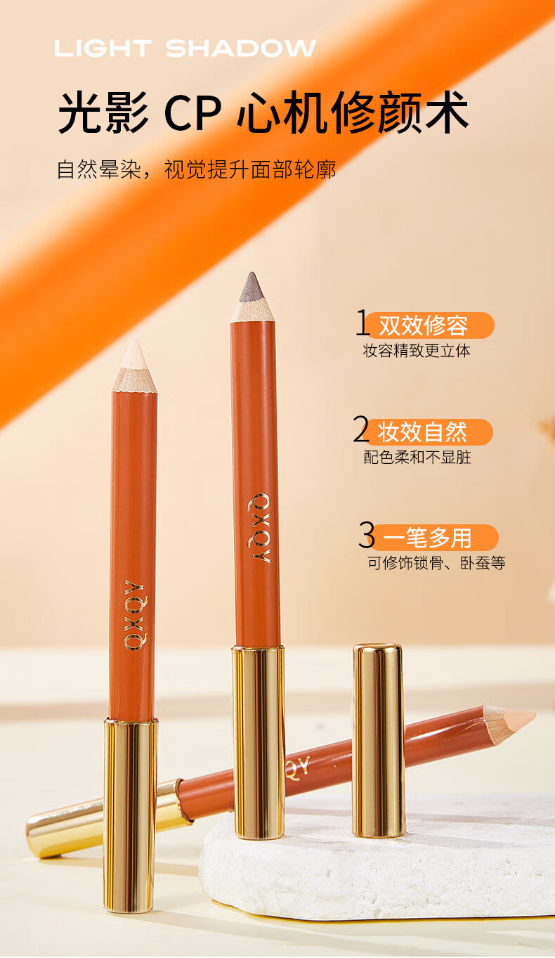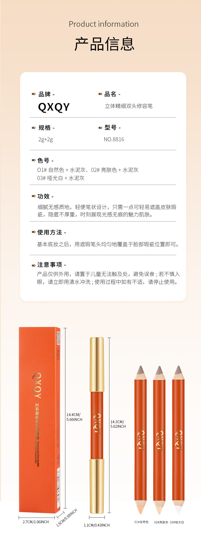 双头修容笔鼻侧影人中遮瑕阴影哑光脸部提亮高光修容棒一体两用 01#自然色+水泥灰