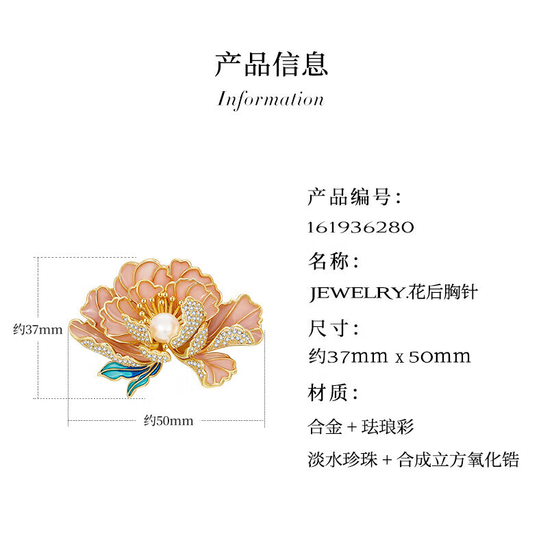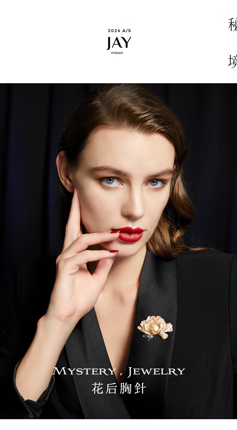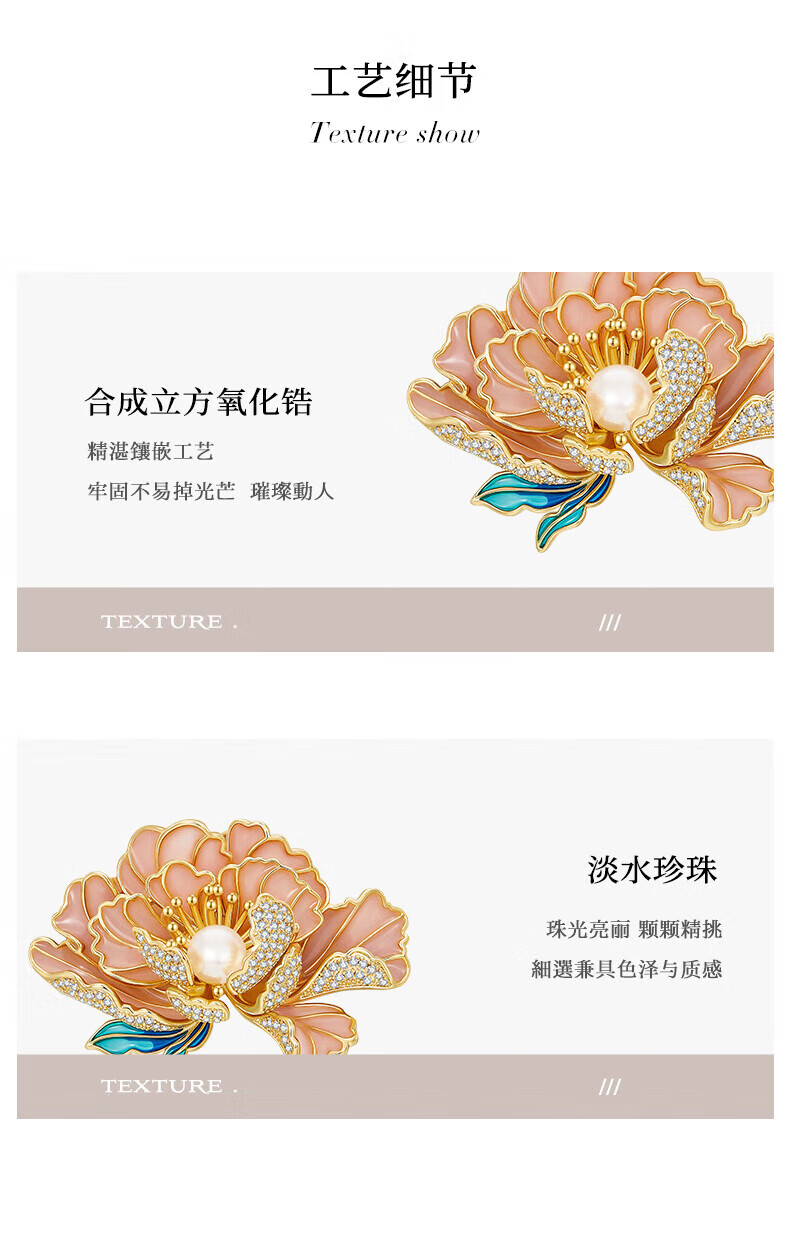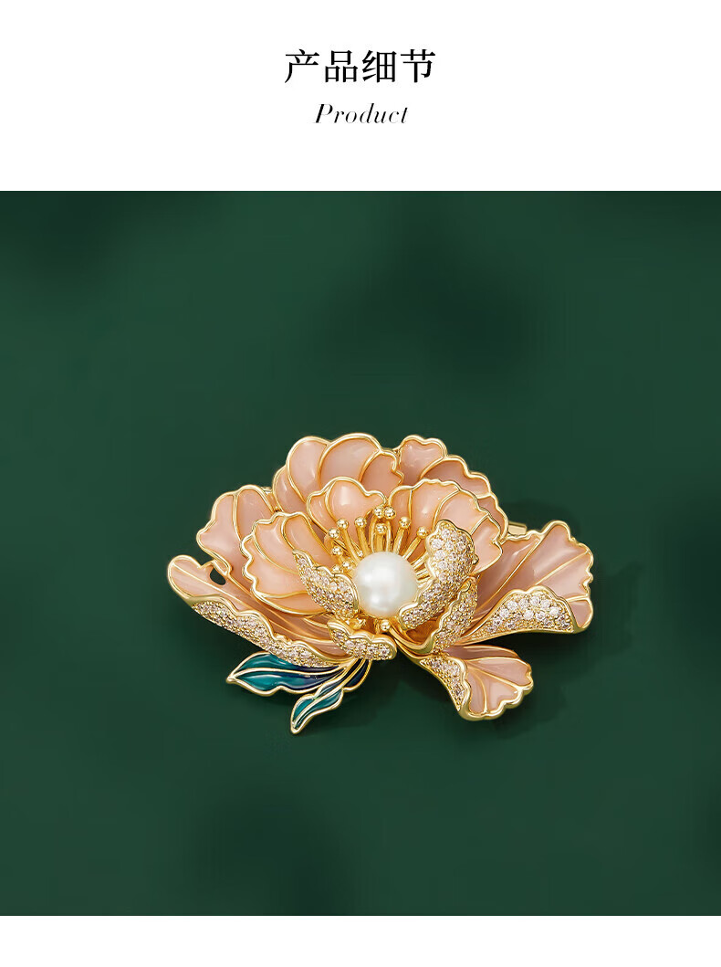 Jay新中式牡丹胸针女胸花配饰送妈妈婆婆长辈新年礼物 胸针(淡水珍珠)