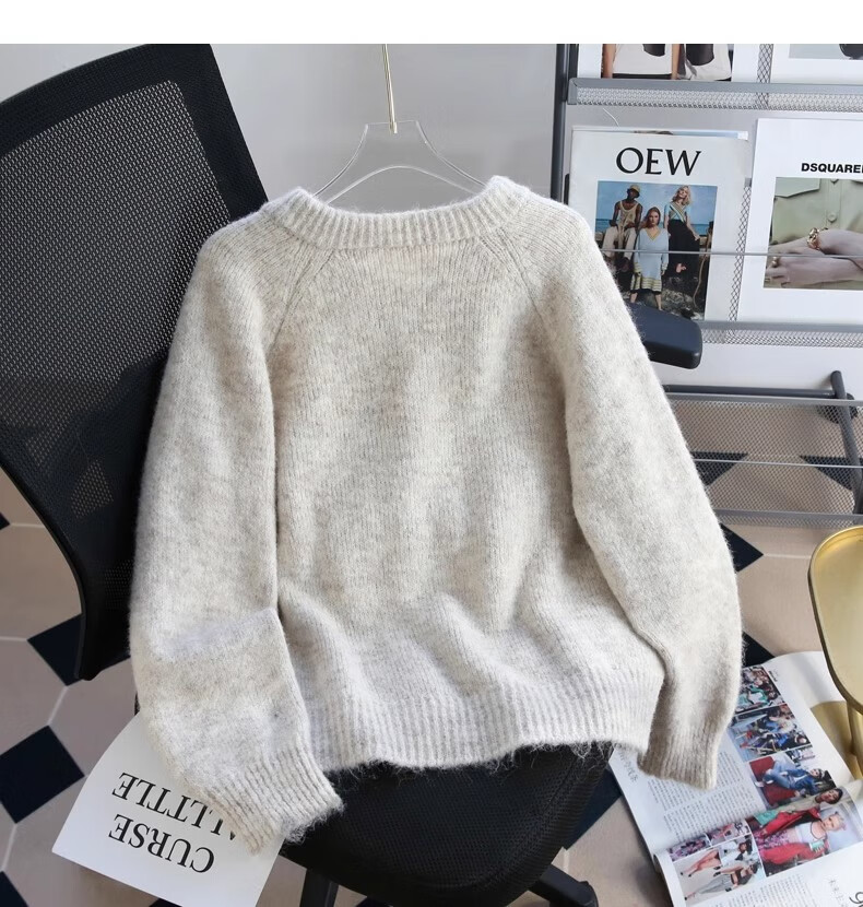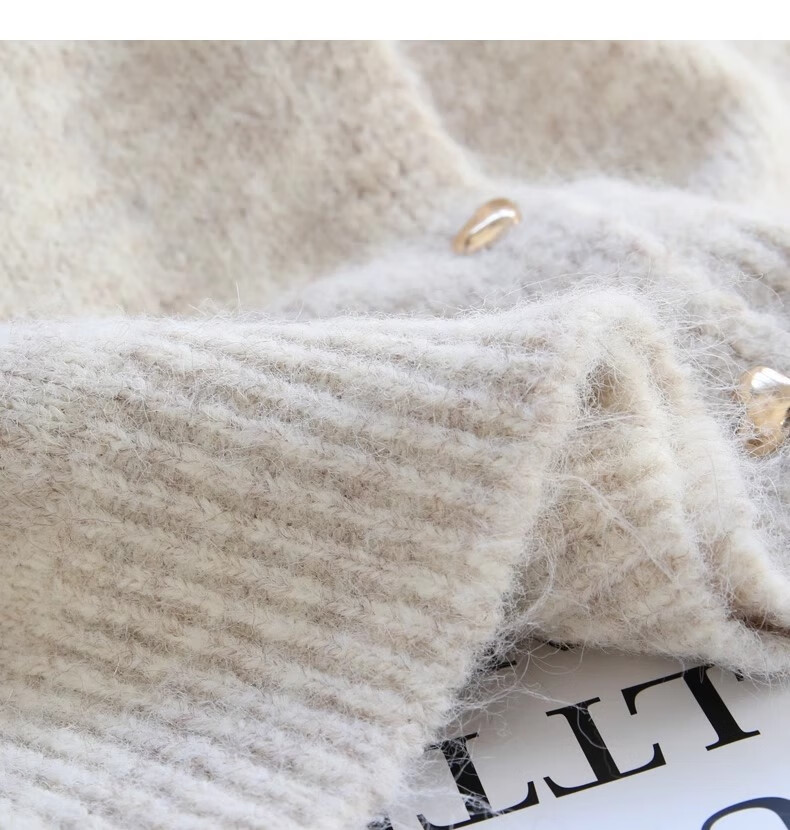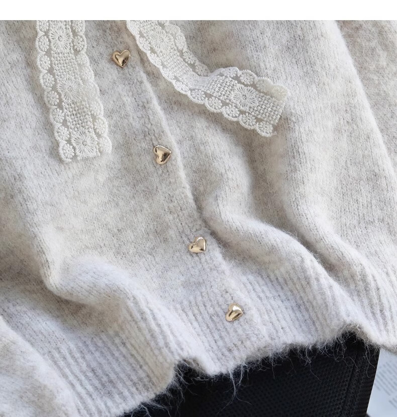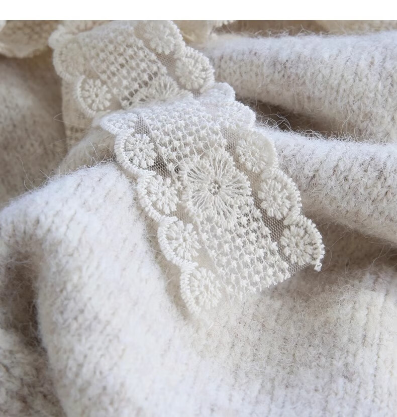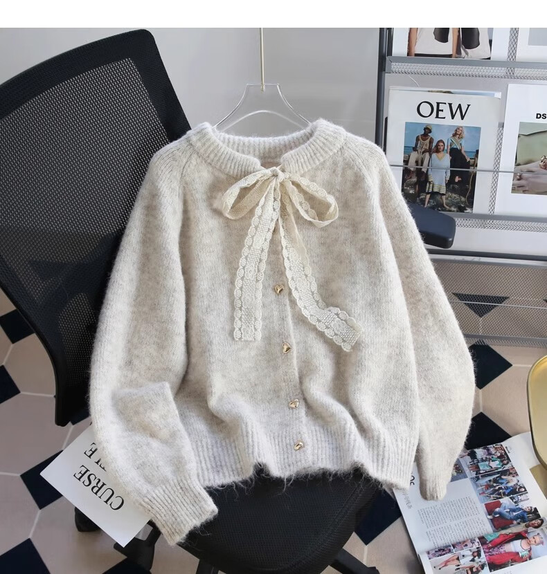 毛衣开衫女设计感蕾丝系带2025新款秋冬季慵懒风加厚软糯针织外套 杏色 均码 适合80-135斤