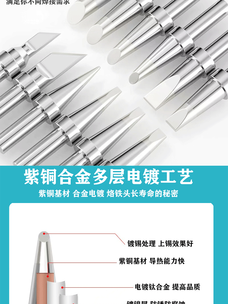 205h烙铁头内热式刀头马蹄型恒温500高频洛铁头紫铜usb自动焊锡机 500-SK厚