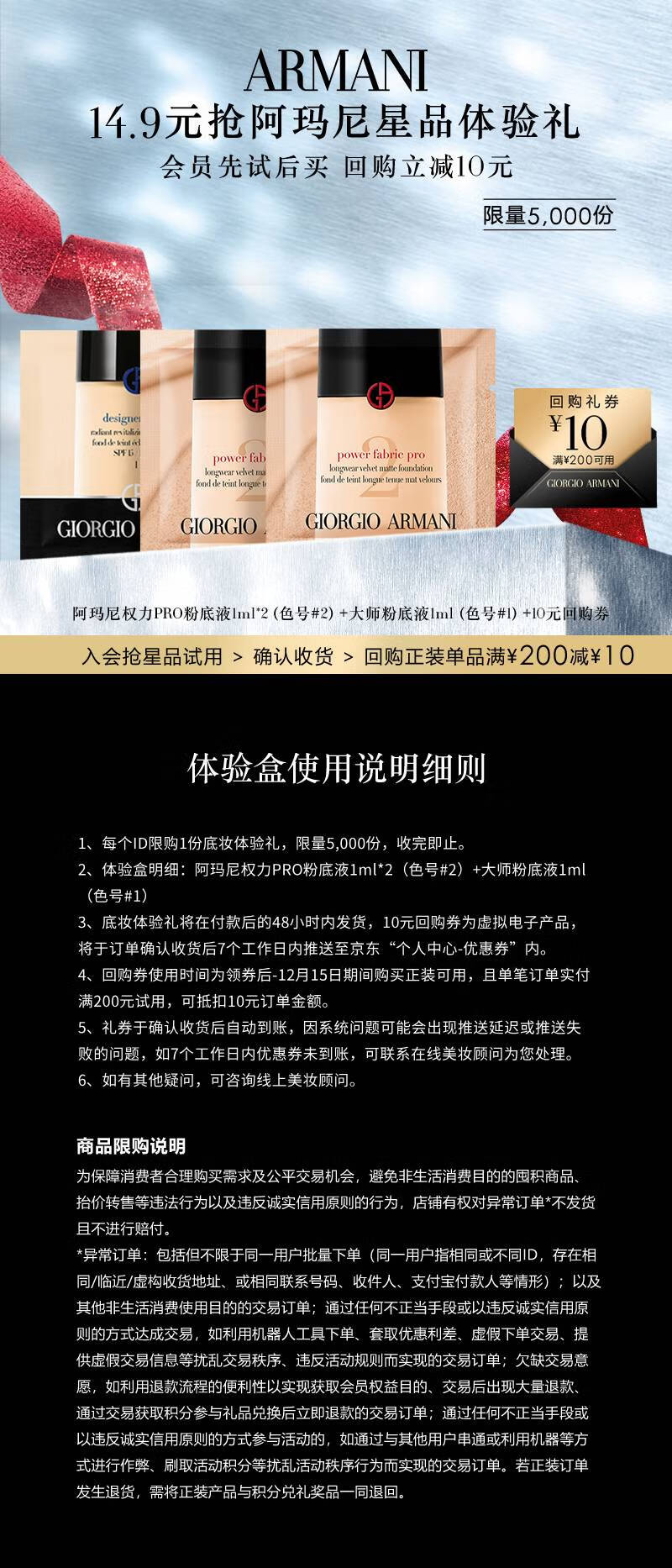 阿玛尼(ARMANI)会员底妆派样(权力PRO粉底液1ml*2 #2+大师粉底液1ml #1)