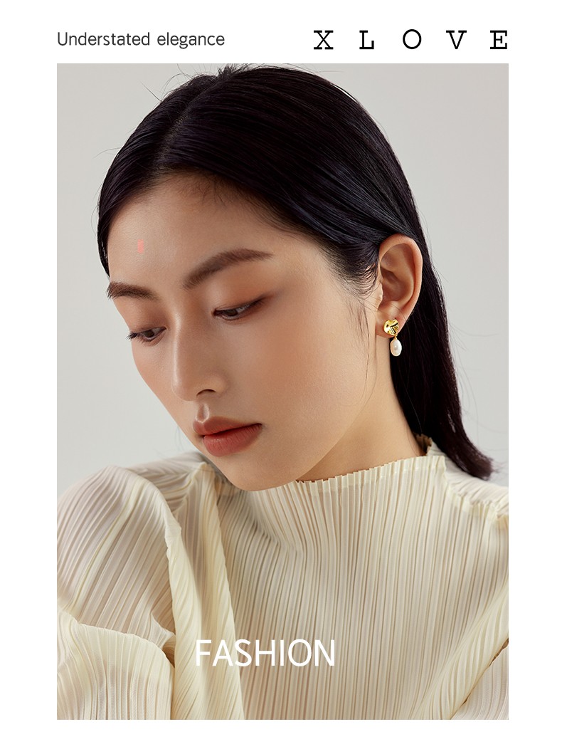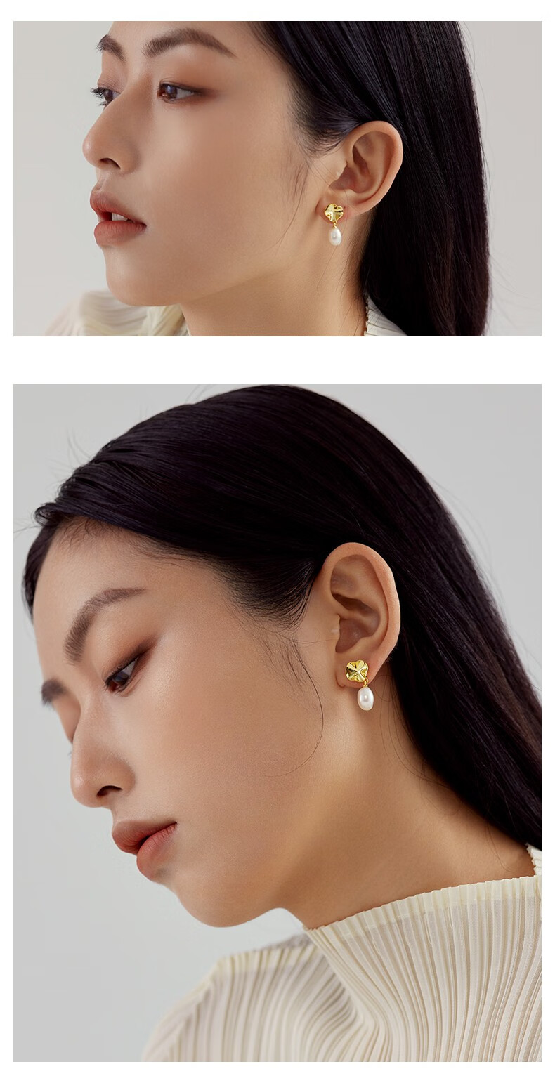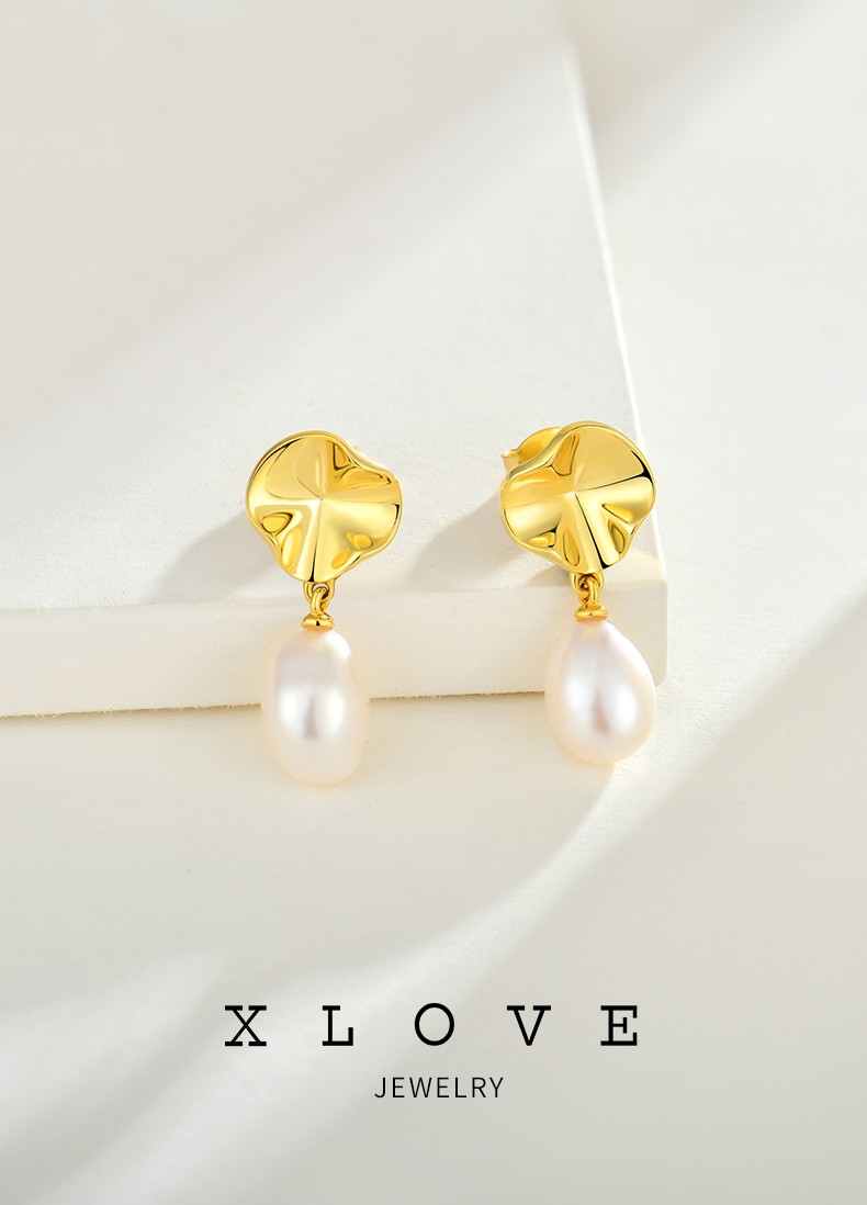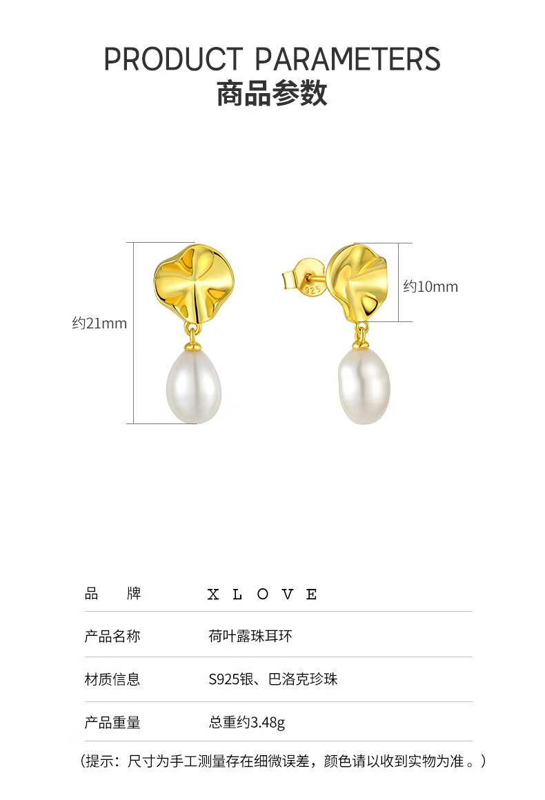 XLOVE 荷叶露珠耳钉女士巴洛克珍珠耳饰日韩风精美高级耳环