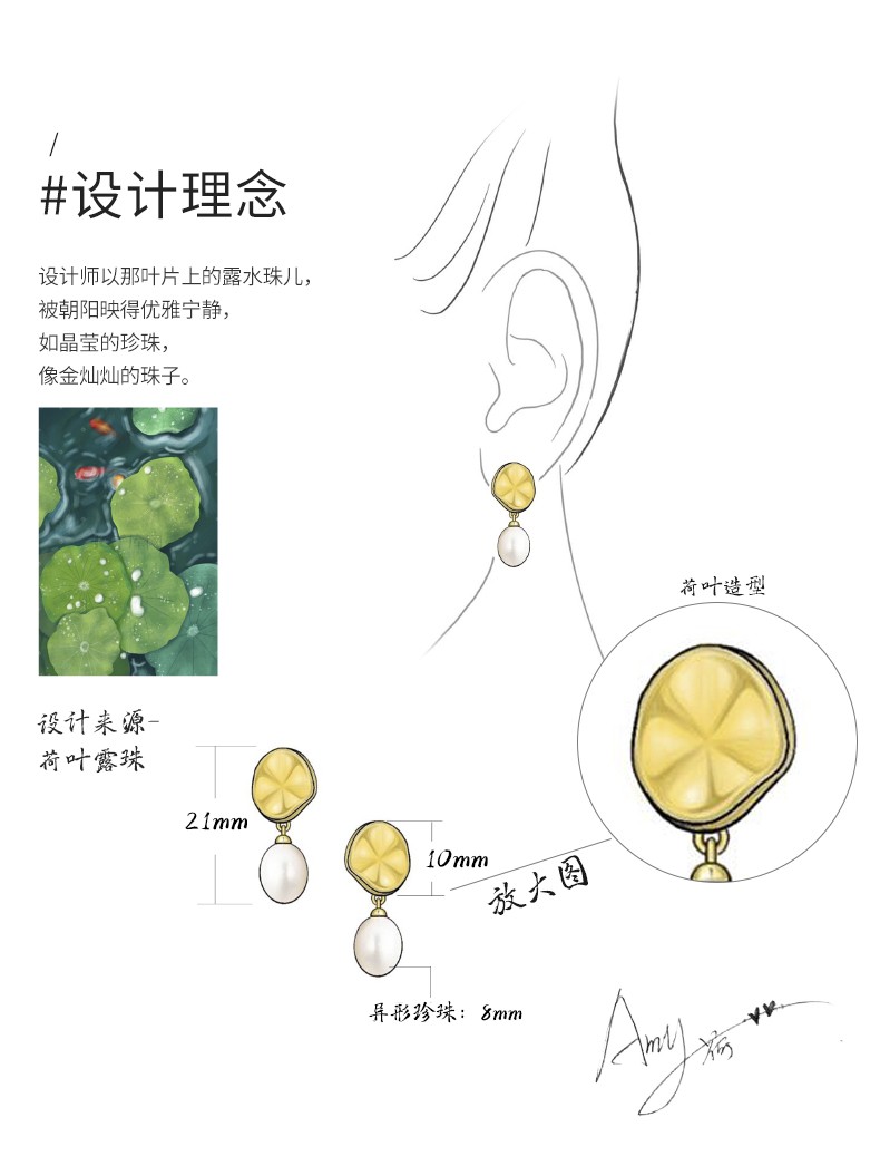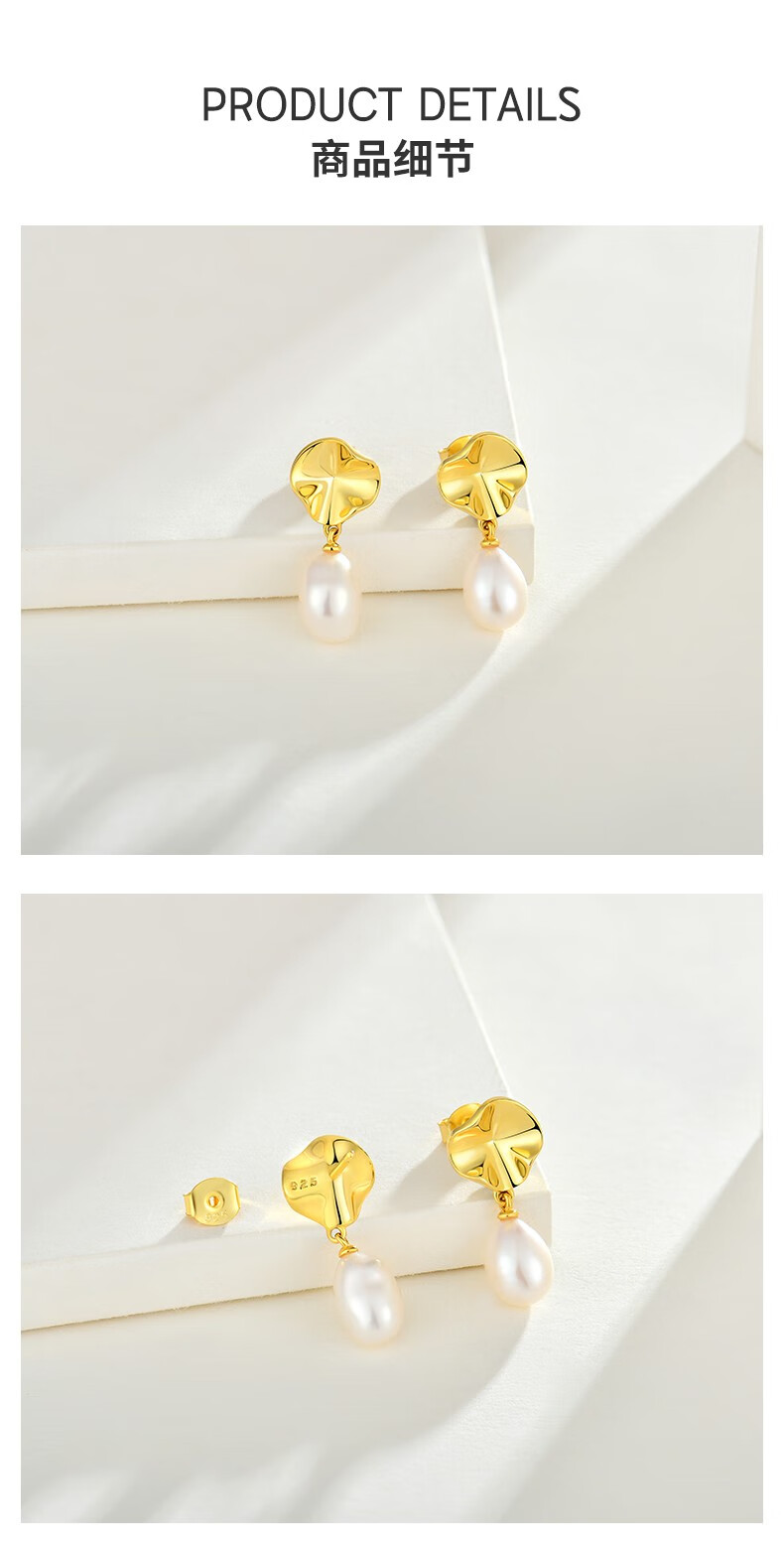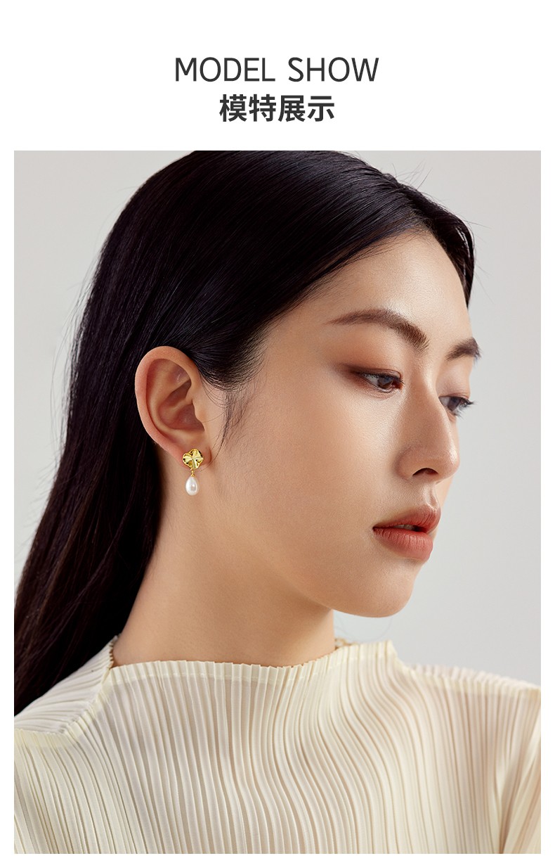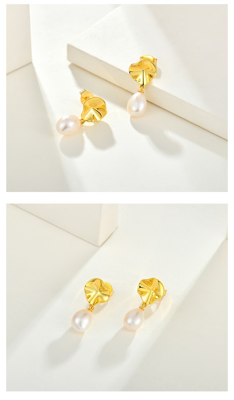 XLOVE 荷叶露珠耳钉女士巴洛克珍珠耳饰日韩风精美高级耳环