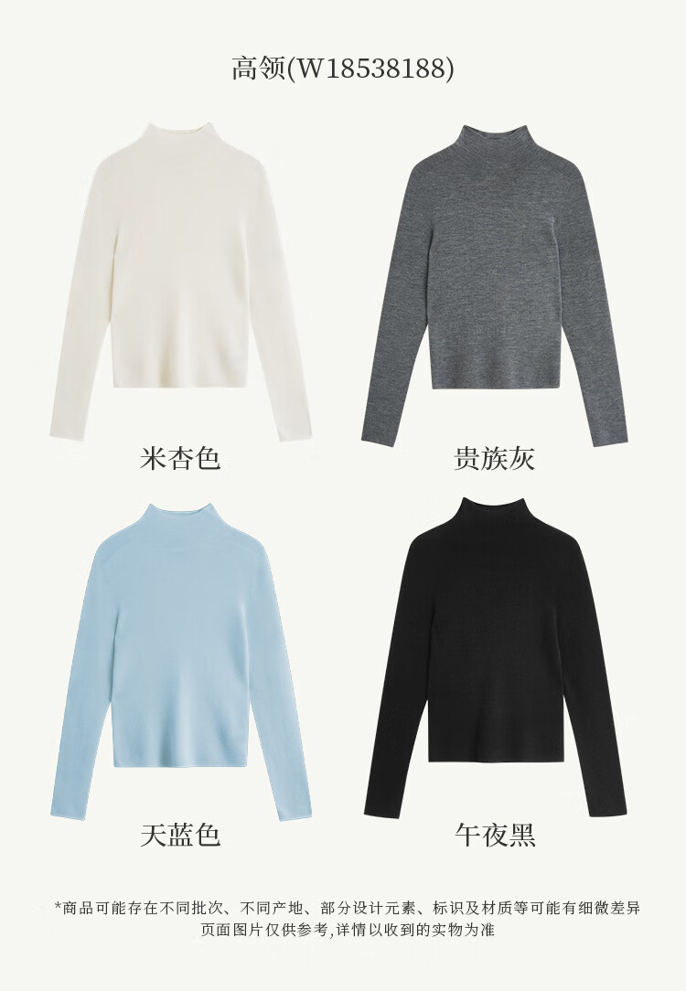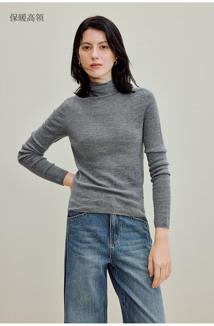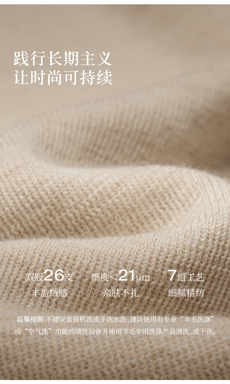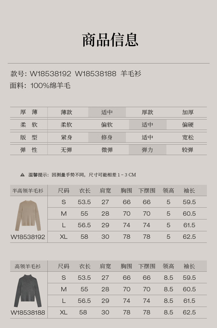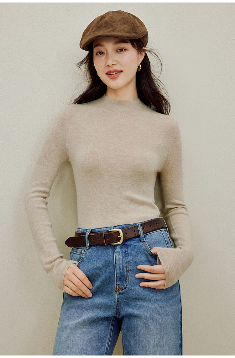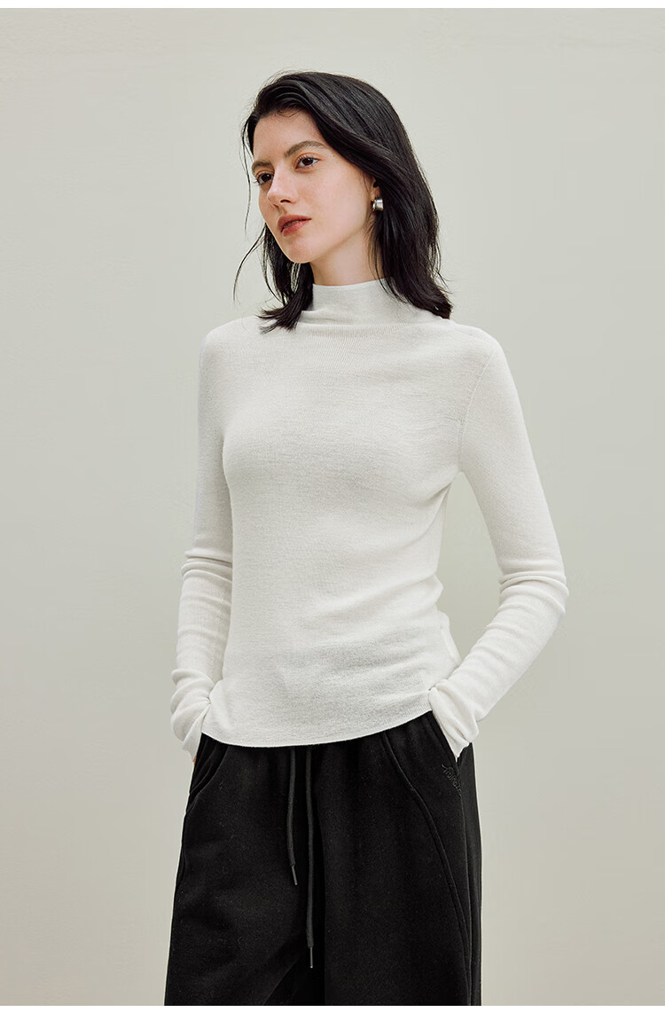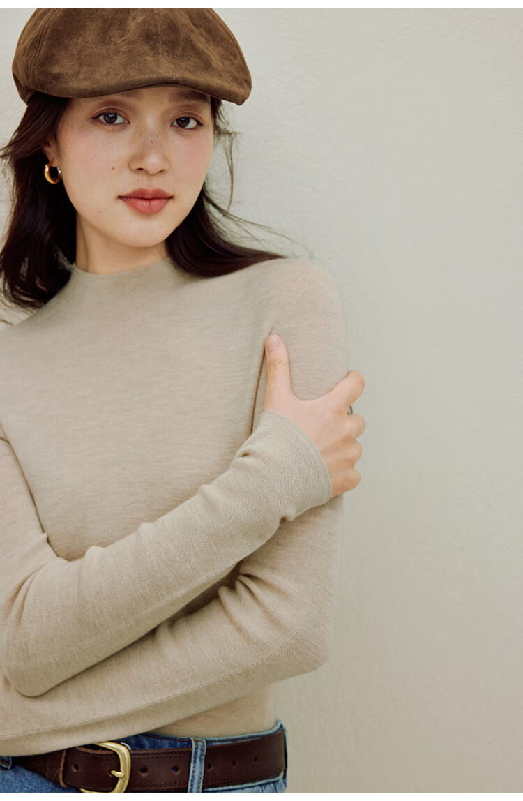 茵曼(INMAN)2026春新款一体半高领可机洗羊毛衫针织毛衣打底衫 米杏色 S