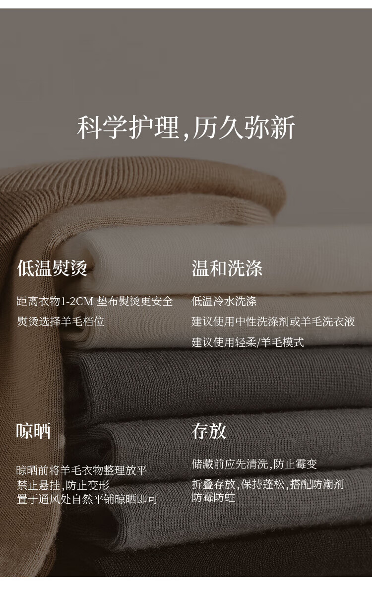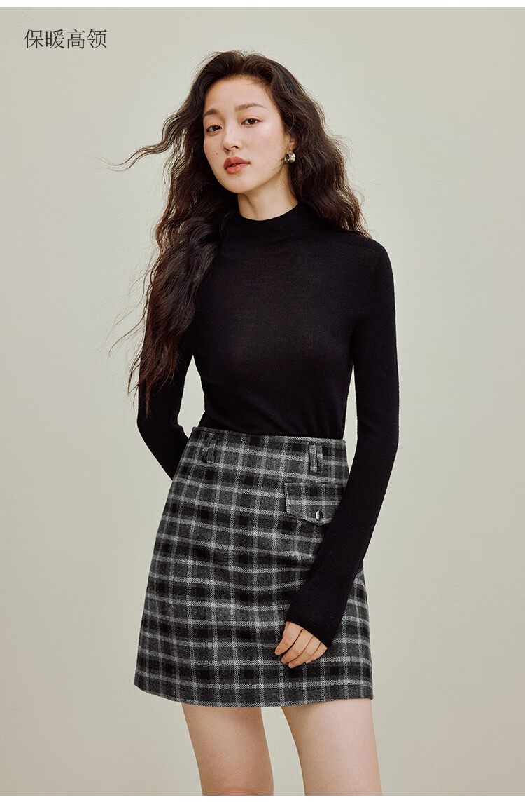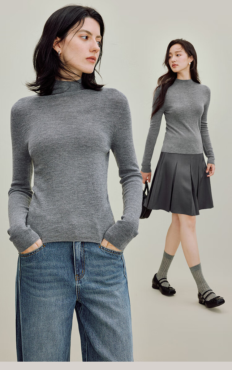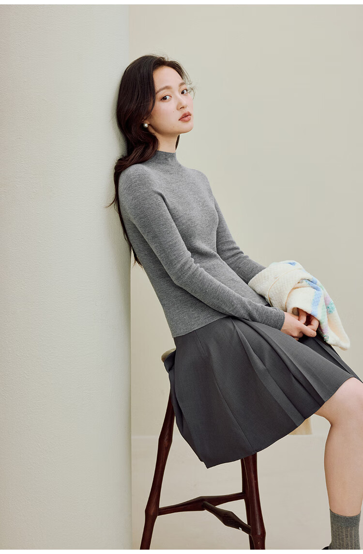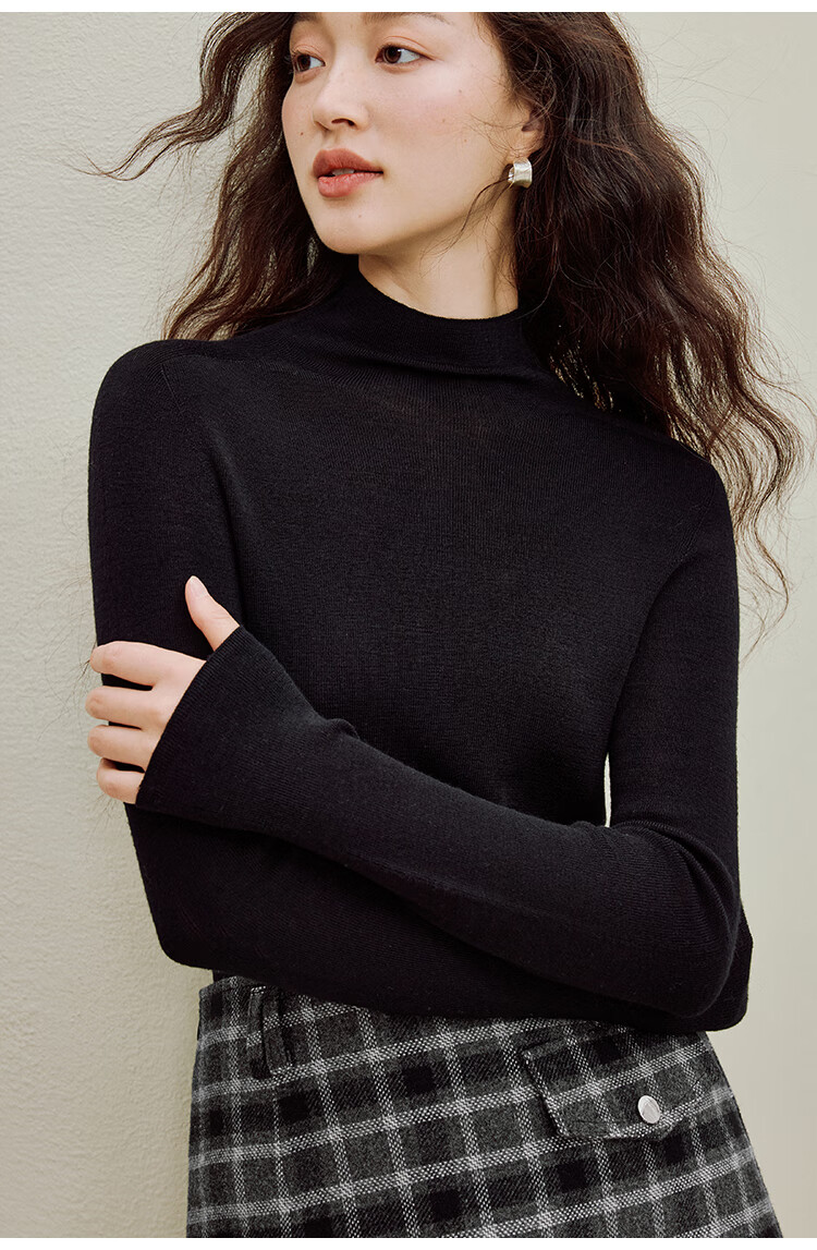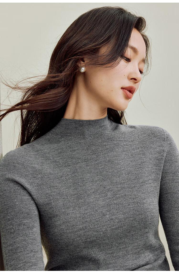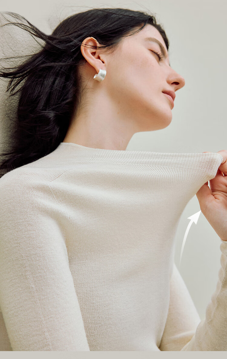 茵曼(INMAN)2026春新款一体半高领可机洗羊毛衫针织毛衣打底衫 米杏色 S