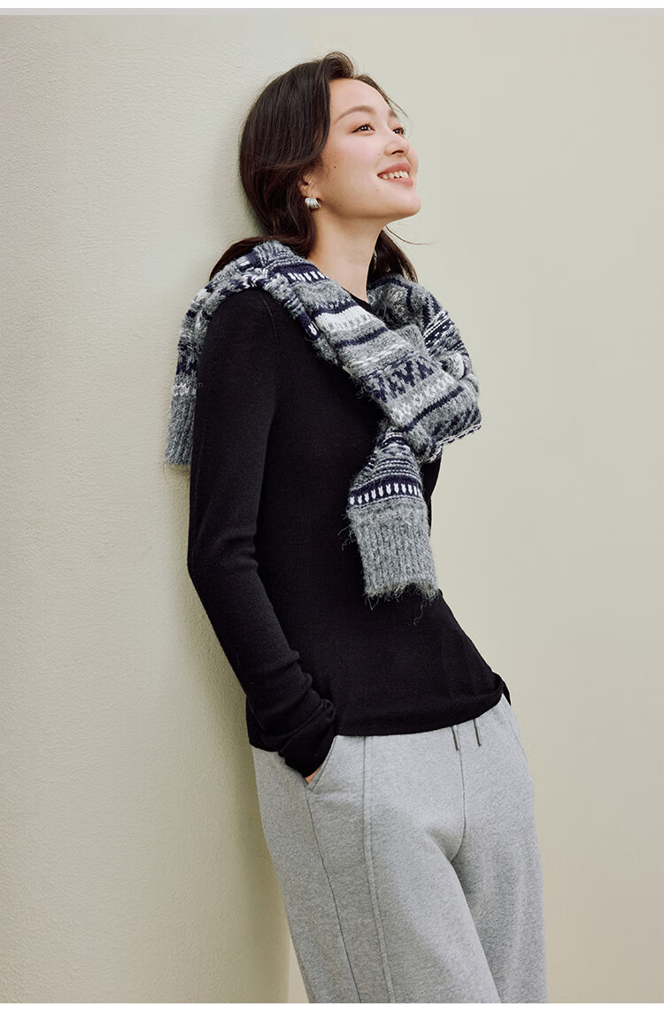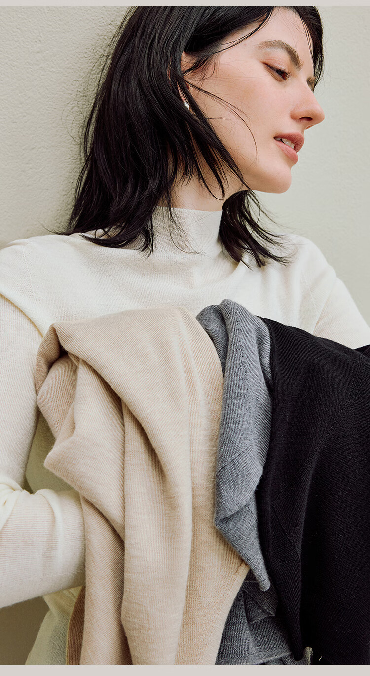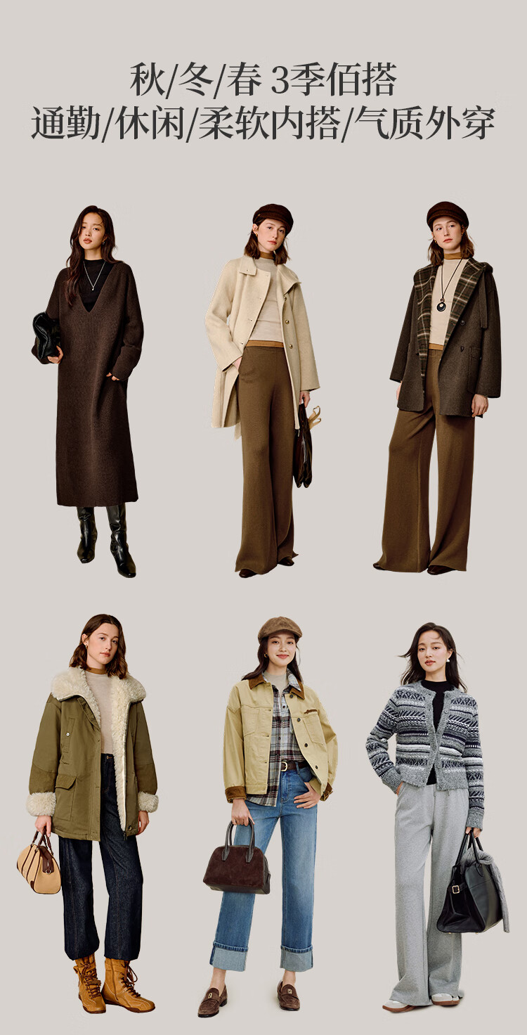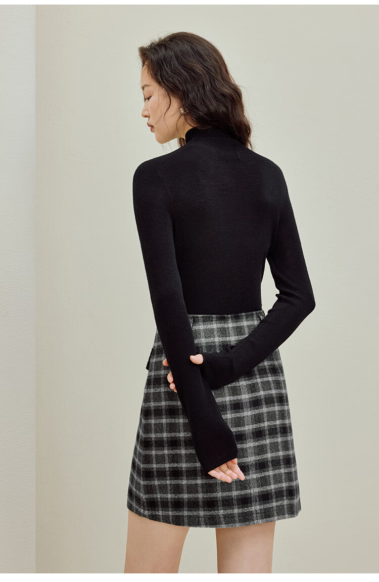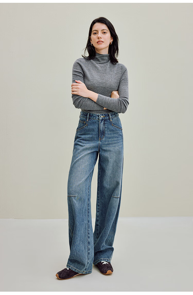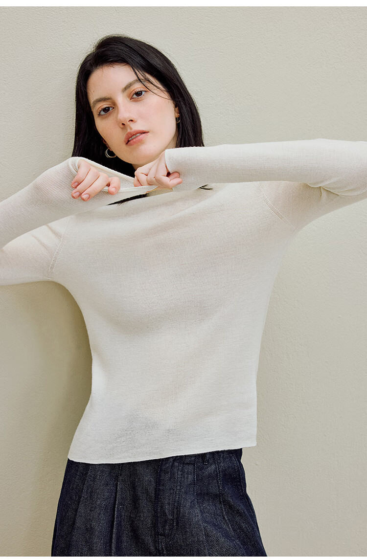 茵曼(INMAN)2026春新款一体半高领可机洗羊毛衫针织毛衣打底衫 米杏色 S