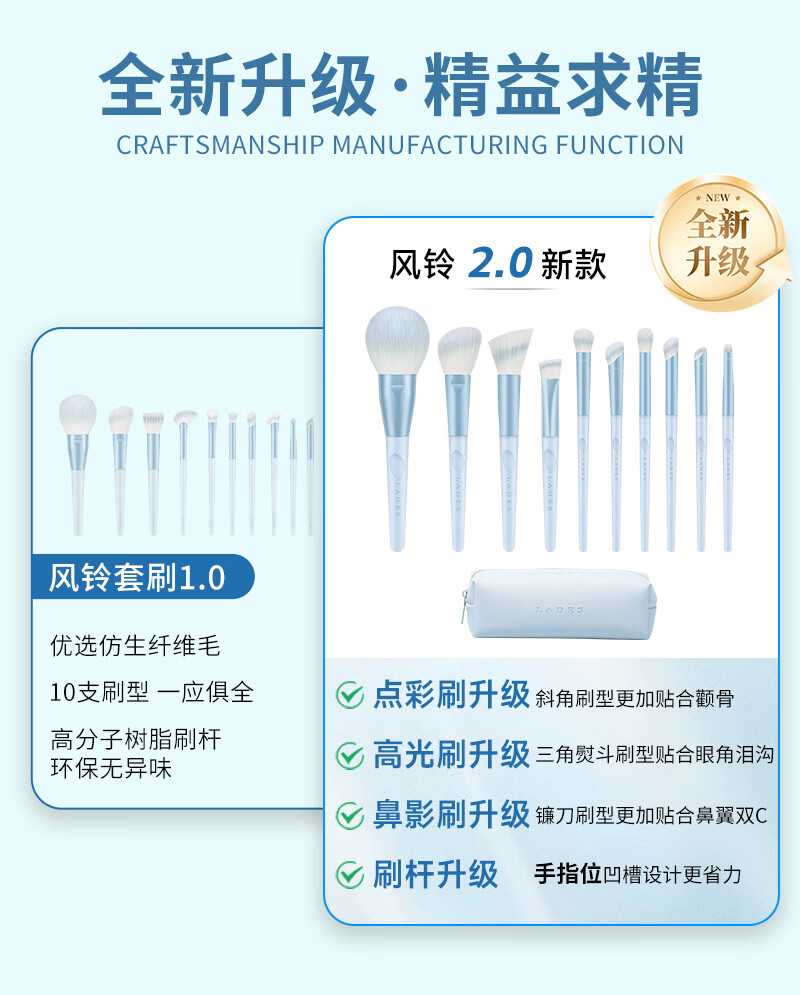 蓝蒂丝(LADES)10支风铃化妆刷套装散粉定妆刷修容刷眼影刷遮瑕刷新手美妆工具