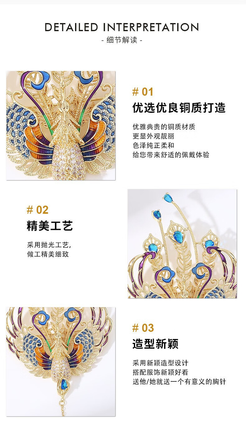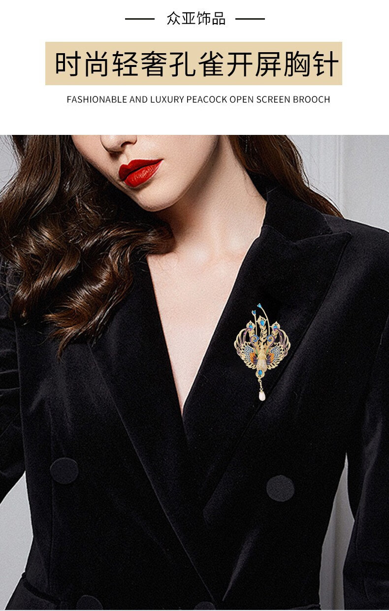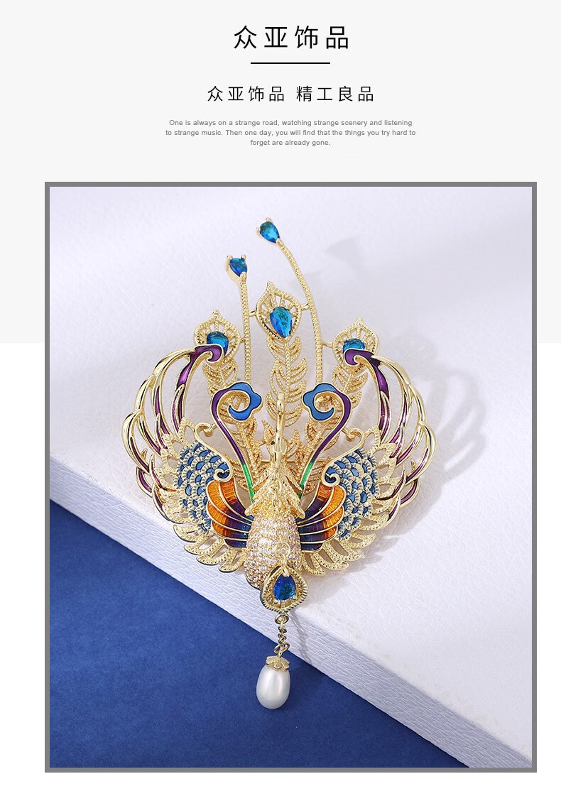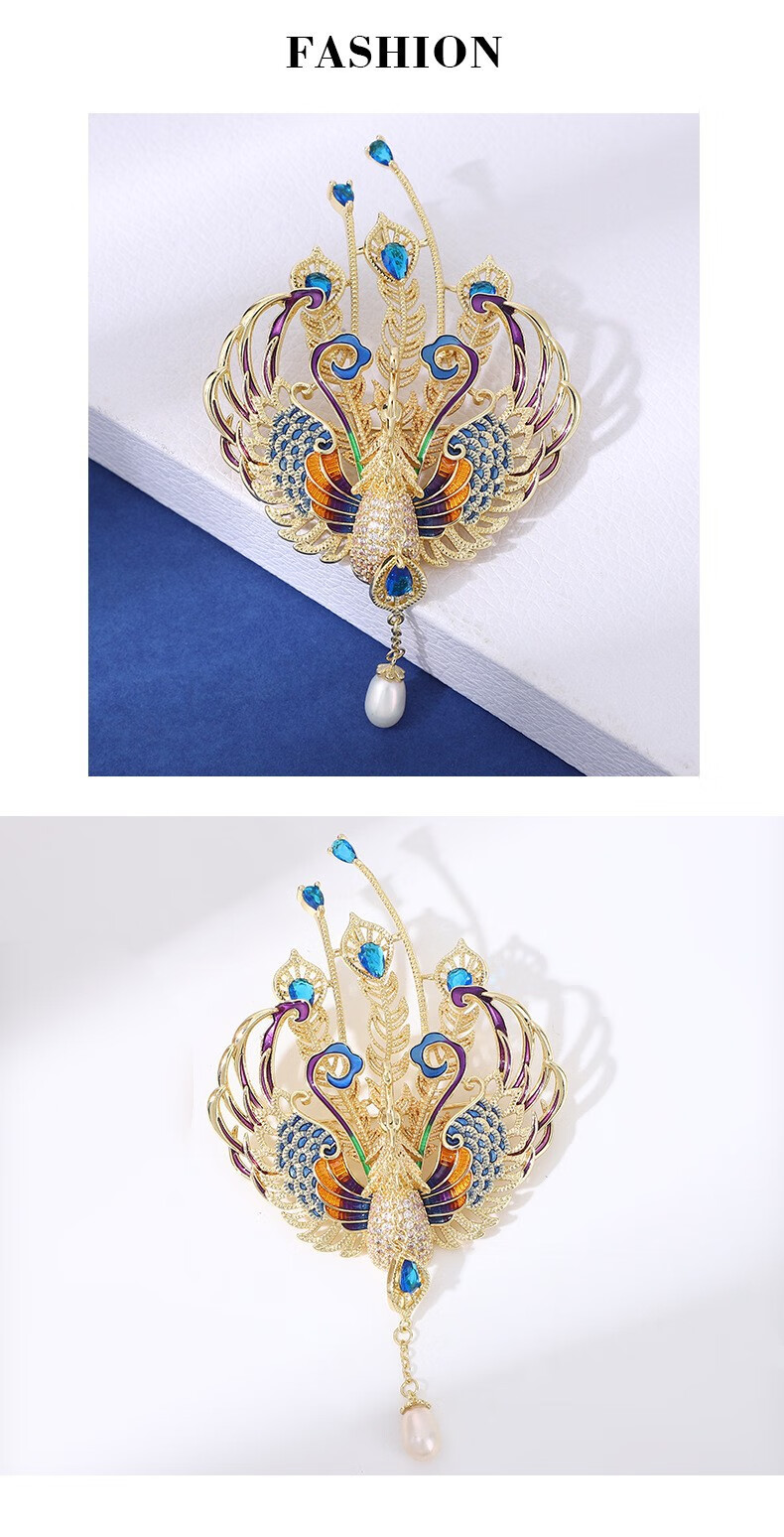 国风百鸟朝凤奢华珐琅凤凰胸针天然珍珠灵动流苏高档西装配饰xr 金色百鸟朝凤 1