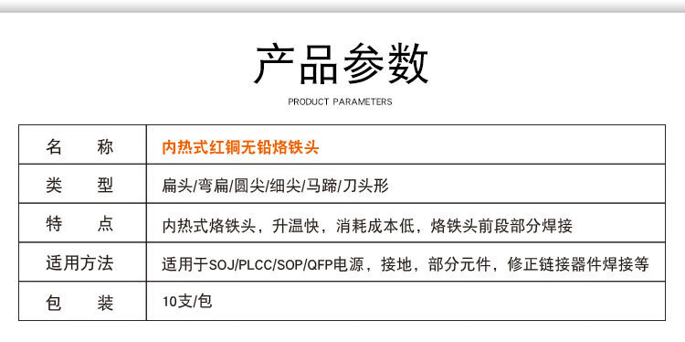 邦远恒温烙铁头936焊台900M通用型环保内热电烙铁咀刀型马蹄头10支装 圆尖型900M-T-B(10支装)