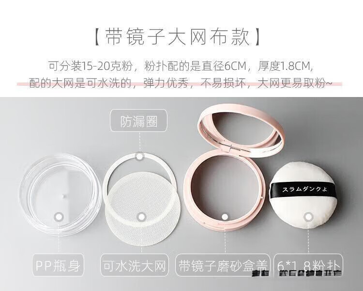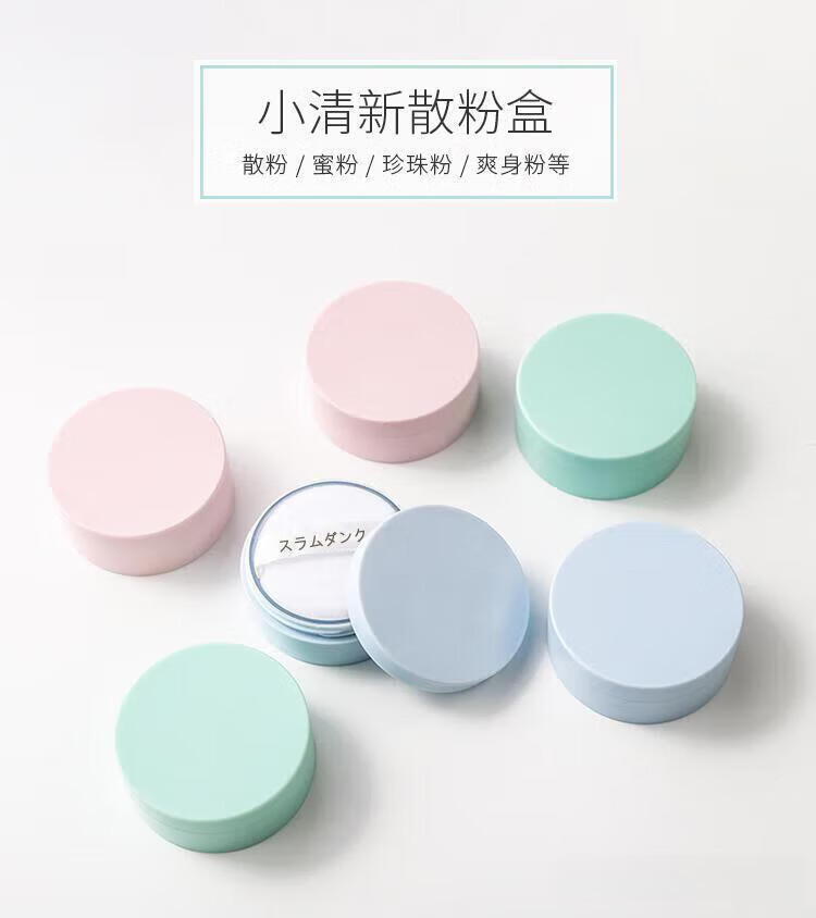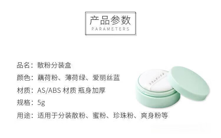 散粉盒空盒带粉扑便携散粉盒弹力网漏干粉爽身粉分装盒 薄荷绿 1件