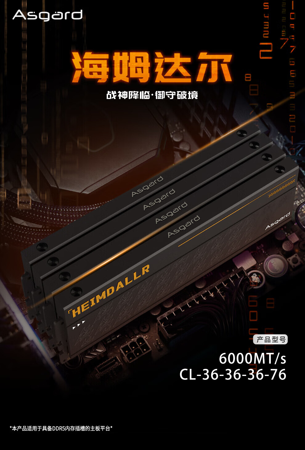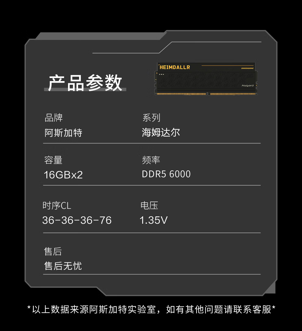阿斯加特(Asgard)32GB(16GBx2) DDR5 6000 台式机内存条 海姆达尔 马甲条 海力士A-die CL36 黑厚甲