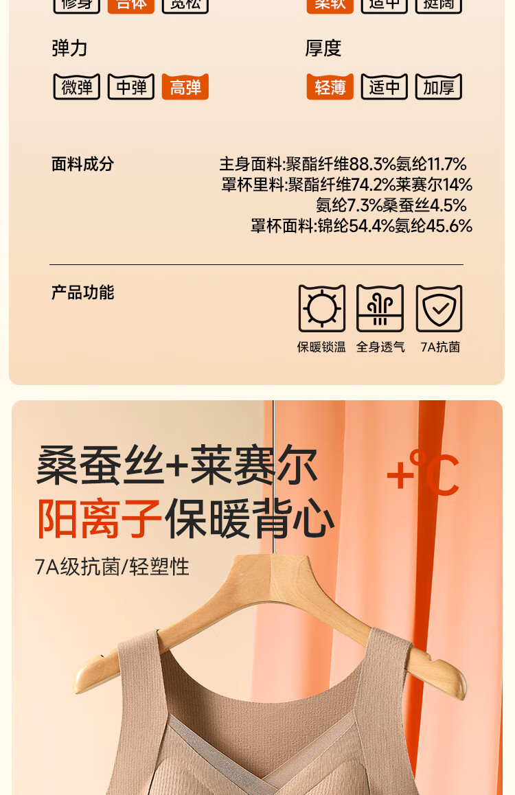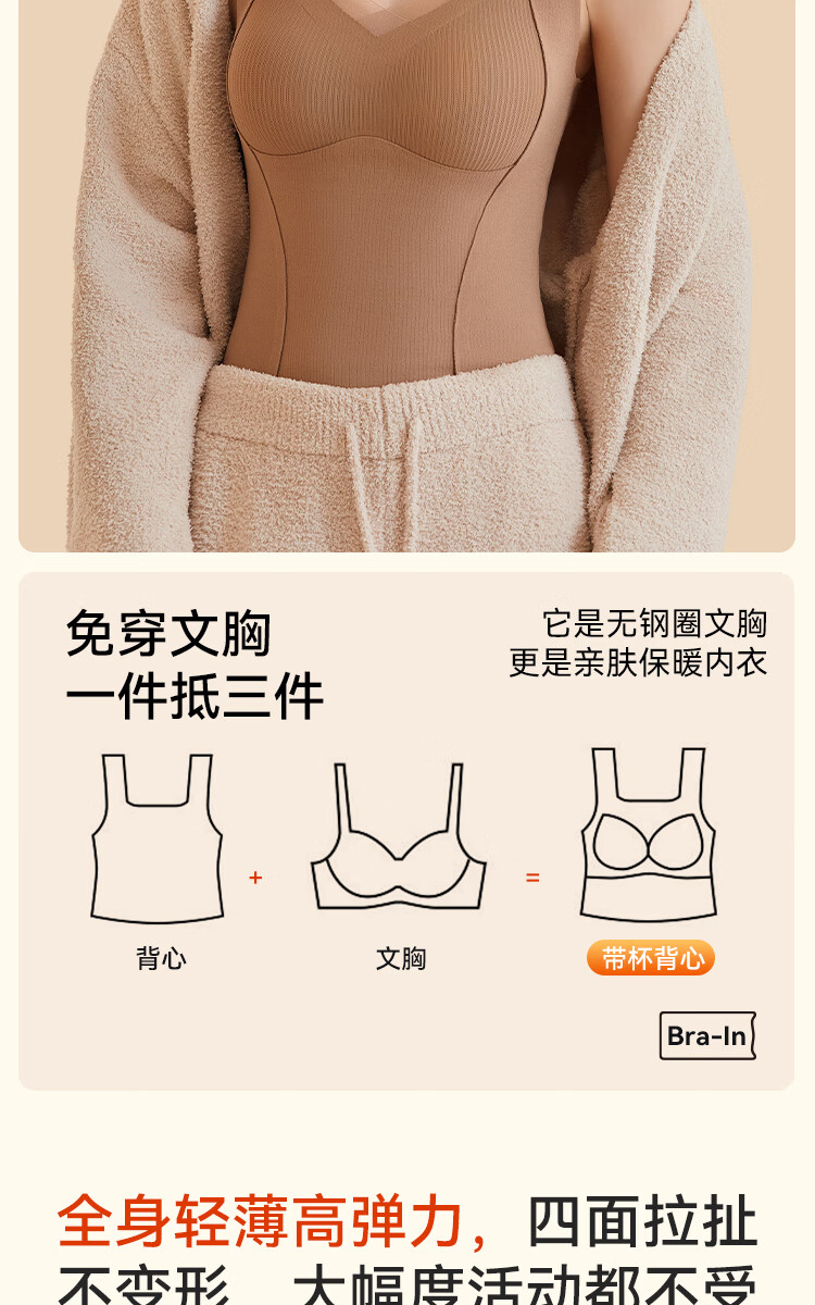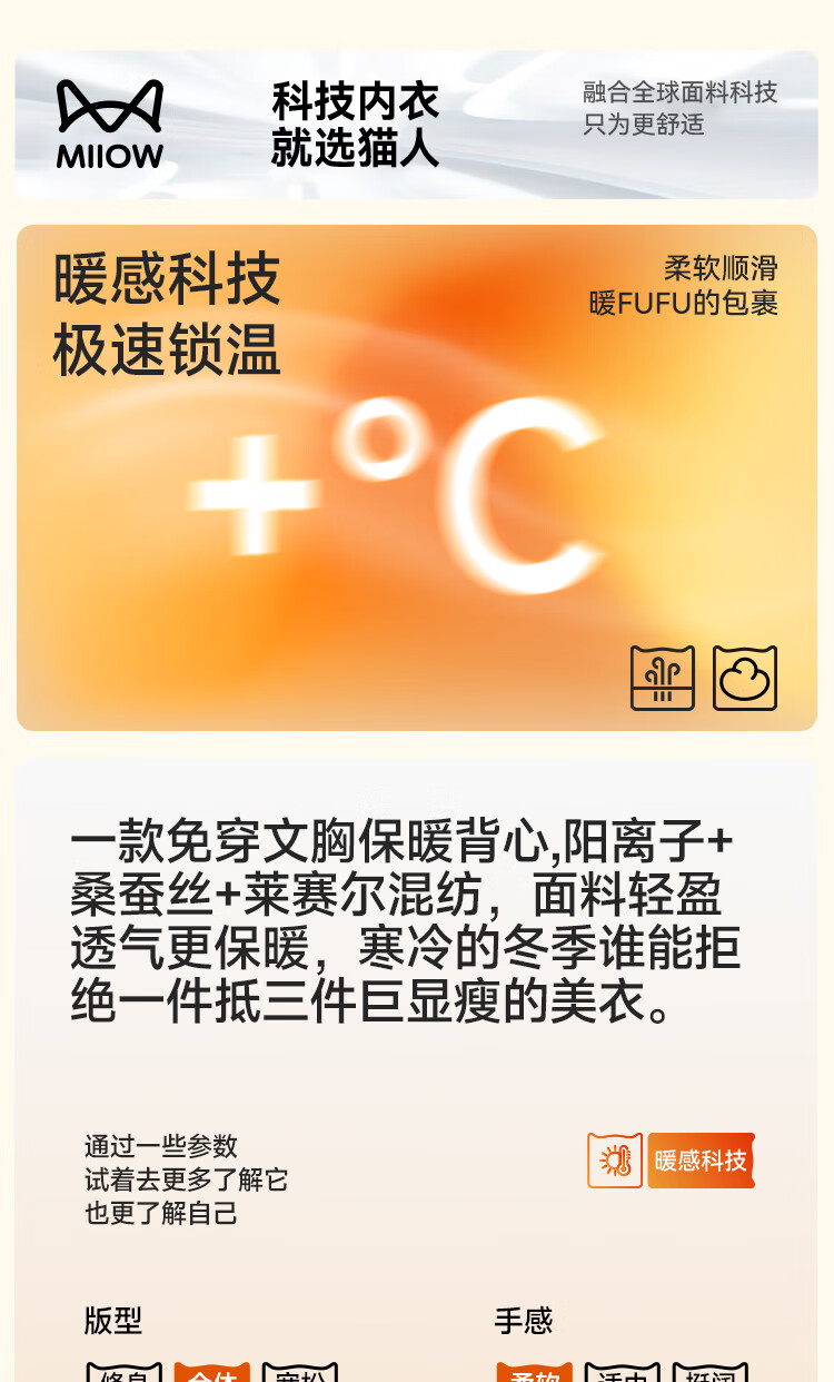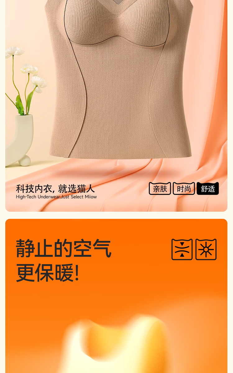 猫人(MiiOW)25年新款粉底液内衣女士保暖内衣女生保暖衣肌底衣带胸垫保暖背心