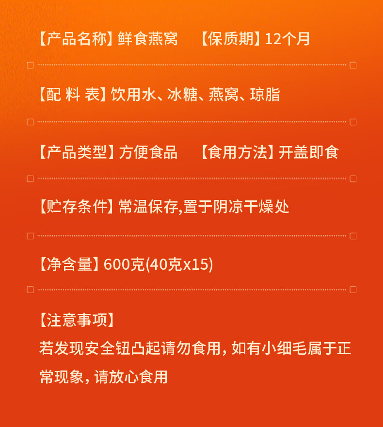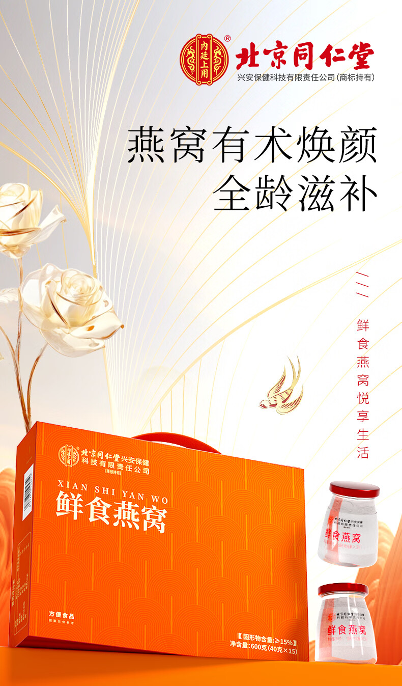 内廷上用北京同仁堂即食燕窝15瓶年货节礼盒过年走亲戚送礼送长辈春节礼物
