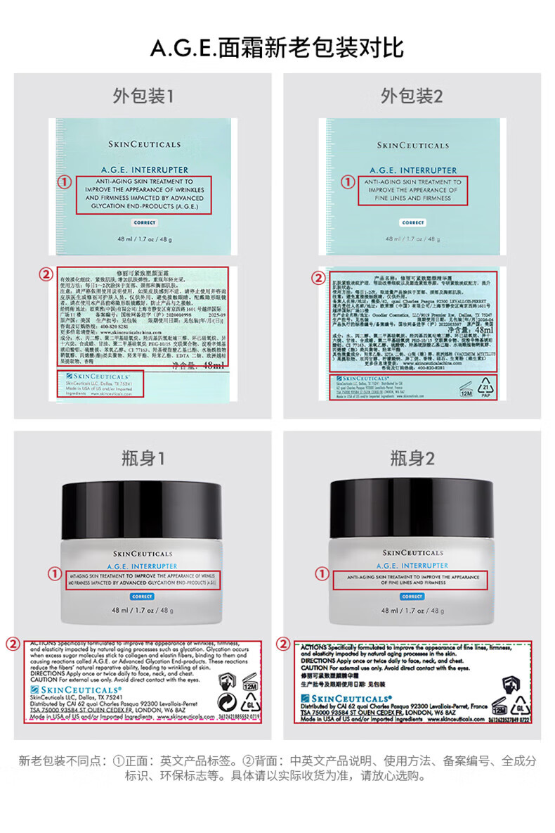 修丽可(SkinCeuticals)AGE面霜48ml 玻色因抗糖抗皱老紧致护肤品礼盒 七夕节礼物送人 242面霜3ml*5支