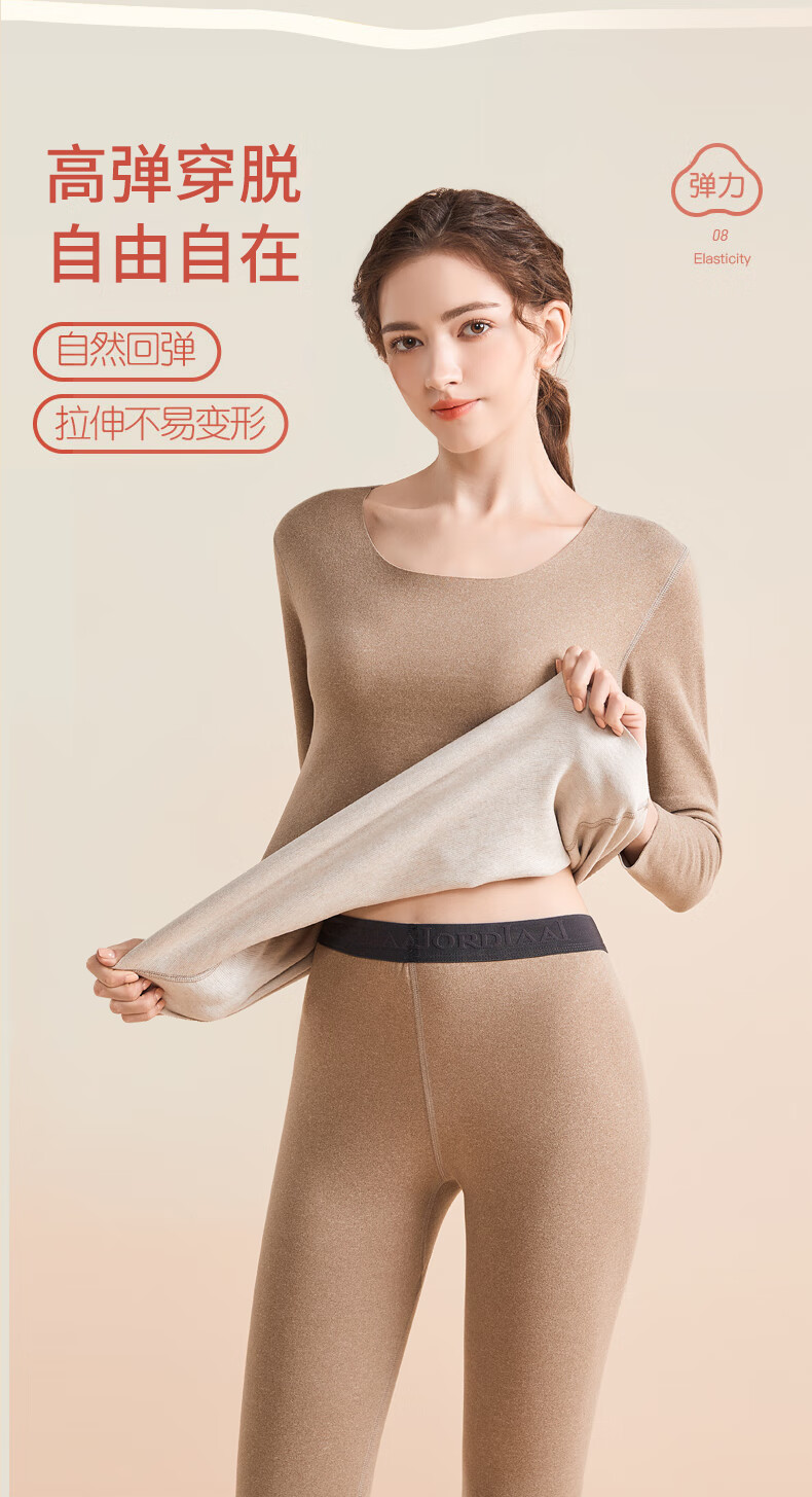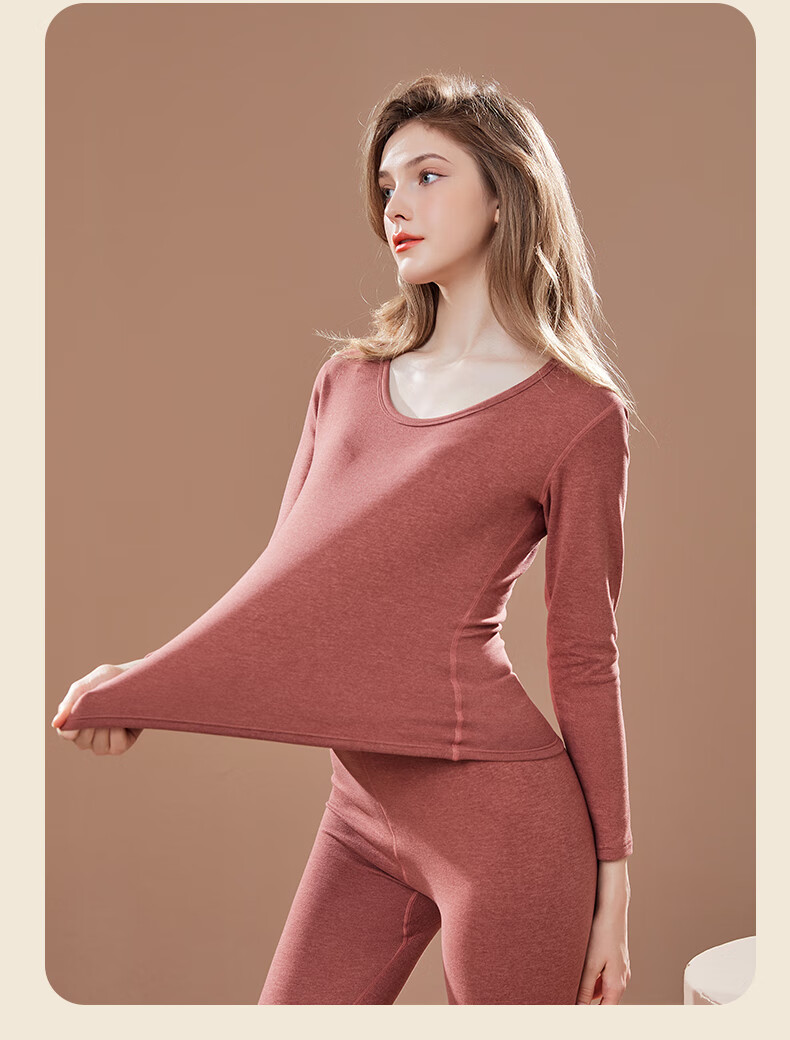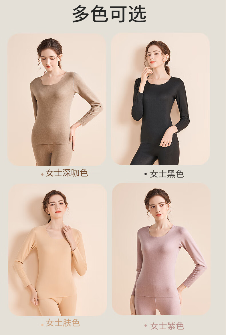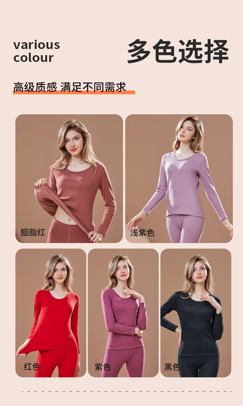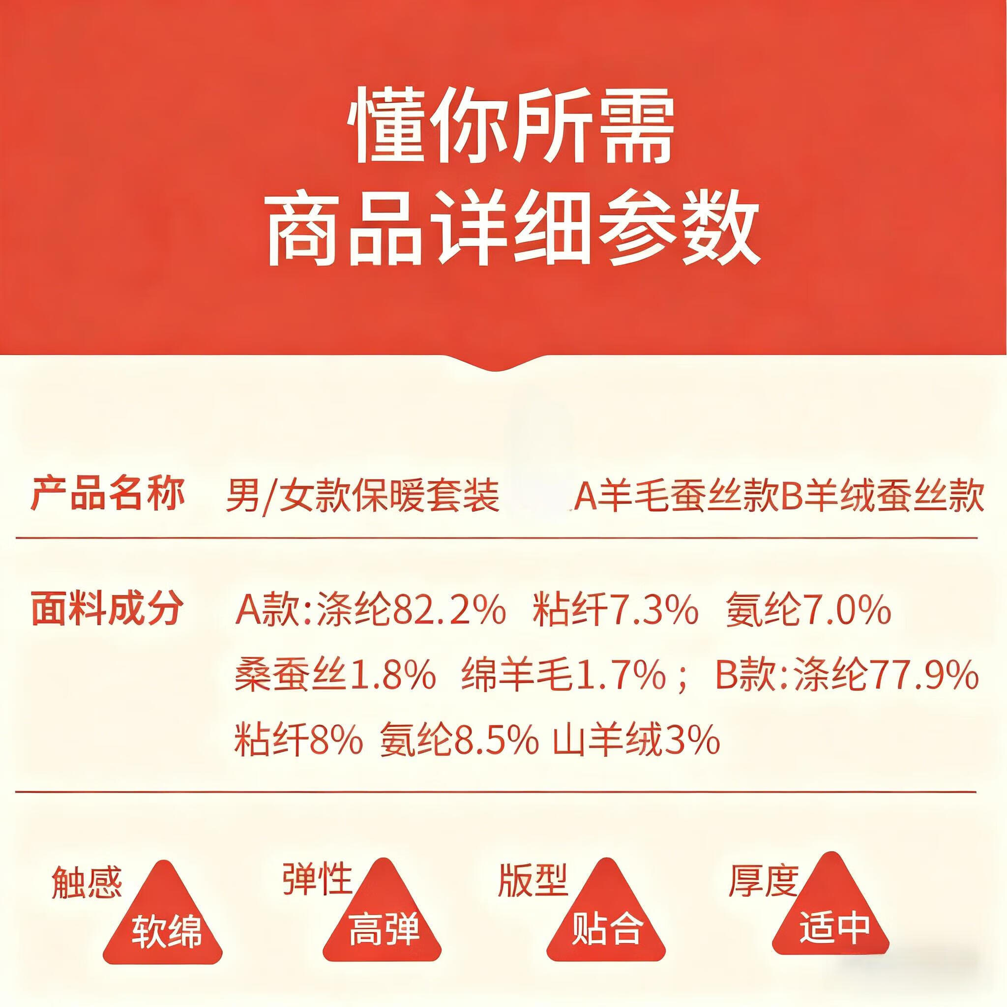 雅鹿羊绒羊毛蚕丝保暖内衣套装男女士加绒加厚秋衣秋裤本命年红色 羊绒蚕丝女(黑色) XL