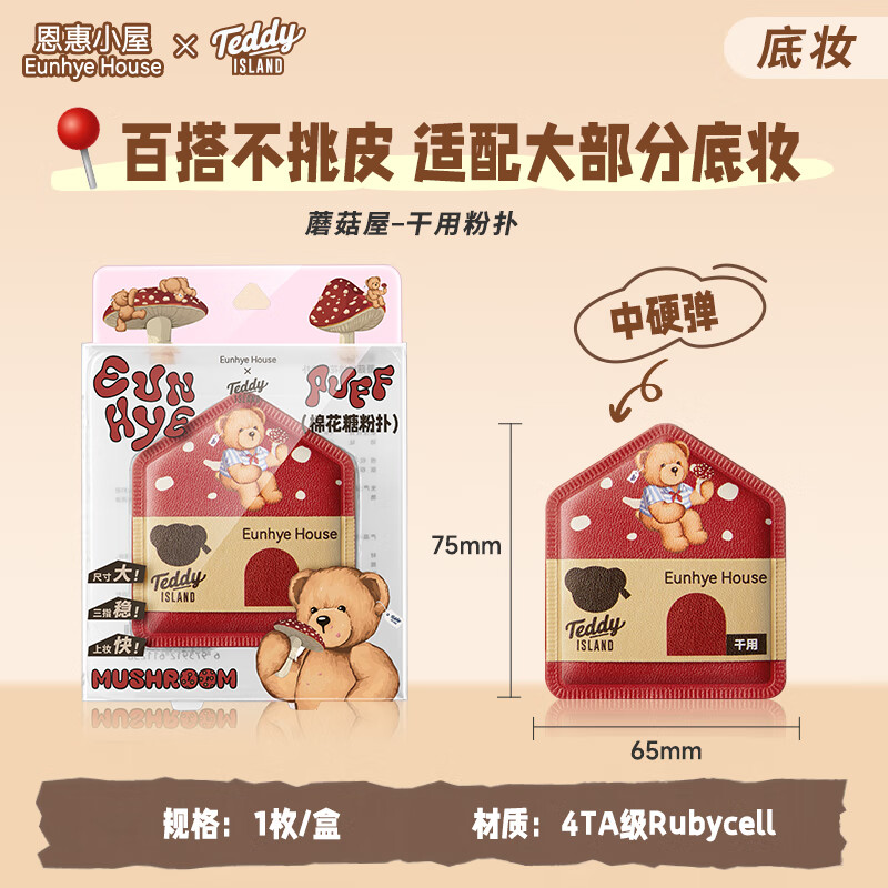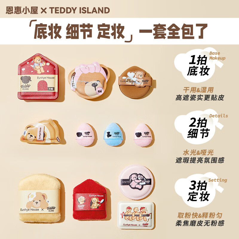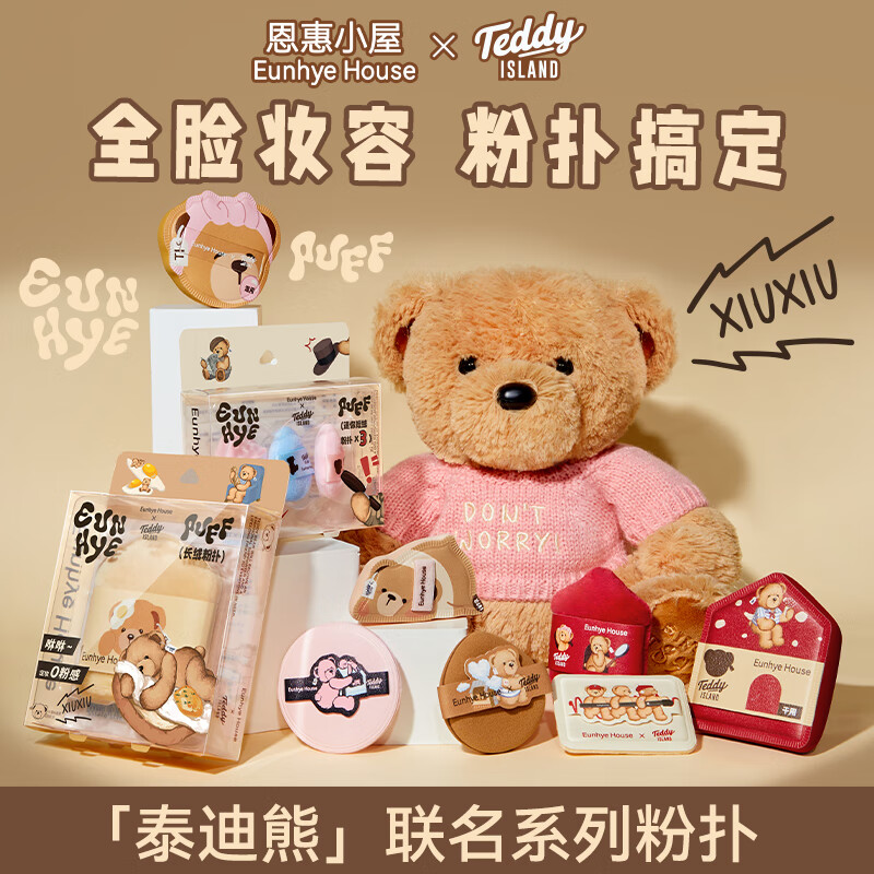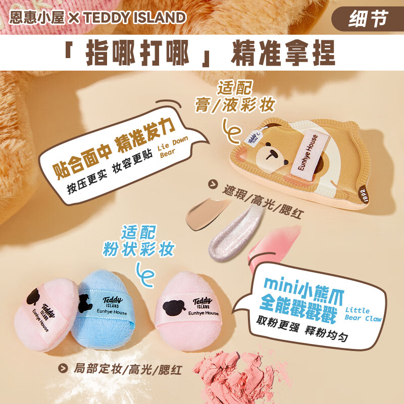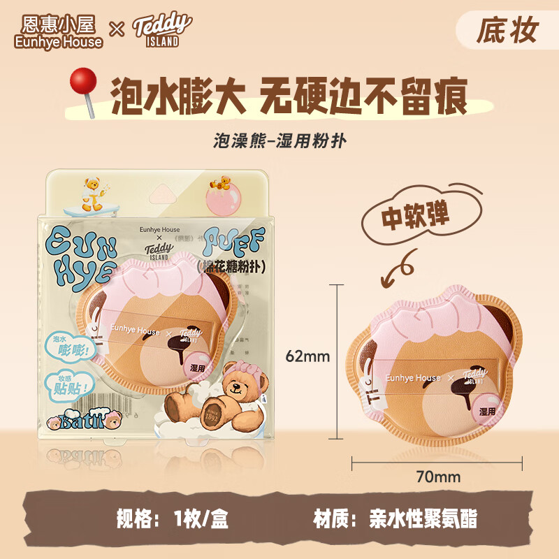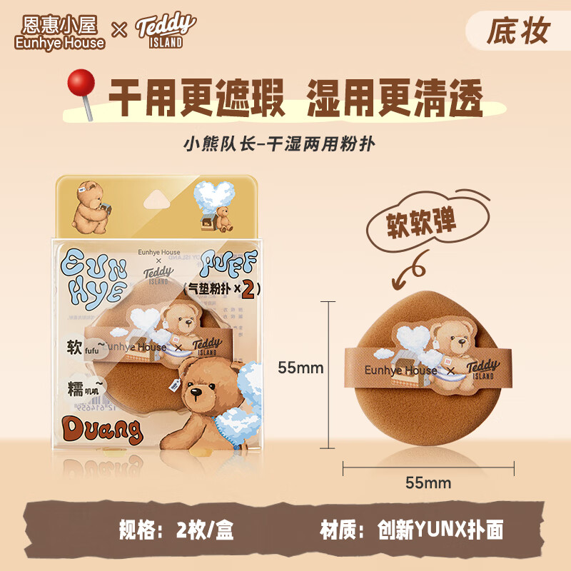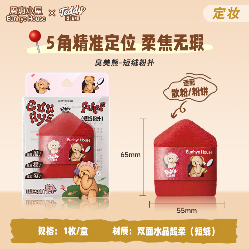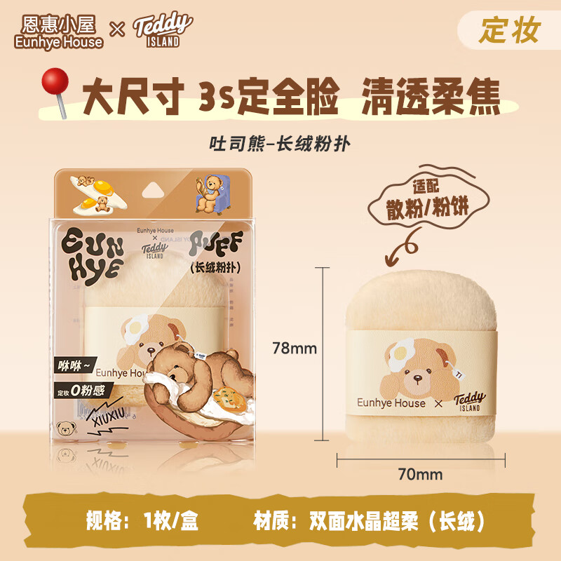 恩惠小屋(EunhyeHouse)气垫粉扑定妆服帖散粉饼化妆工具散粉彩妆干湿海绵熊熊队短绒粉扑