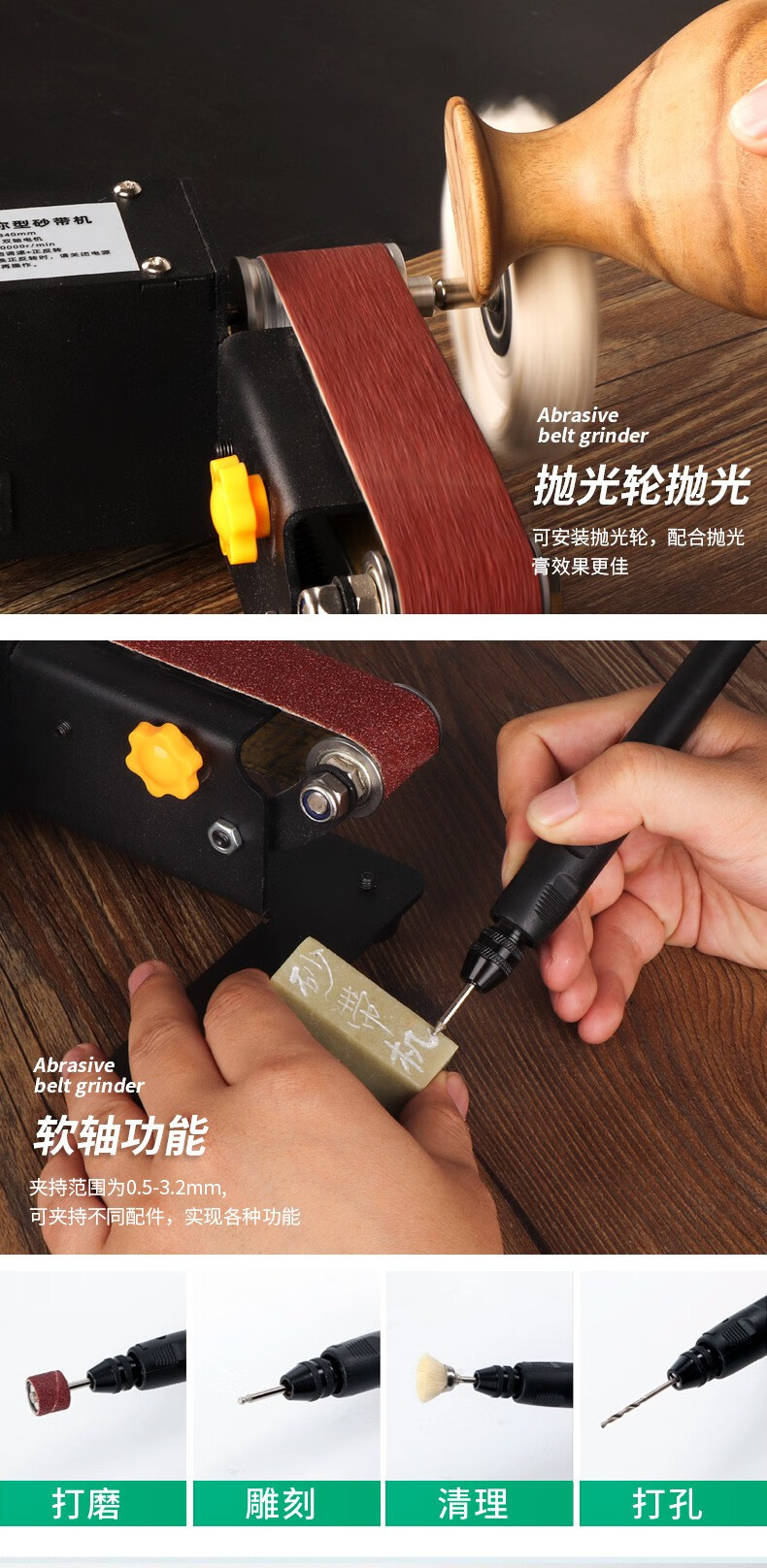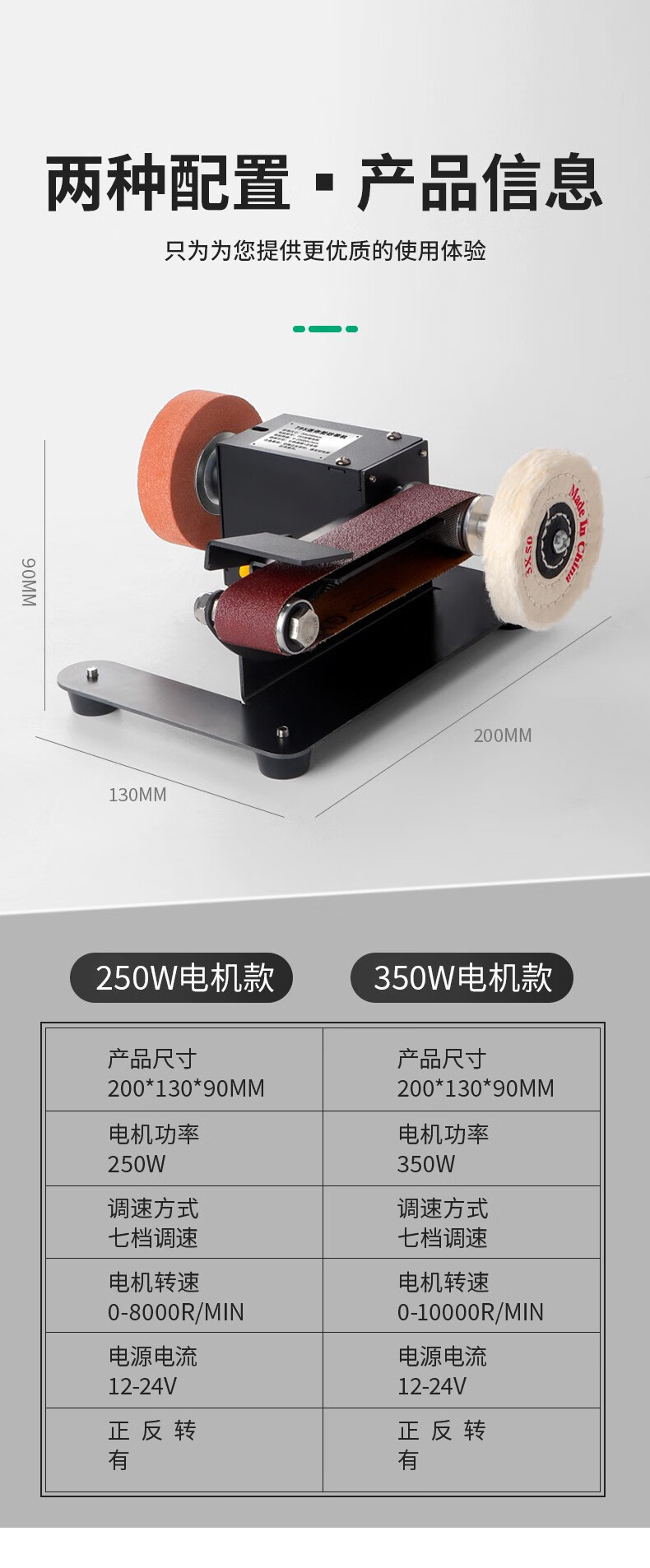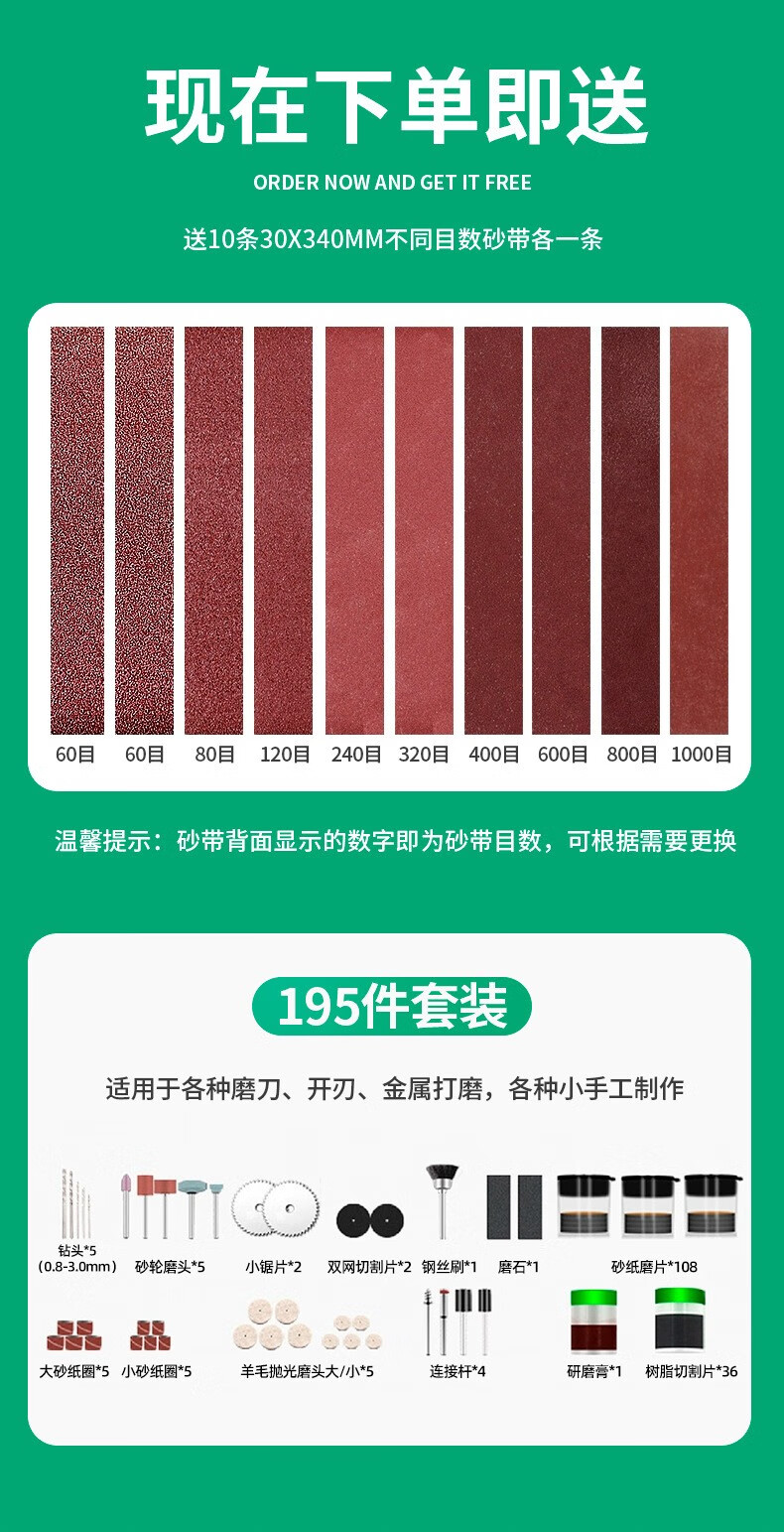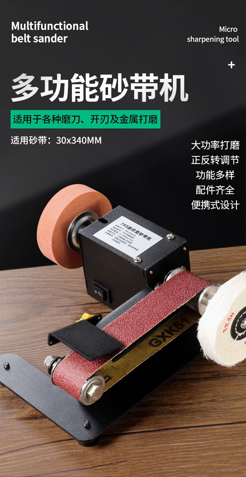 桂松电动砂轮机小型砂带机剪刀磨刀神器台式DIY抛光机家用砂纸打磨机 250W七档调速【套餐一】