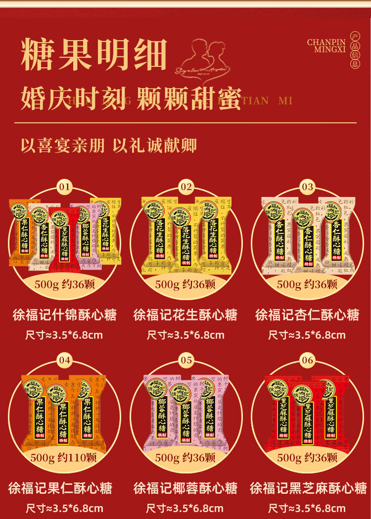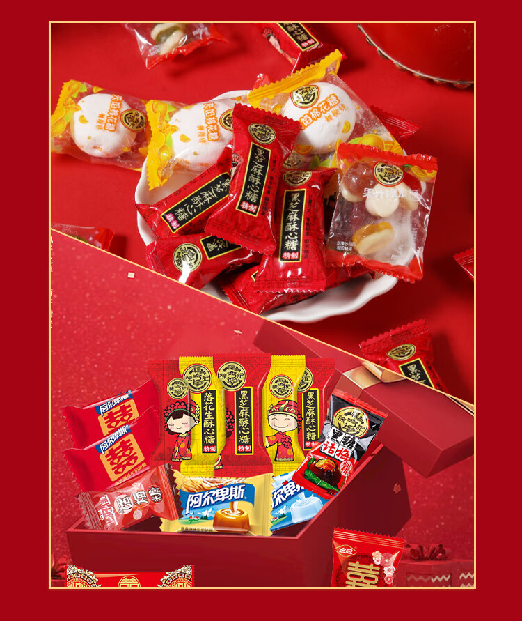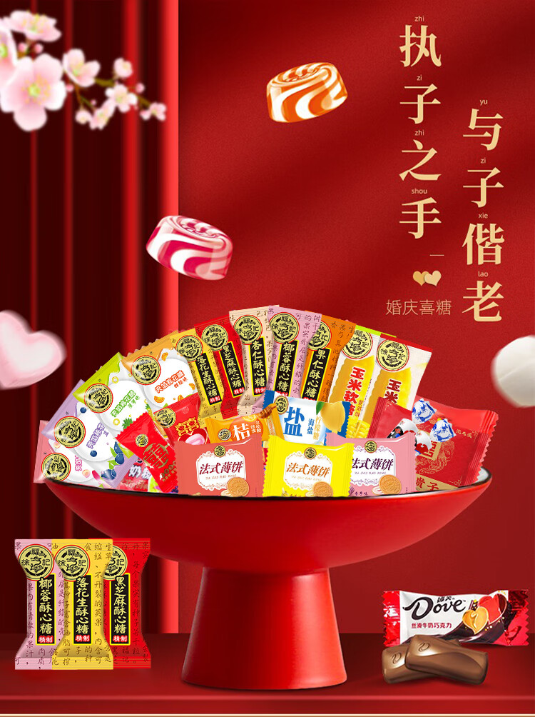 徐福记结婚喜糖批发散装结婚专用糖果喜糖喜饼混合装订婚礼宝宝满月糖果 【精选6味】优选实惠高性价比喜糖套餐B508g(约60颗)