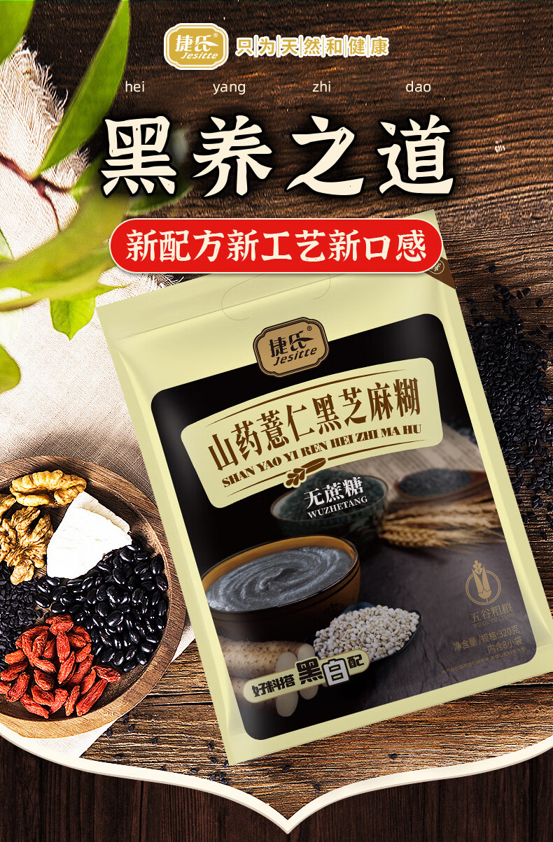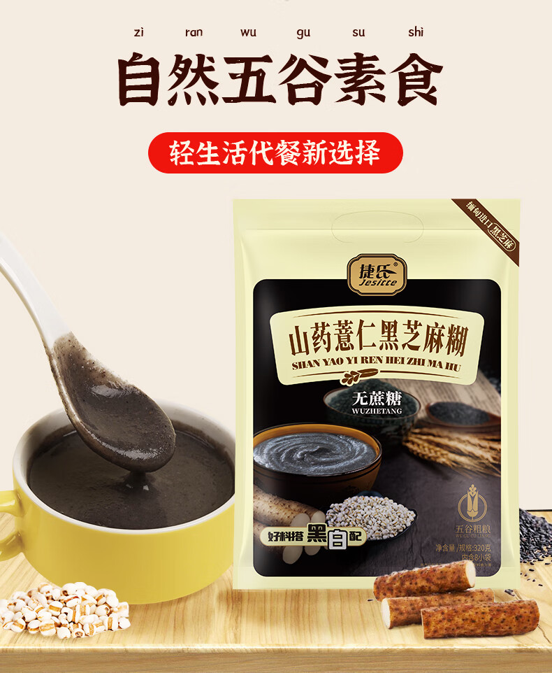 捷氏山药薏仁黑芝麻糊320g无蔗糖添加营养食品谷物粗粮代餐粉