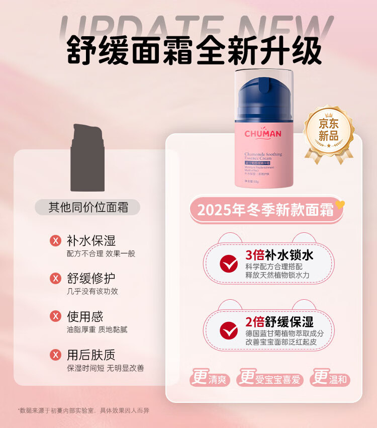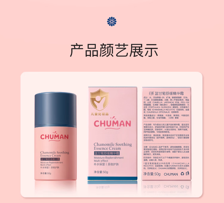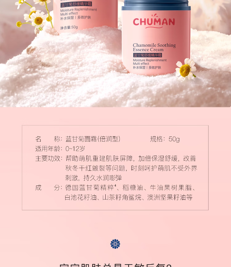 初蔓儿童面霜0-6-12岁滋润保湿补水护肤金盏花宝宝婴儿秋冬润肤乳霜液 【儿童小金盾】蓝甘菊儿童面霜50g*1