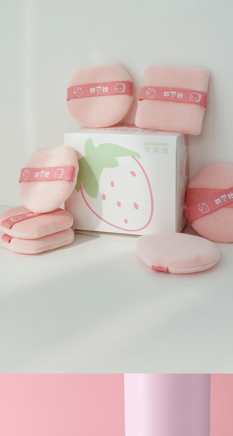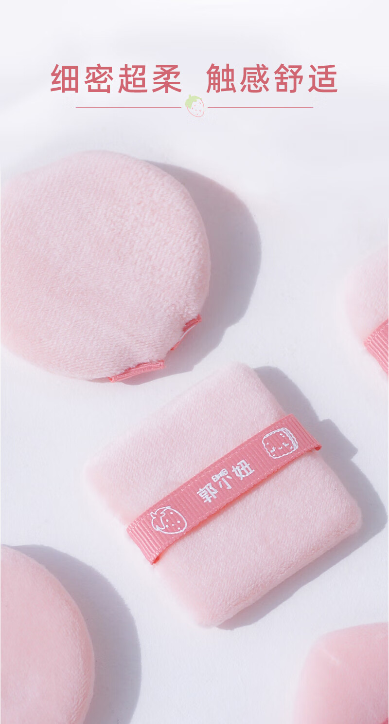 GUOXIAONIU郭小妞草莓饼干绒粉扑小号圆形定妆粉扑散粉扑蜜粉扑柔软上妆工具 草莓饼干粉扑 4枚