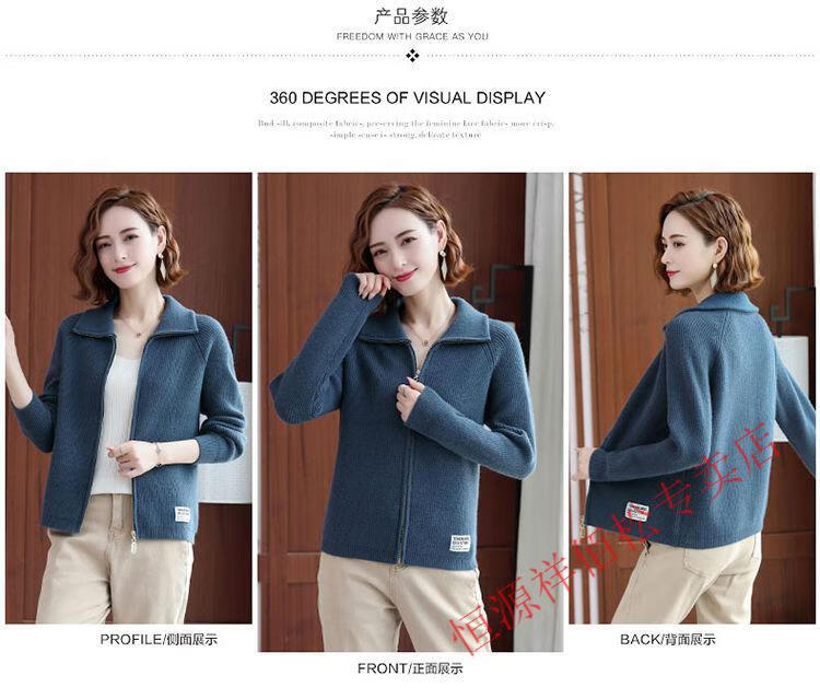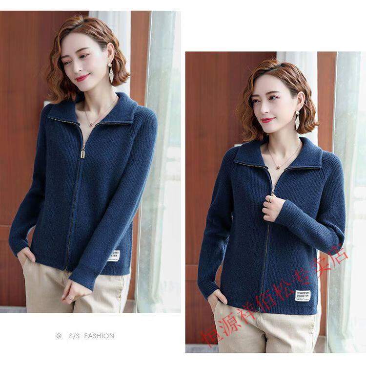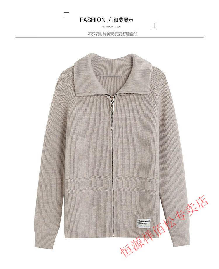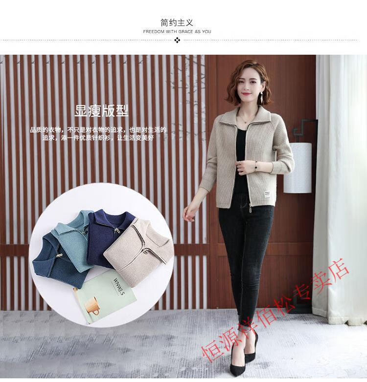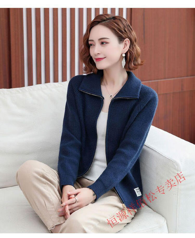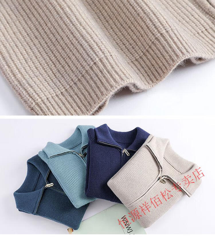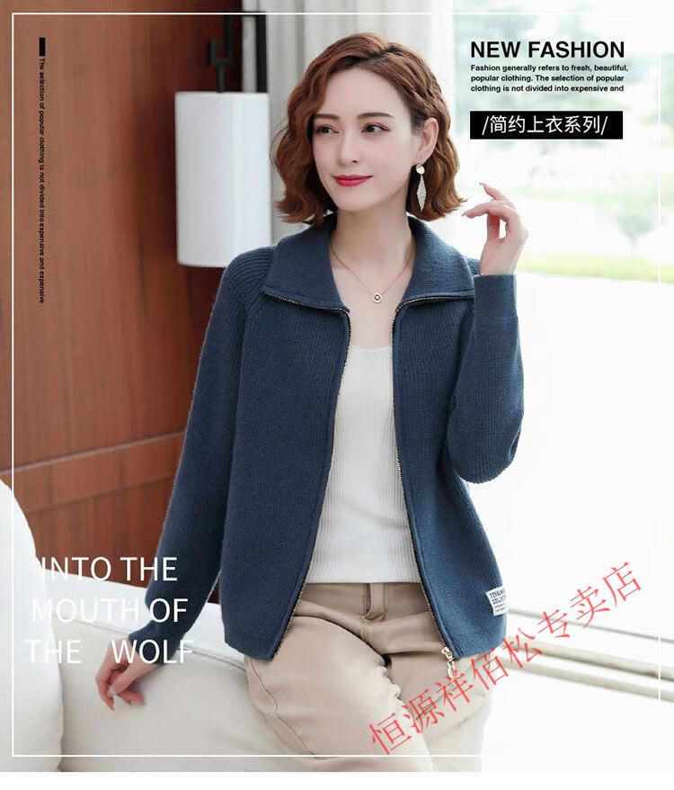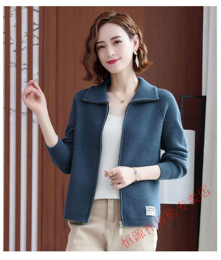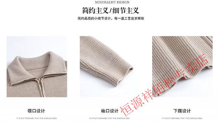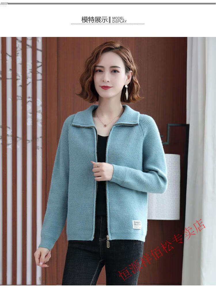 恒源祥品牌羊毛衫女加厚针织开衫秋冬新款拉链翻领纯色羊绒毛衣外套 豆绿色-不起球 2XL 适合130-140斤