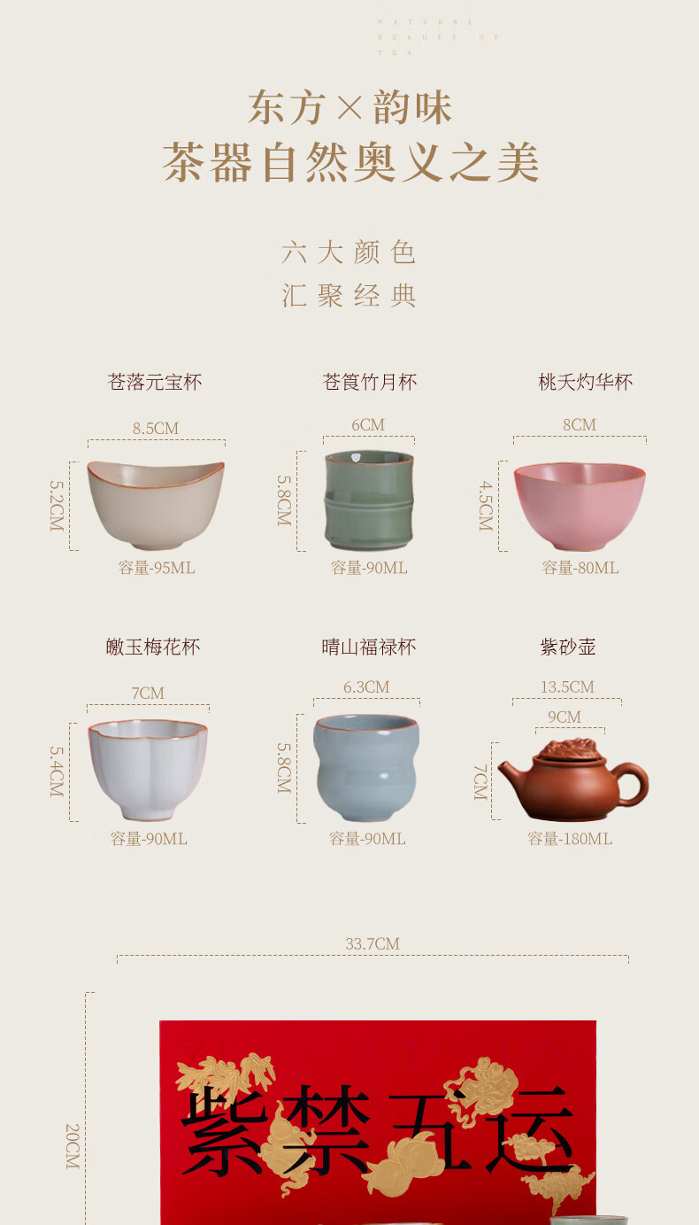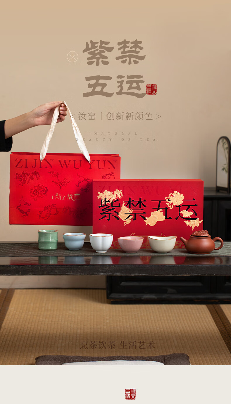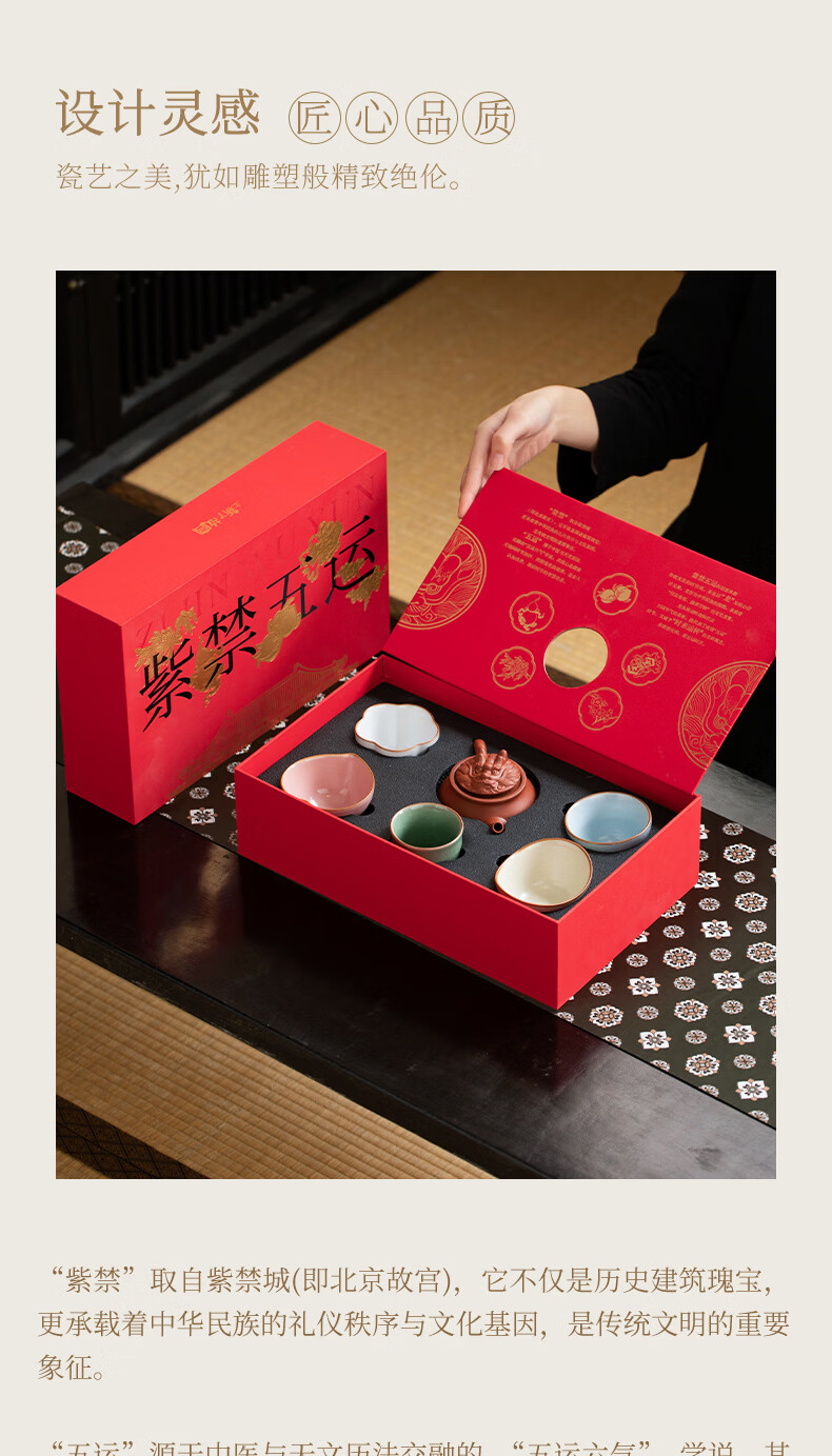 上新了文创 故宫紫禁五运茶具套组 茶杯礼盒装主人杯文创生日礼物送领导长辈 紫砂壶套装