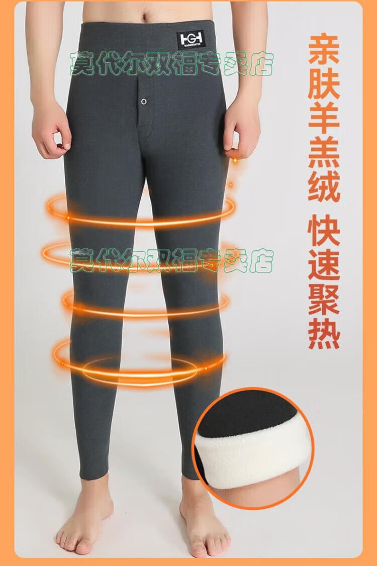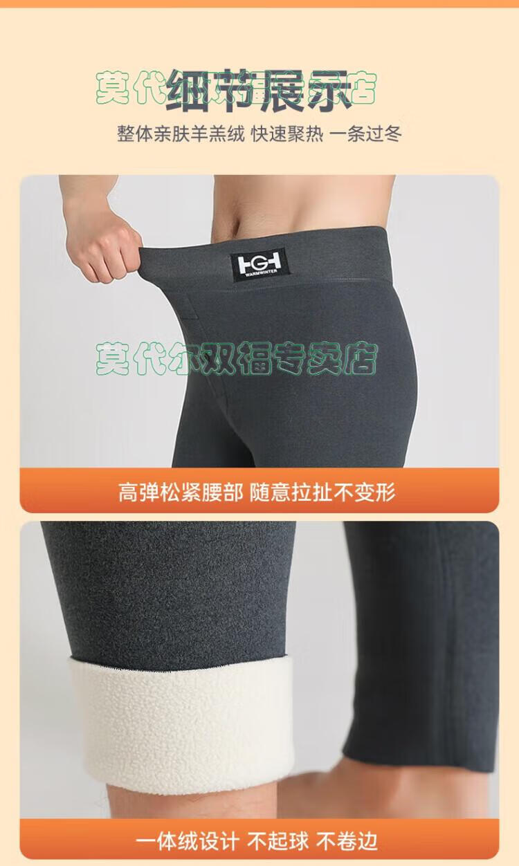 莫代尔羊羔绒保暖裤男士冬季加绒加厚打底裤棉毛裤秋裤防寒过冬弹力衬裤 灰色羊羔绒(男款加绒加厚) 2XL 【适合体重150-170斤】