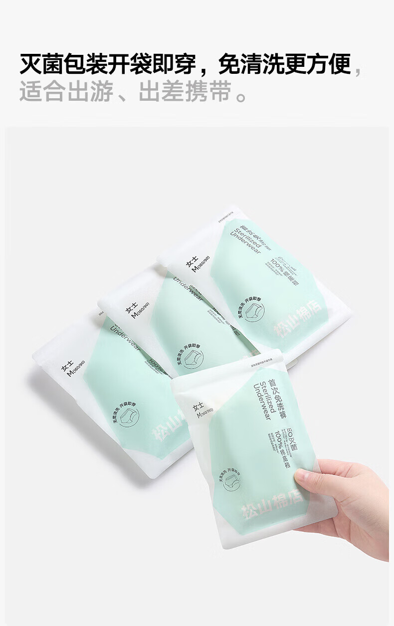 松山棉店【免洗即穿】新疆棉内裤女7A抑菌无痕透气三角裤医护级亲肤独立装 浅绿+肤色+浅灰 3条 L 推荐:110-125斤