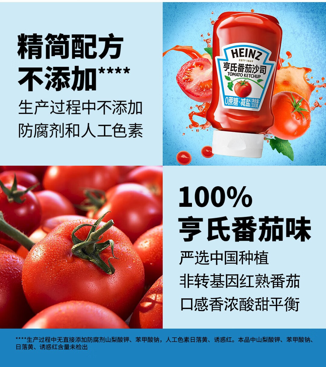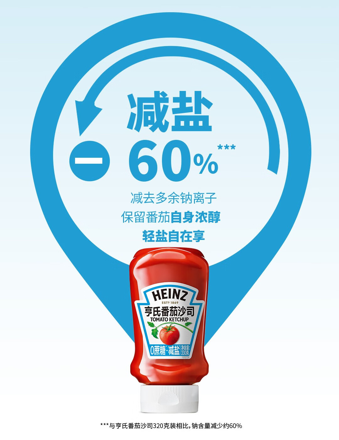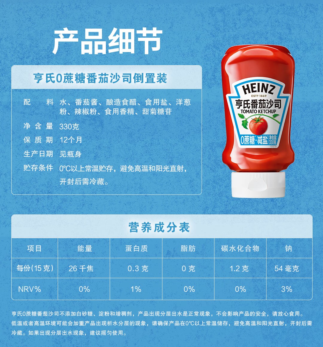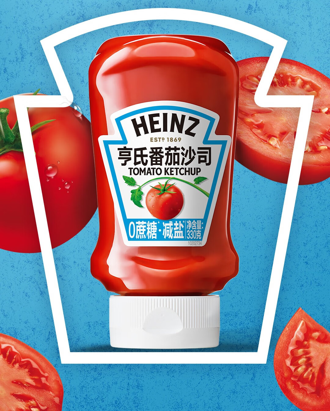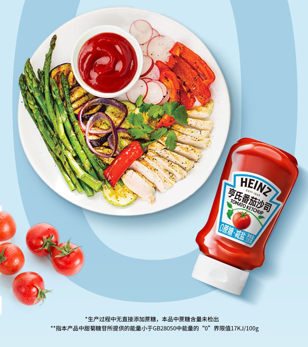 亨氏番茄酱 0蔗糖0脂肪番茄沙司330g挤挤倒置瓶装意大利面薯条蘸酱