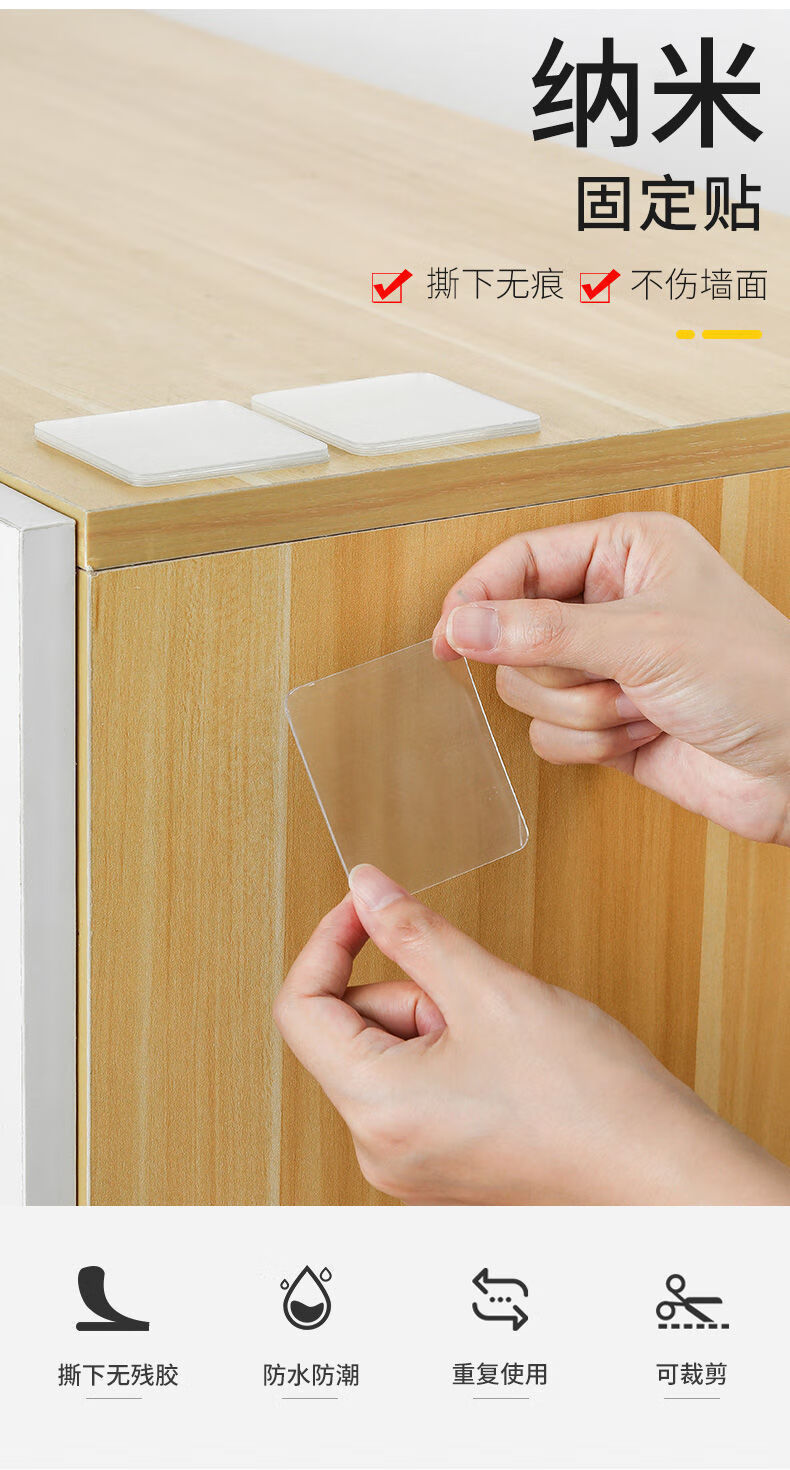 科斯丁 纳米双面胶高粘度粘贴片固定贴无痕胶贴强力胶双面贴排插固定器 圆角方形6cm*6cm【10片装】