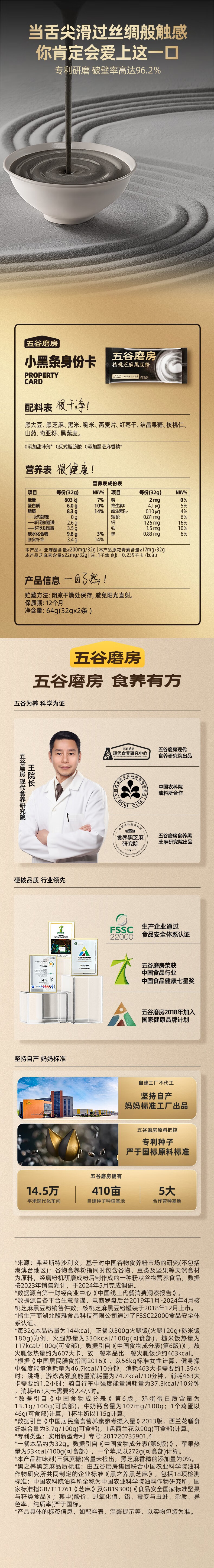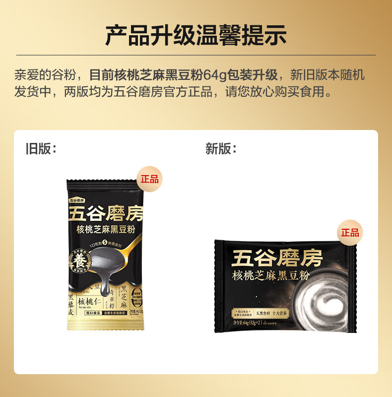 五谷磨房低GI黑芝麻糊核桃芝麻黑豆粉早餐代餐粉64g